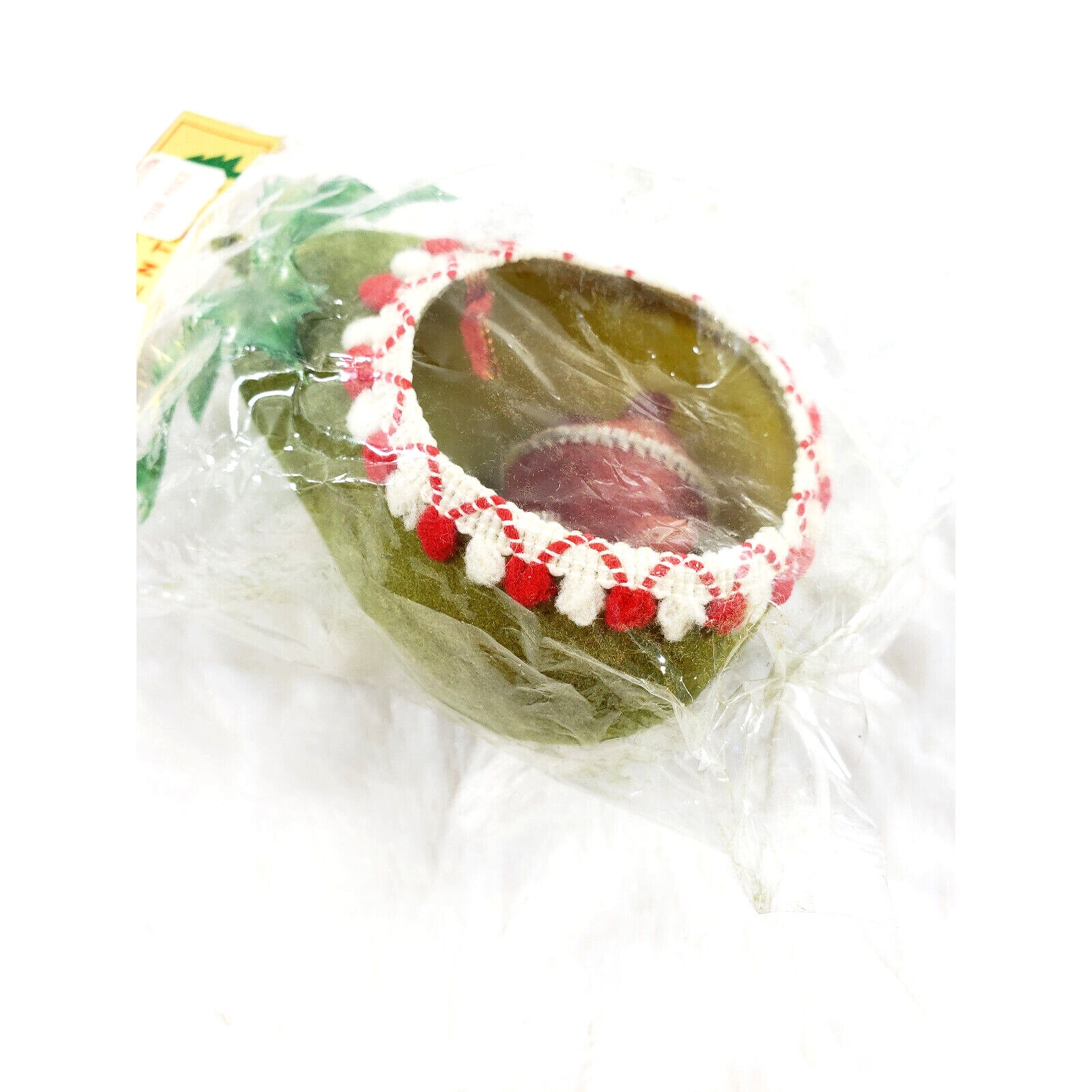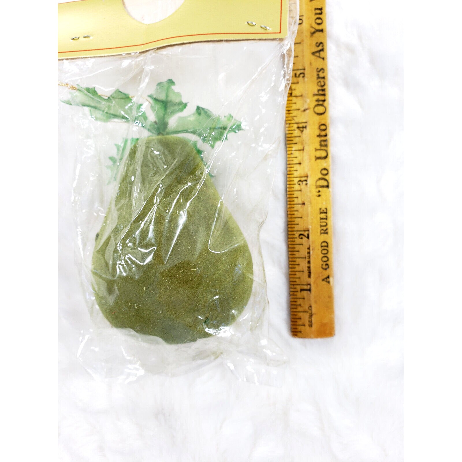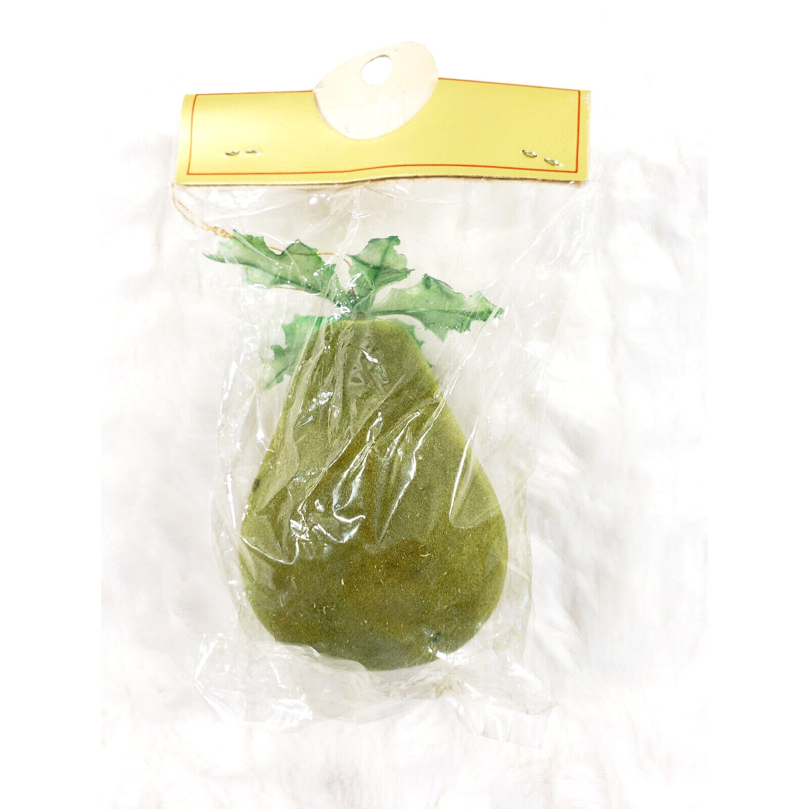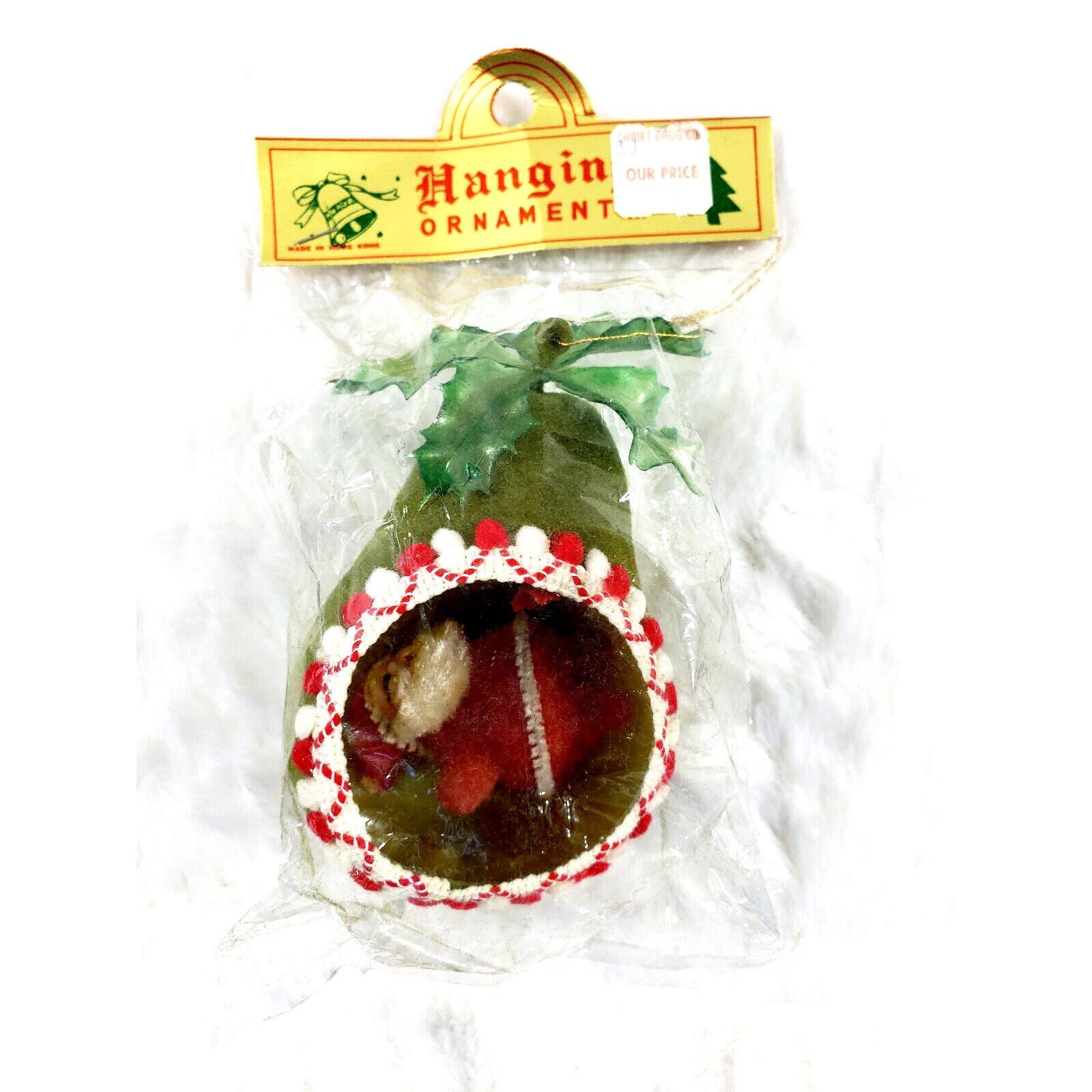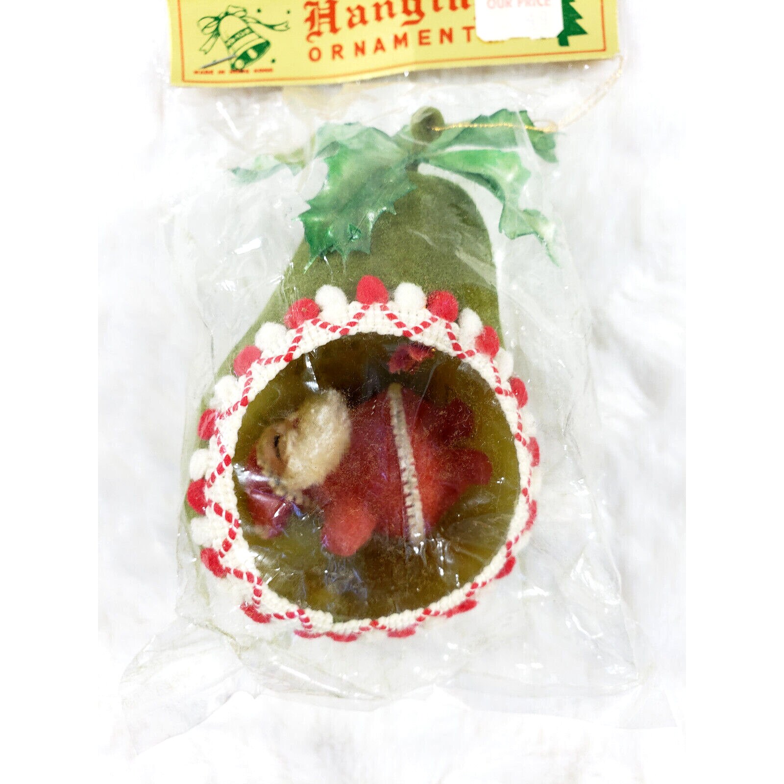 Vintage NOS Flocked Santa Pear Fruit Plastic Diorama 3D Christmas Ornament NIP