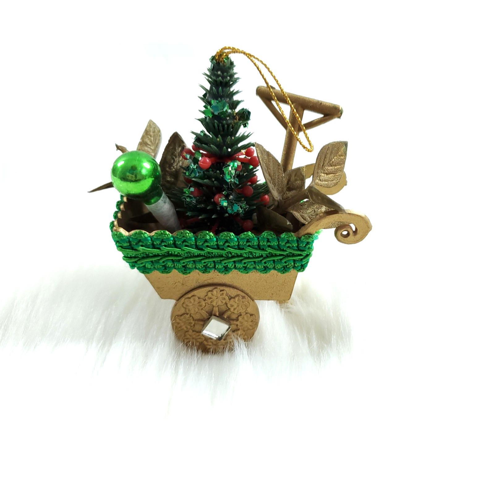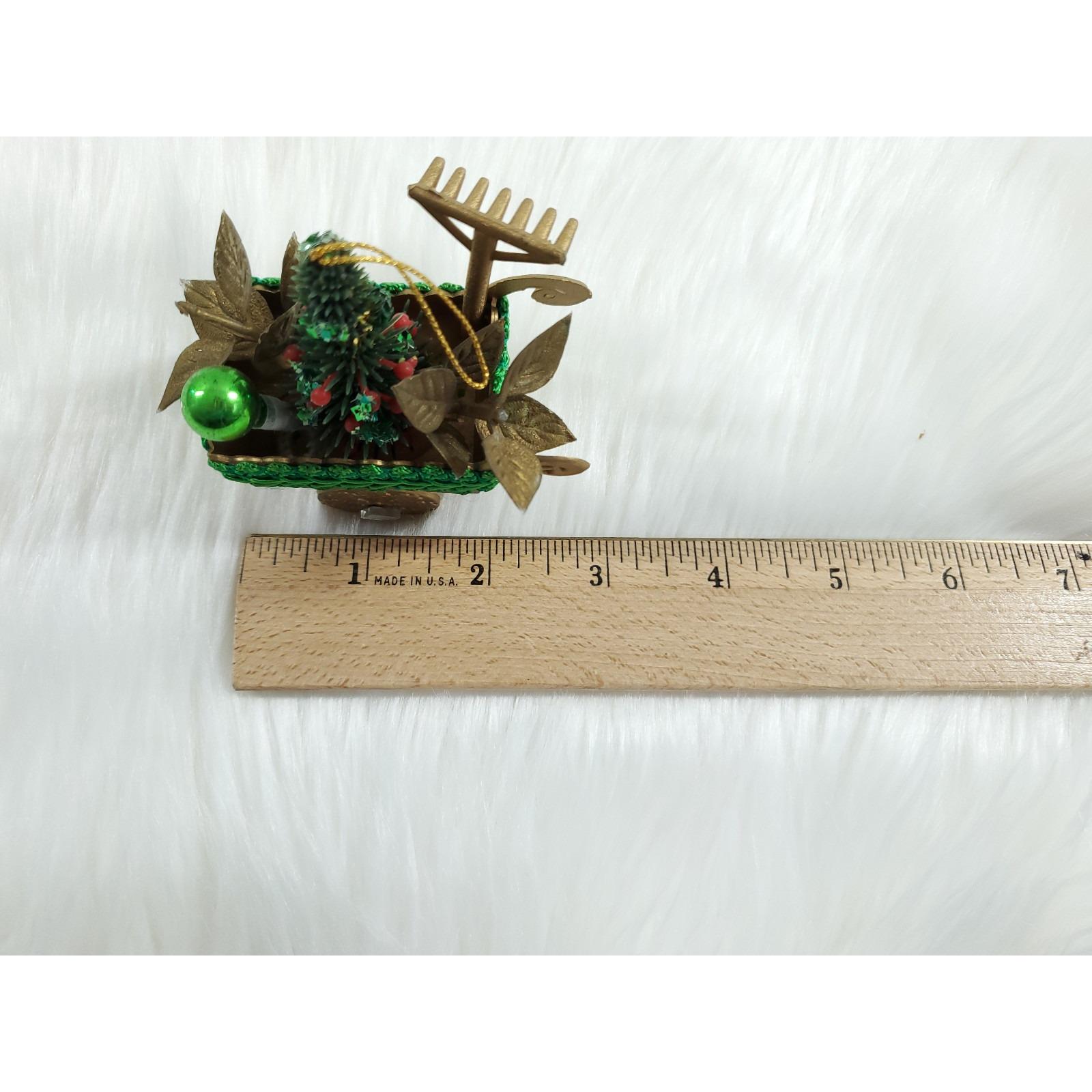 Vintage Plastic Wheelbarrow Rake Tree Gardner Kitsch Christmas Tree Ornament