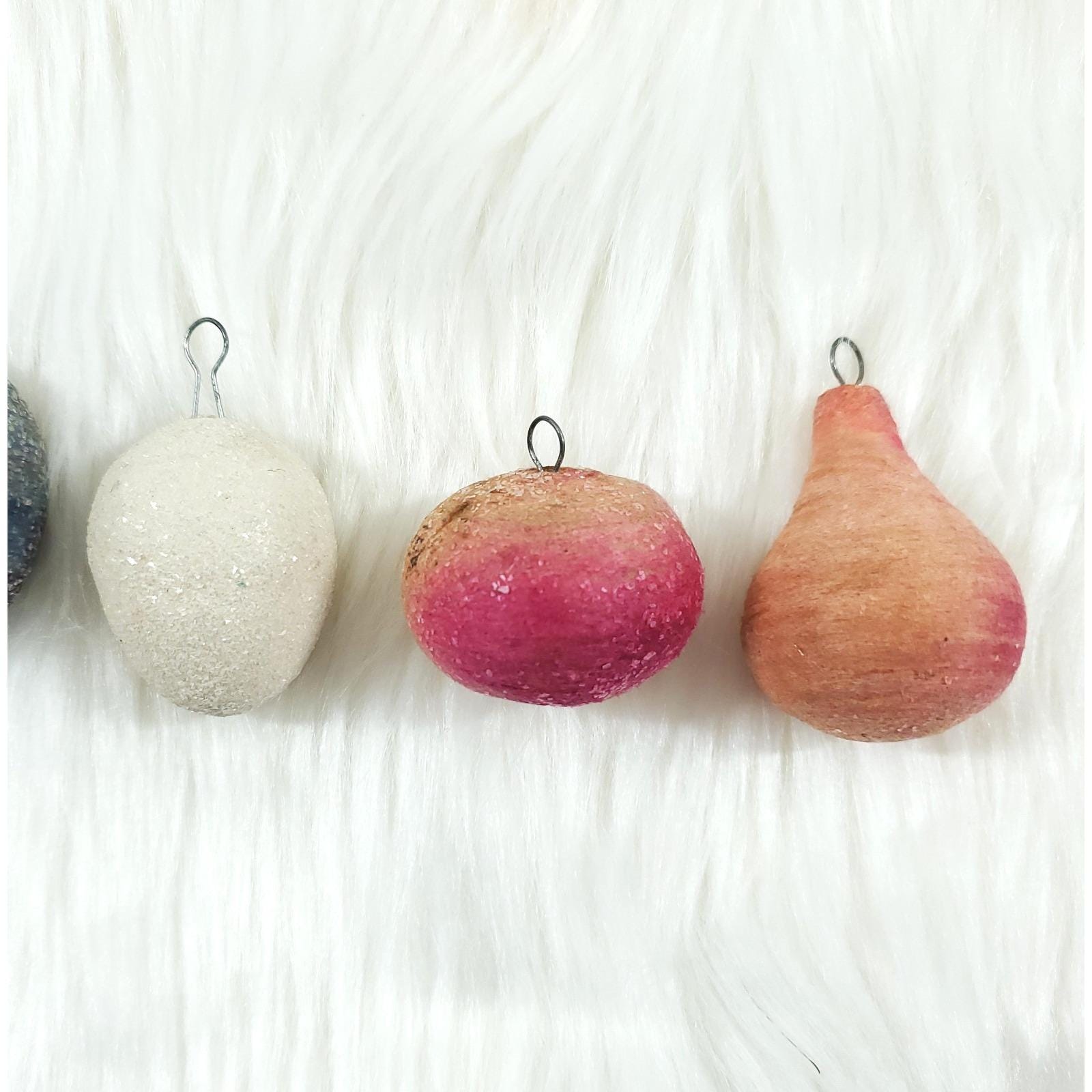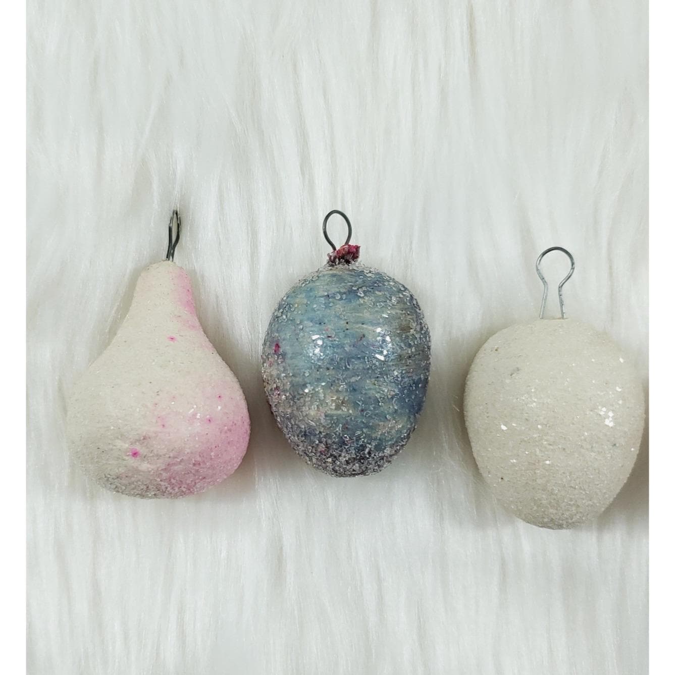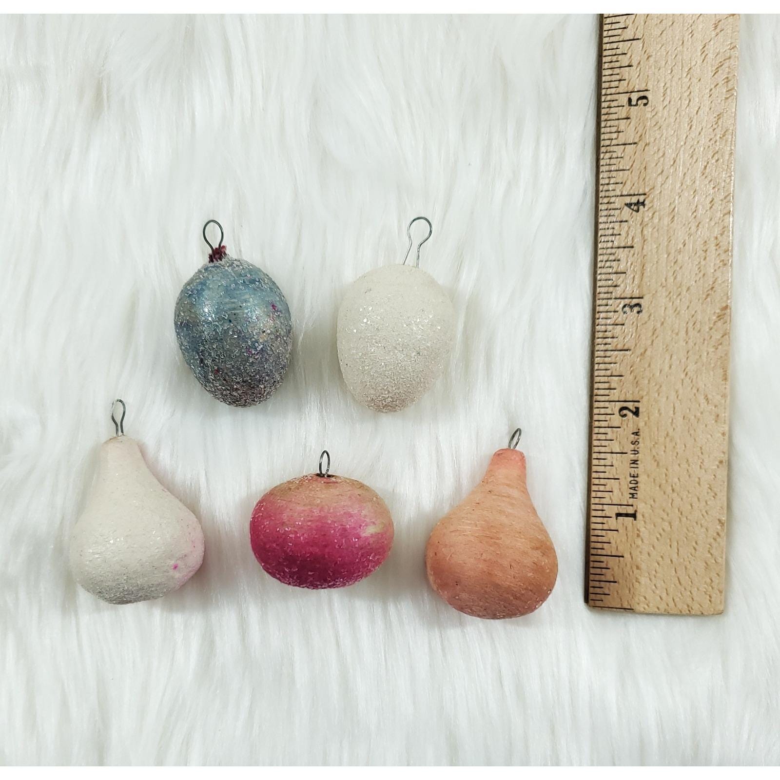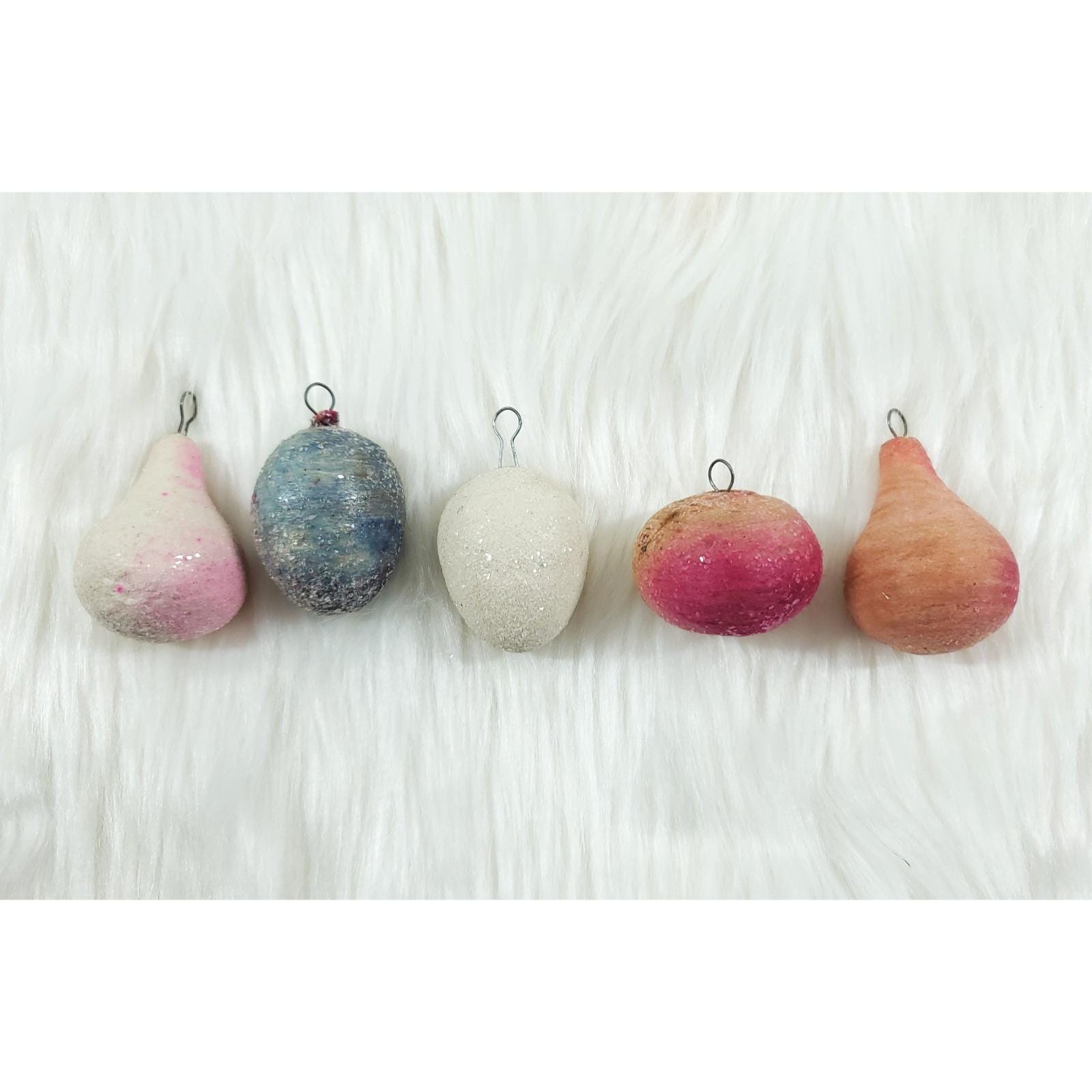 Antique German Spun Cotton Fruit Pear Apple Sugar Plum Christmas Ornaments
