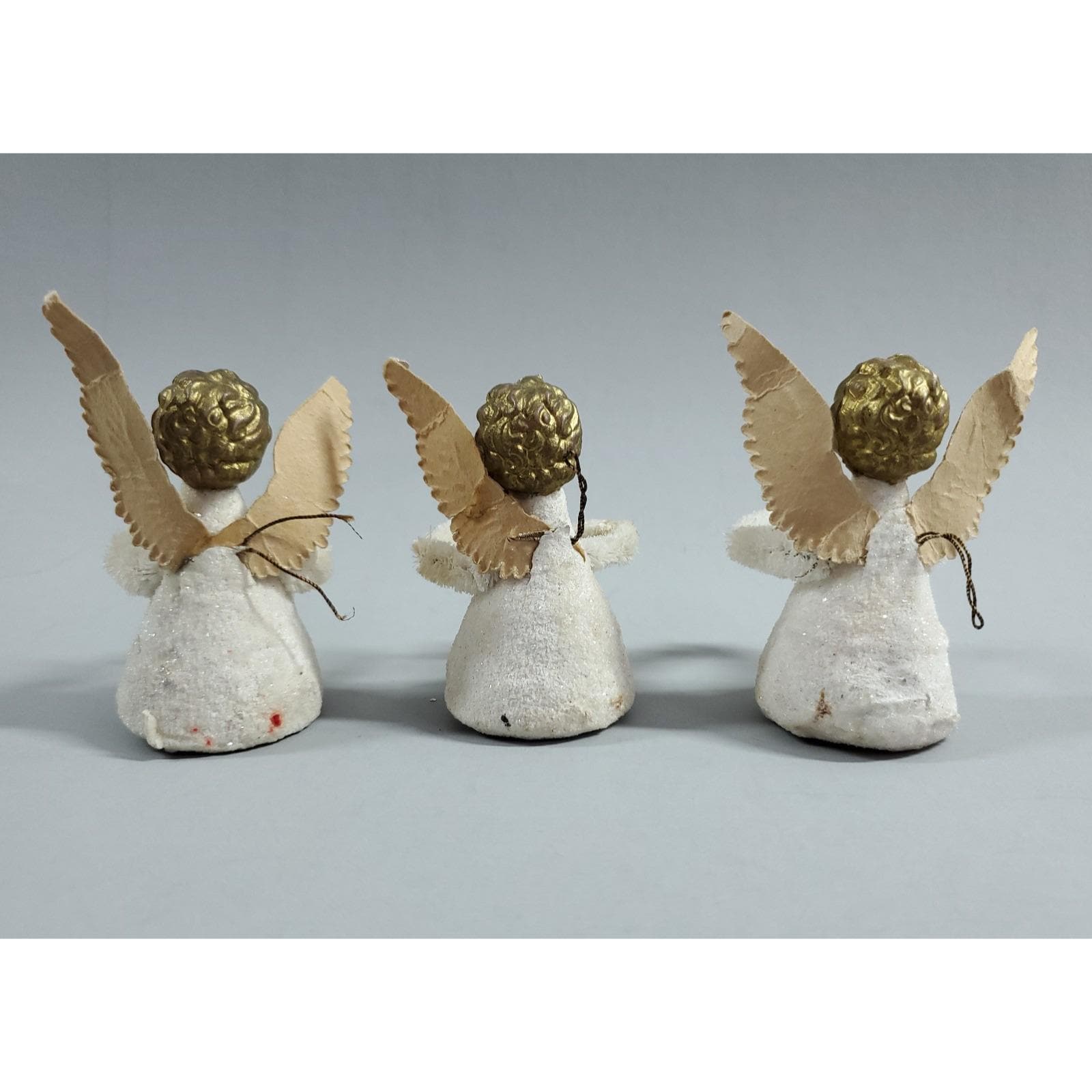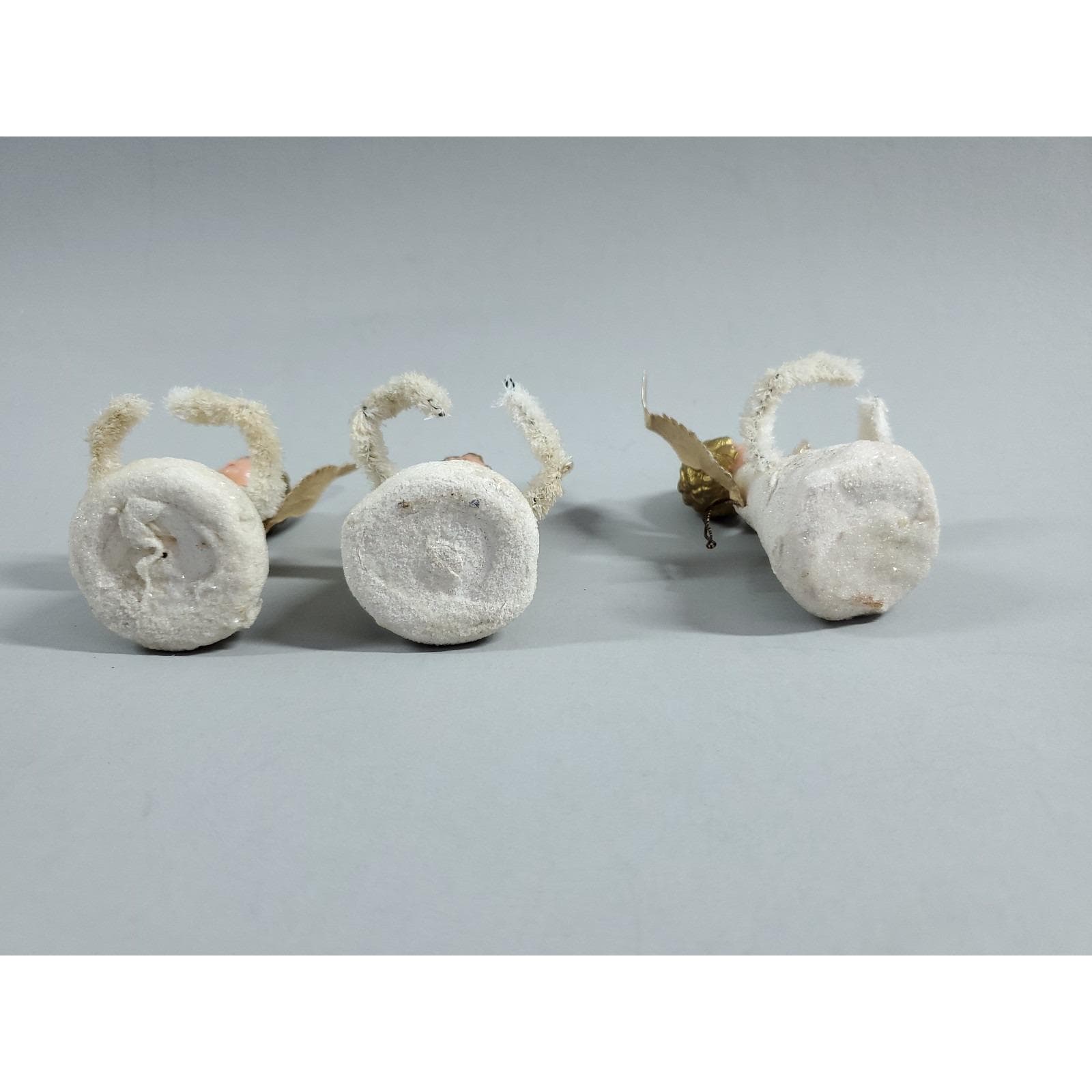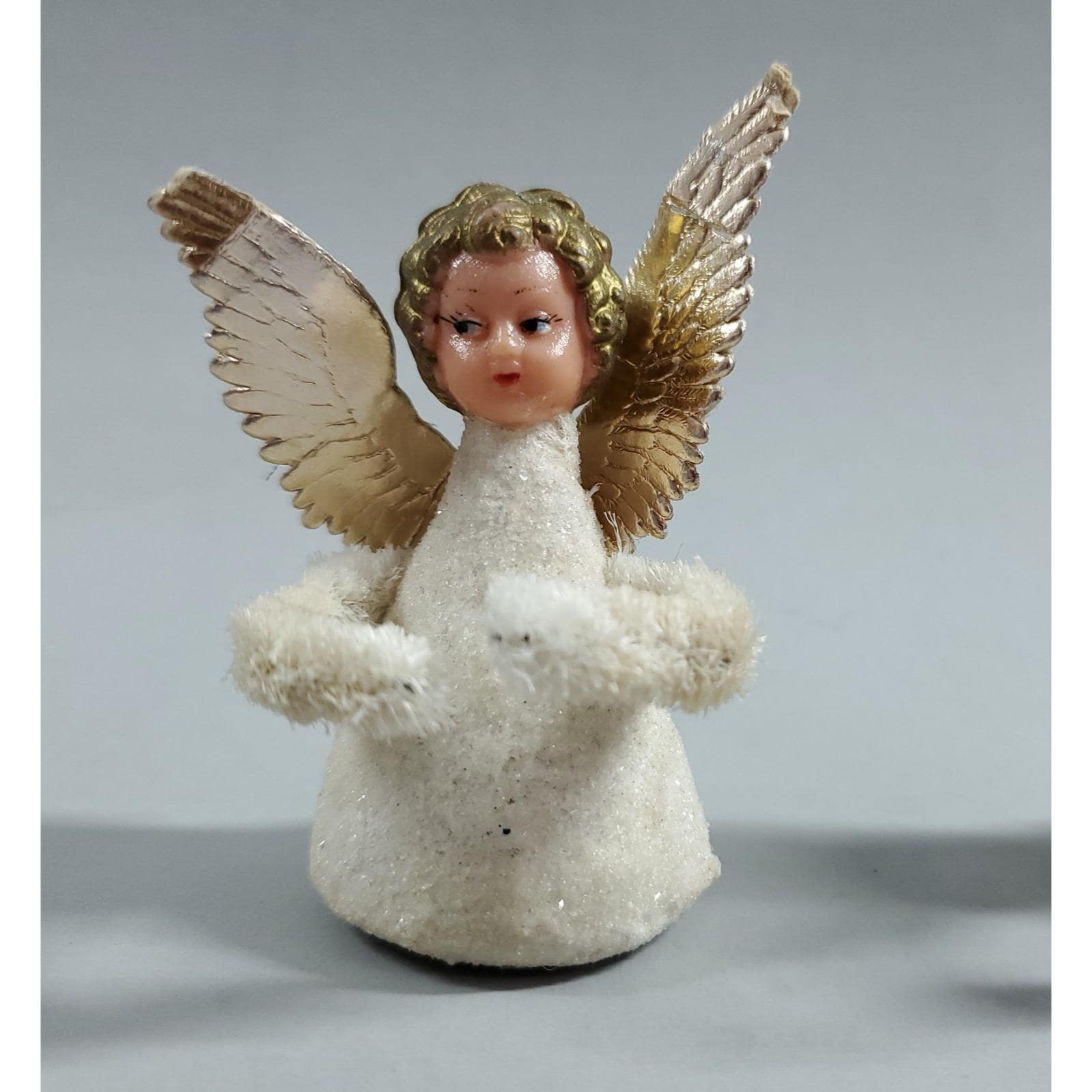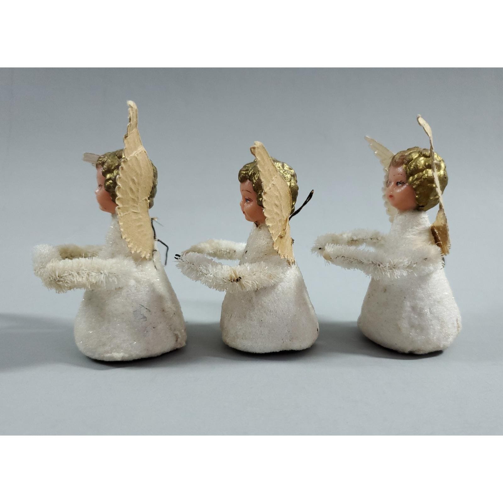 3 Vintage MCM Angel Putz Style Plastic Face Chenille Christmas Ornaments White