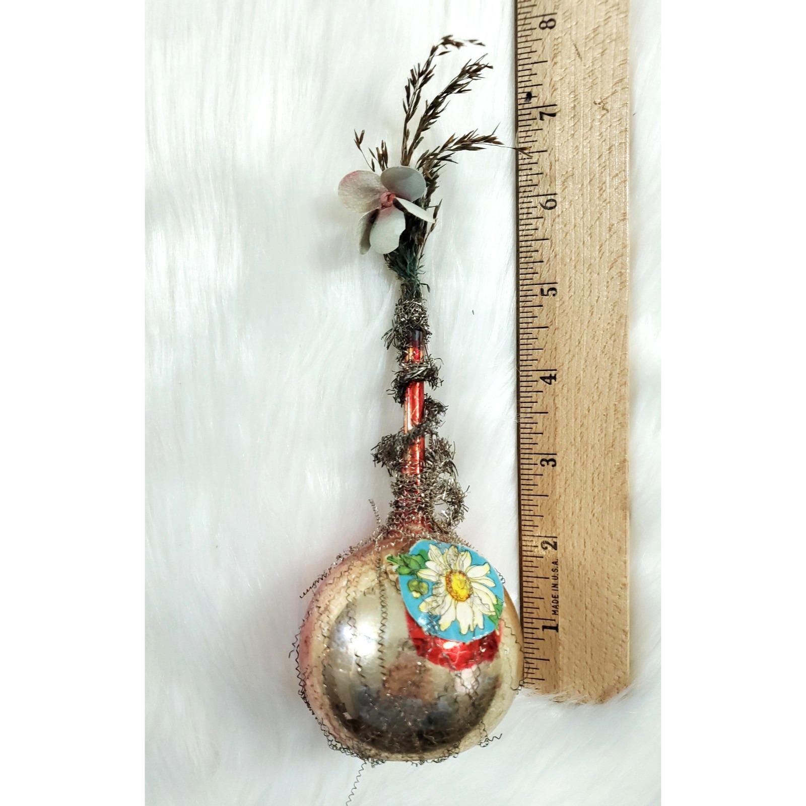 Antique Victorian German Wire Wrapped Fabric Flower Glass Vase Ornament
