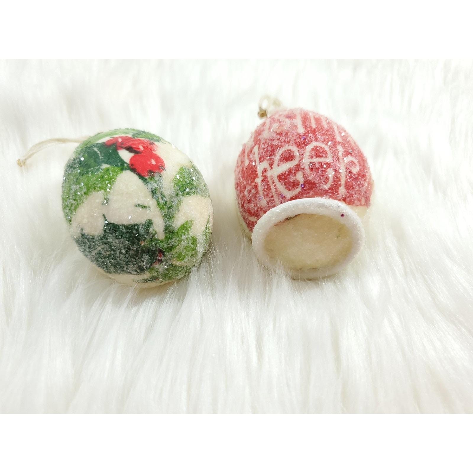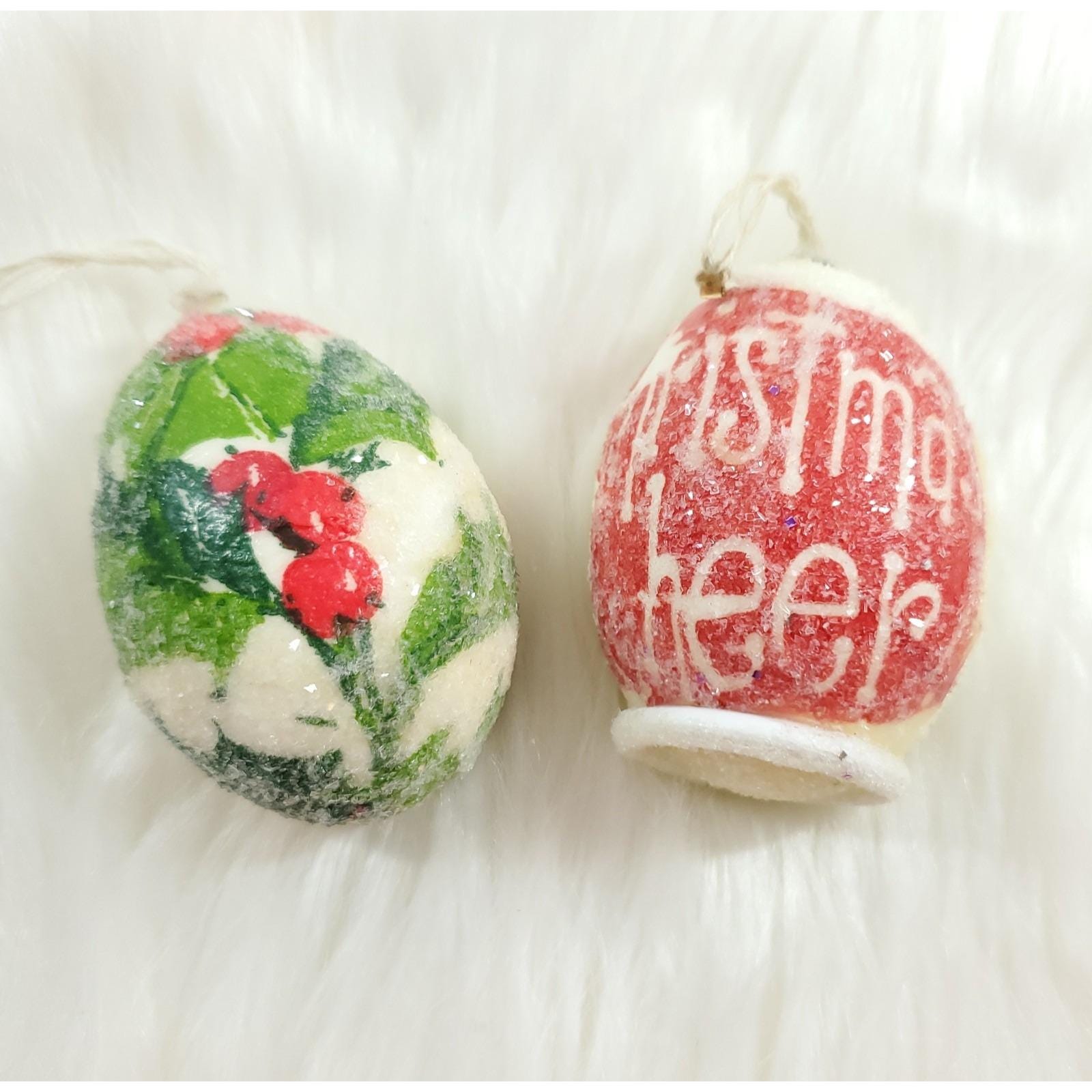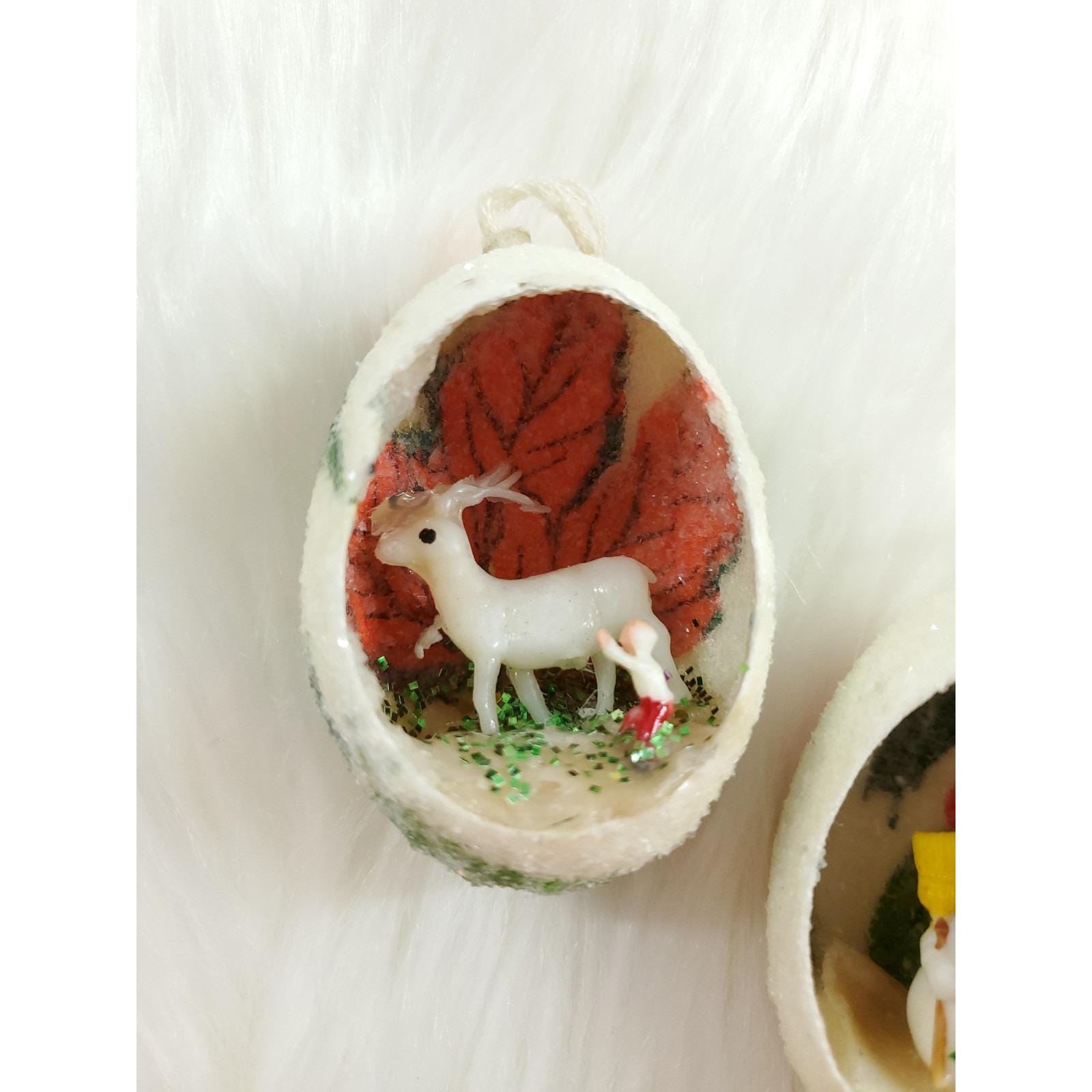 2 Vintage Snowman Reindeer Real Eggshell Diorama Egg Christmas Ornaments