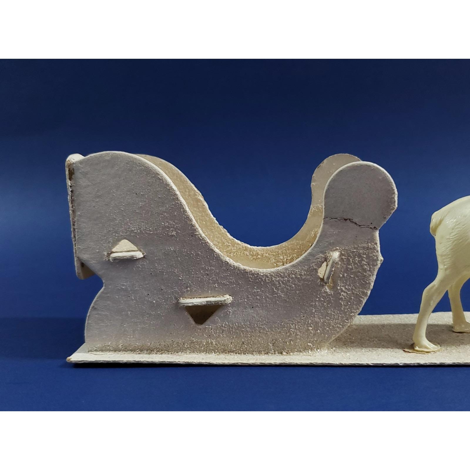 Vintage Putz Mica Santa Claus Sleigh with Celluloid Reindeer Christmas Display