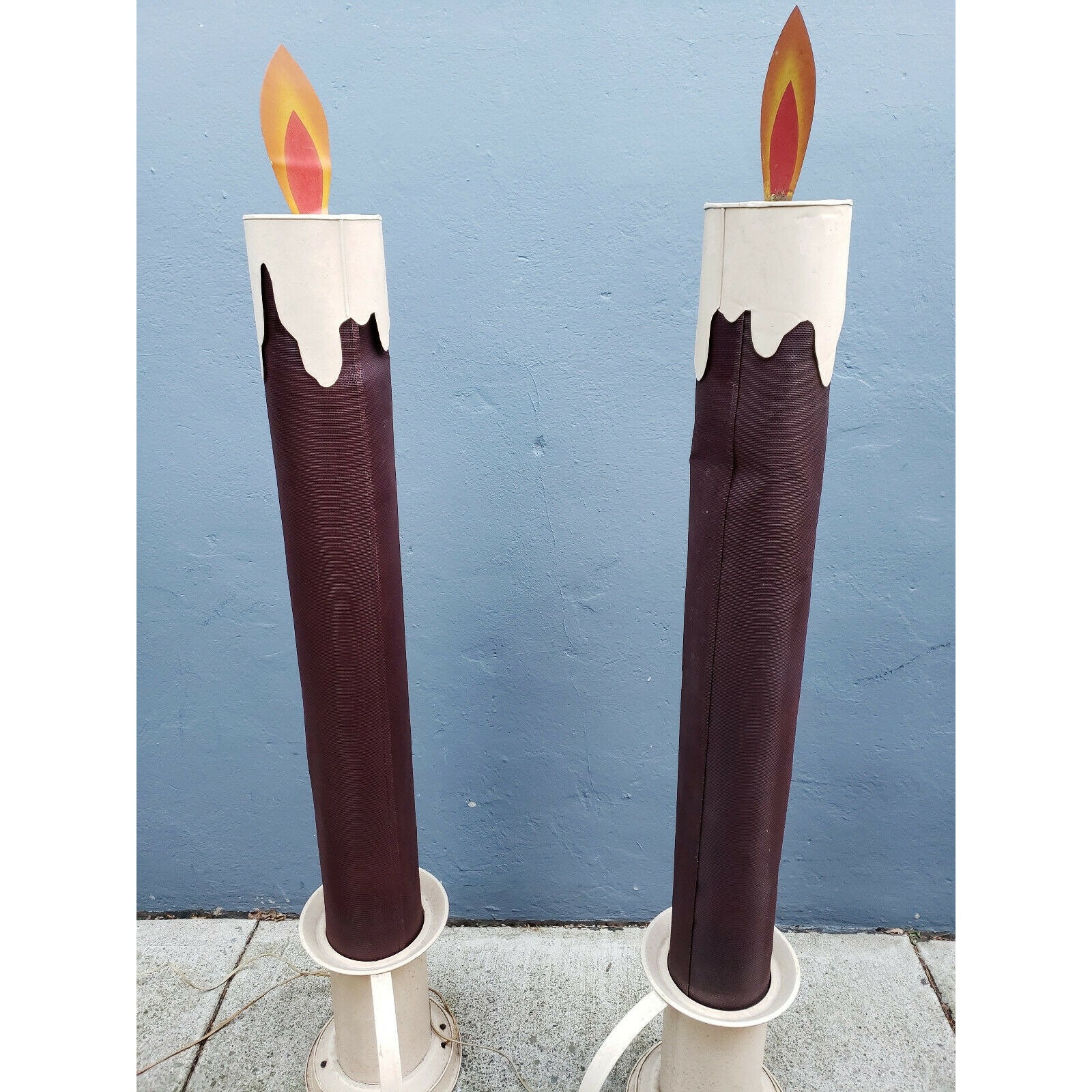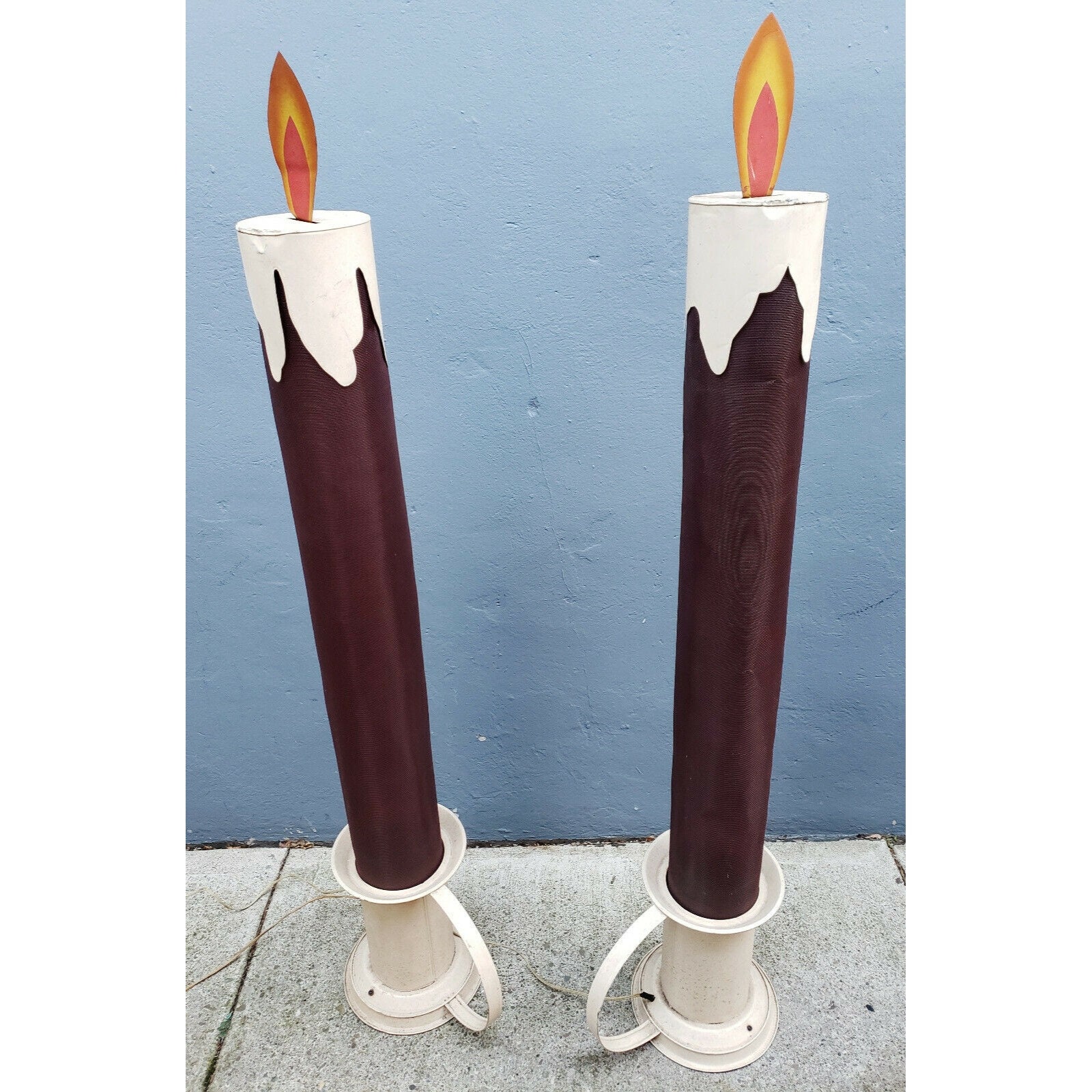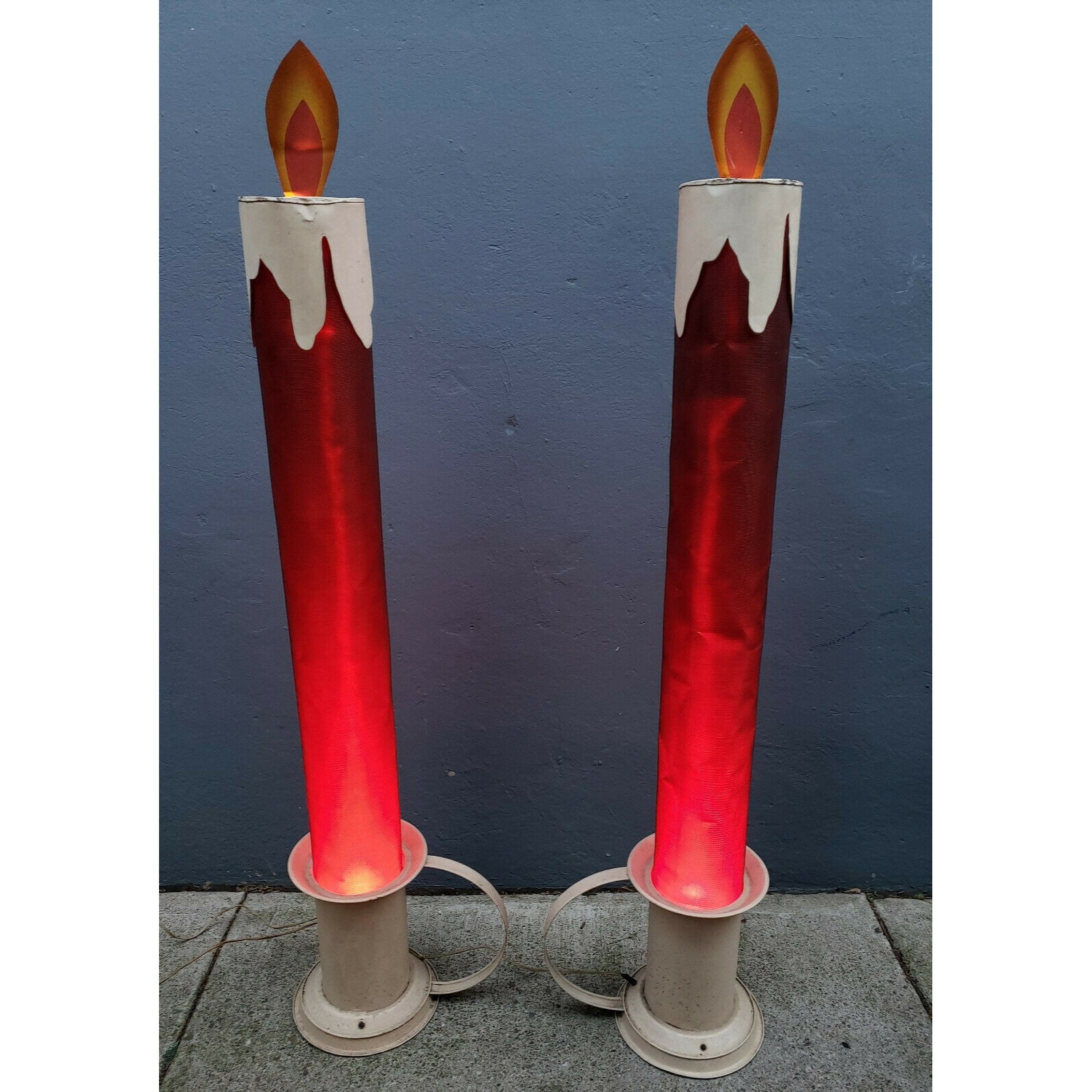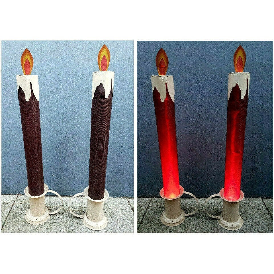 This pair of 4 1/2 foot tall Victorian style chamberstick electric Christmas "Candleglo" candles will make an excellent addition to your holiday collection. These are truly rare vintage Christmas displays that you may never see another again!