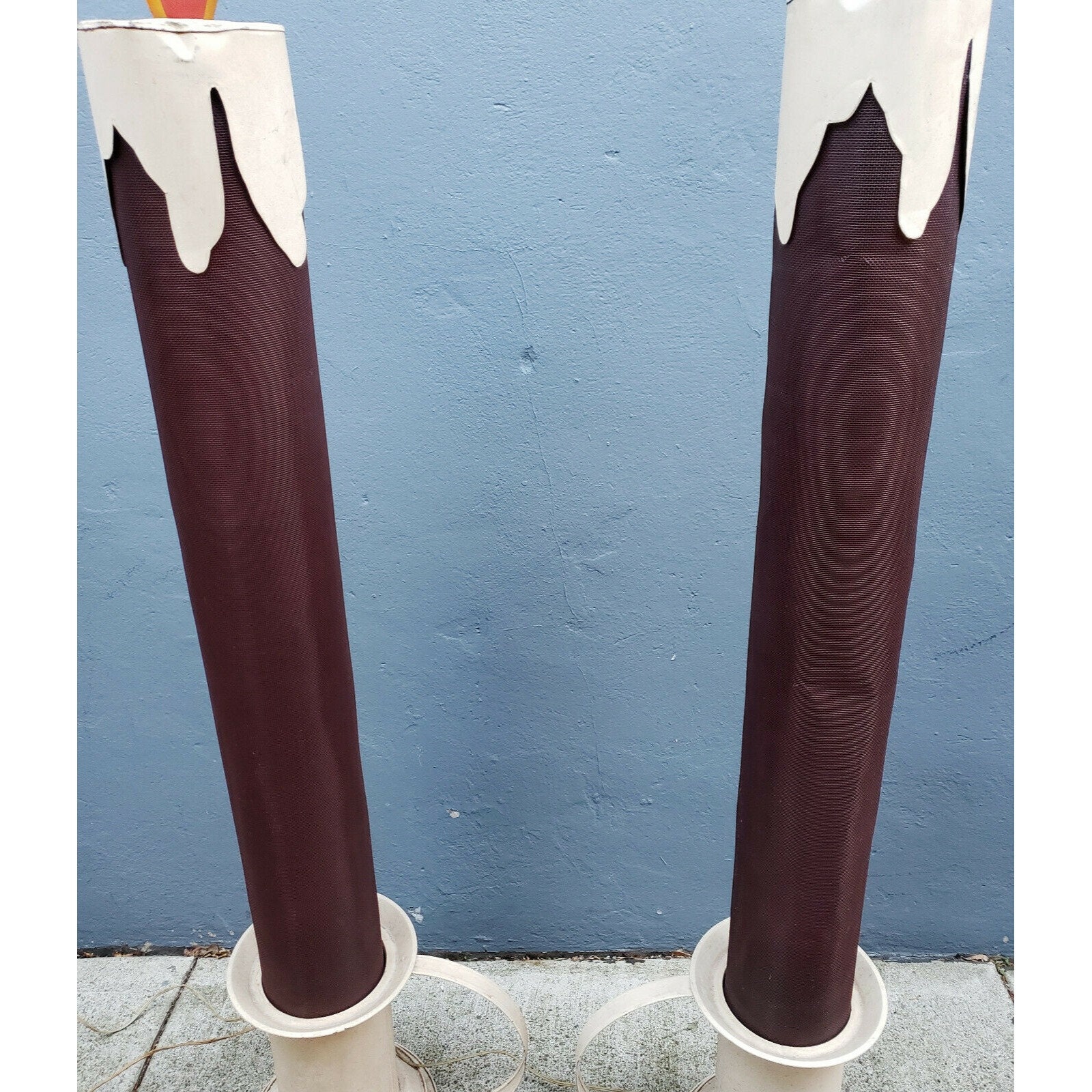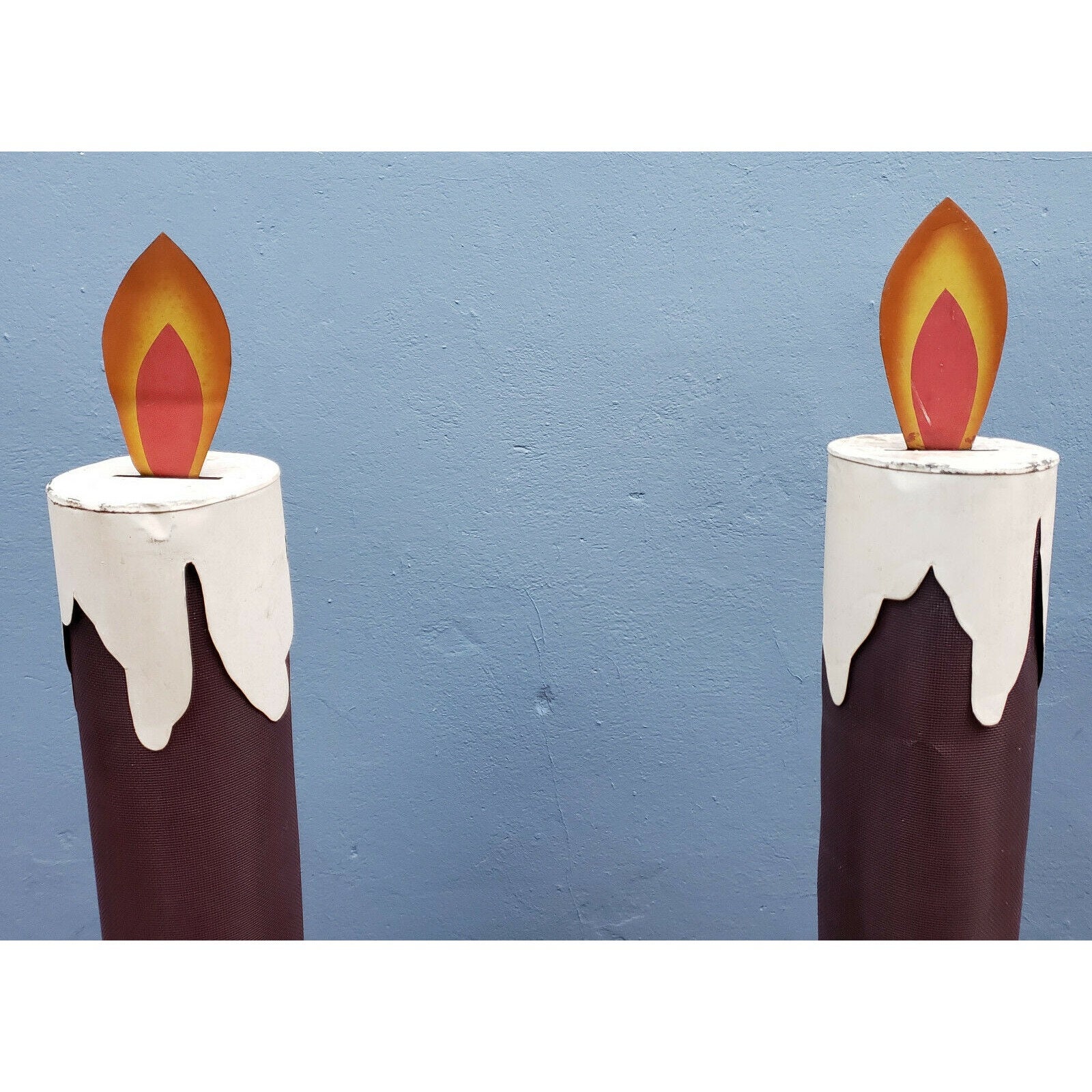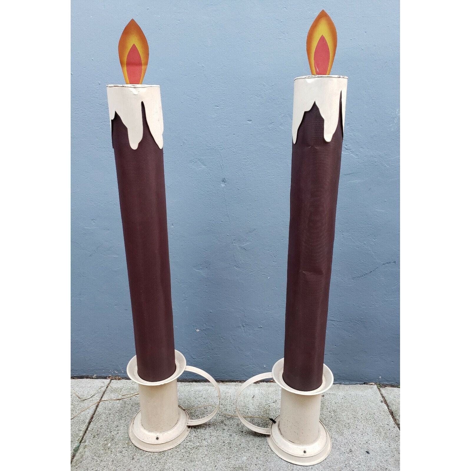 This pair of 4 1/2 foot tall Victorian style chamberstick electric Christmas "Candleglo" candles will make an excellent addition to your holiday collection. These are truly rare vintage Christmas displays that you may never see another again!