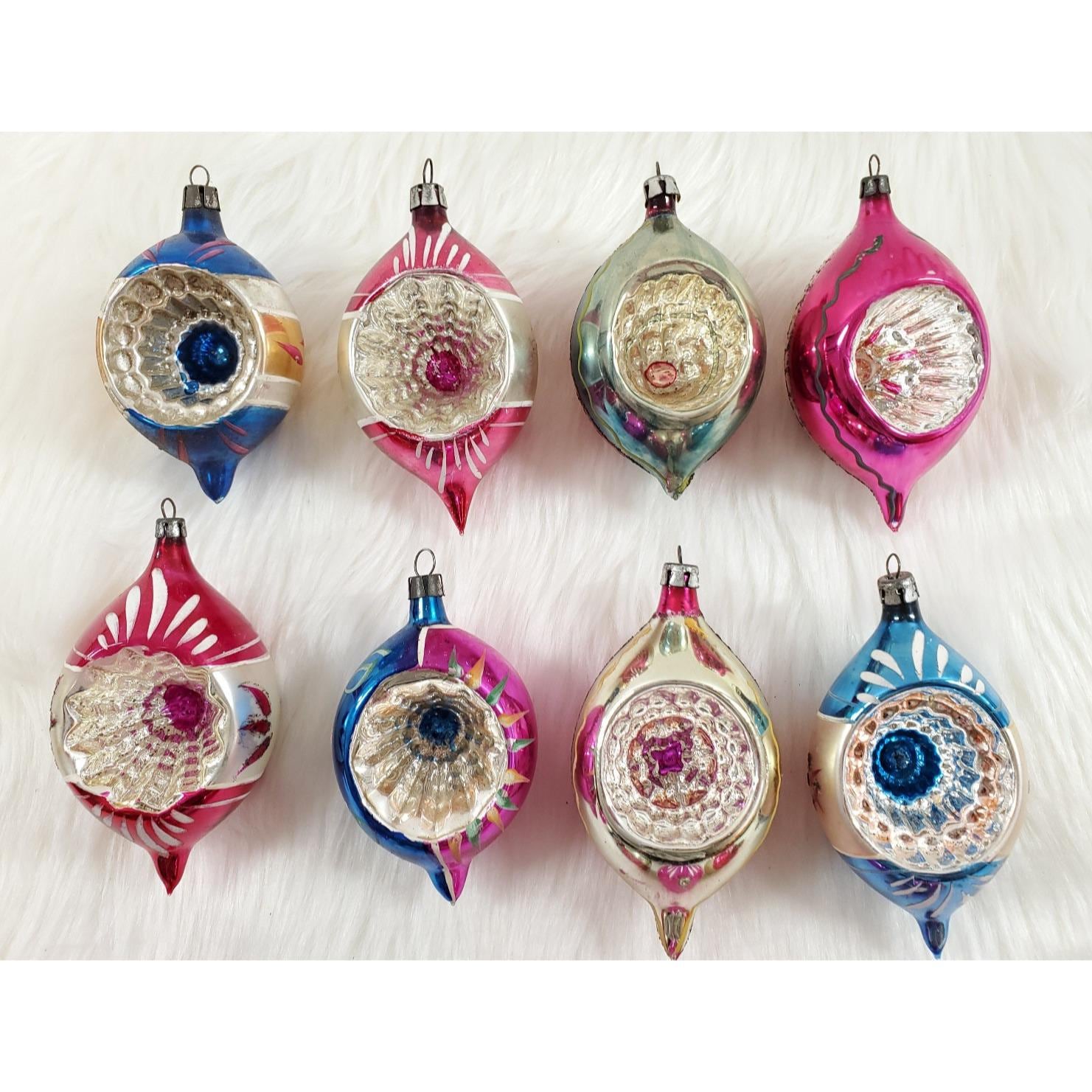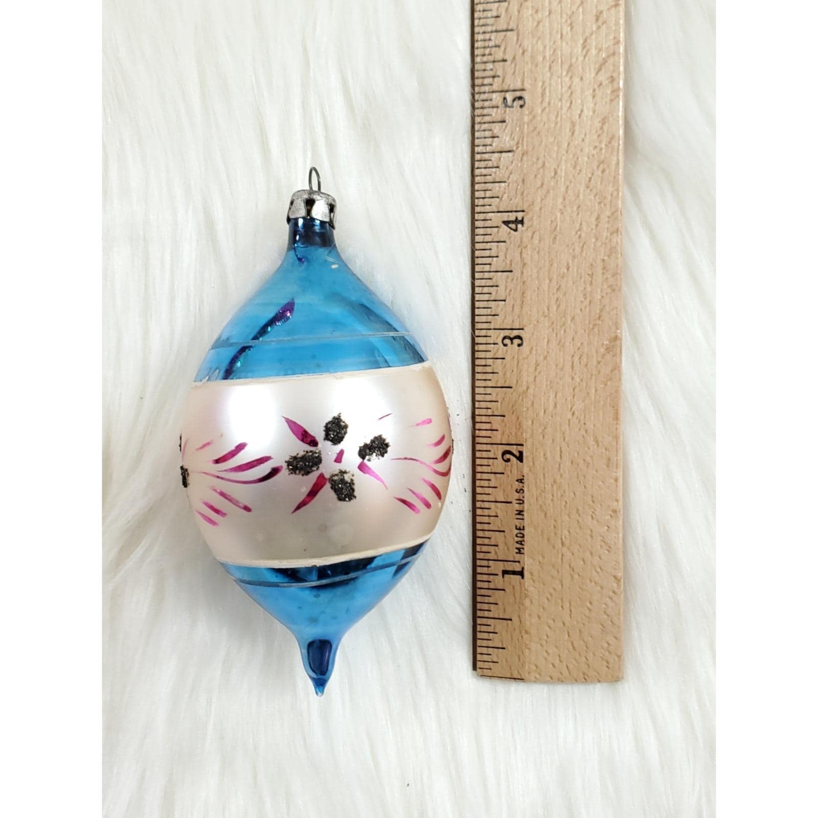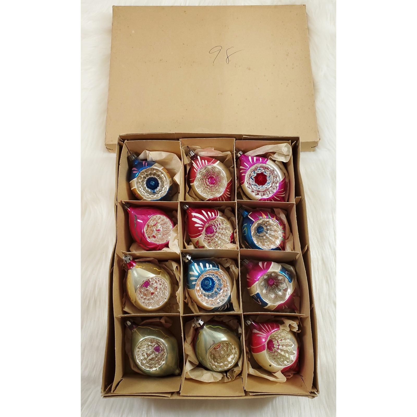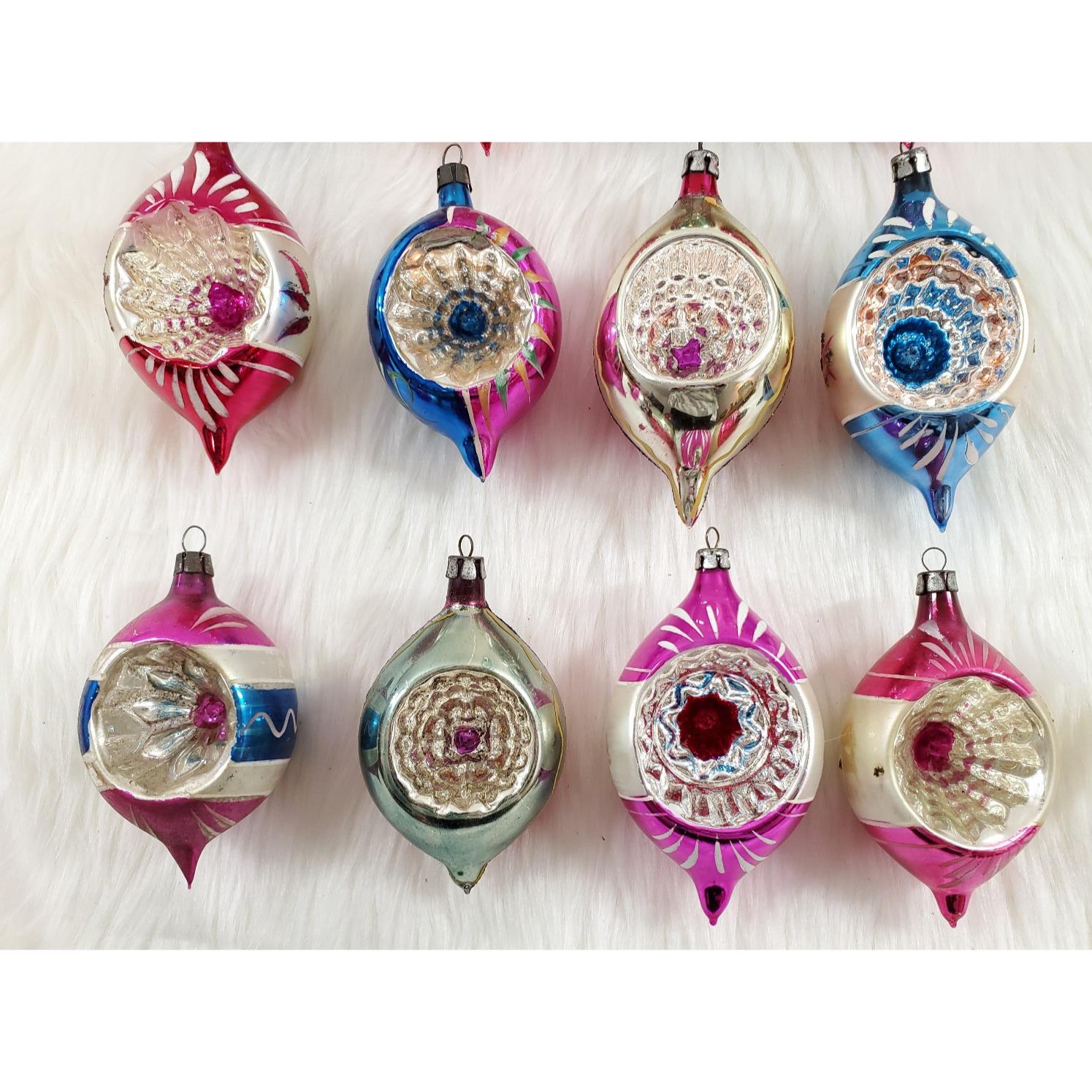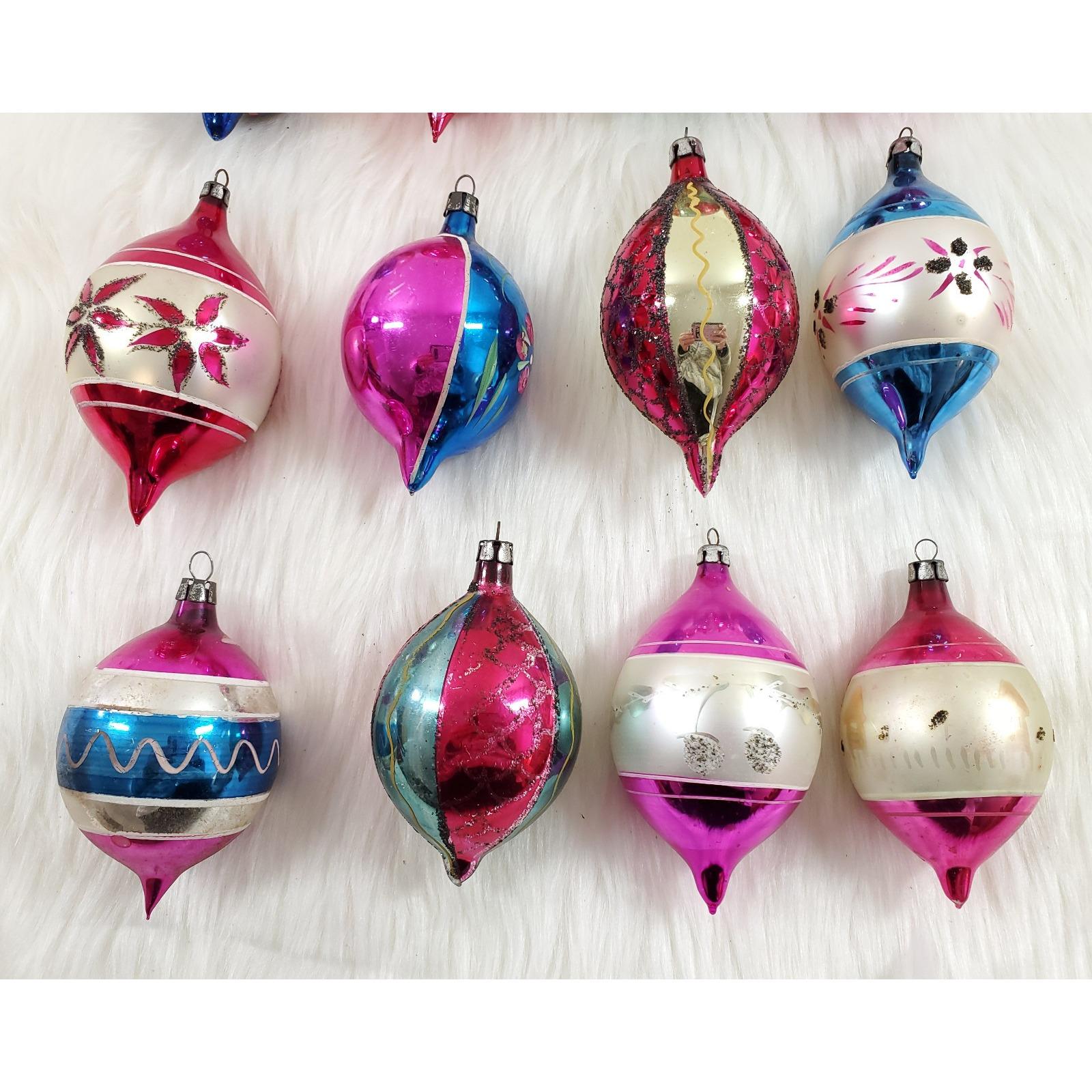12 Vintage 4" Jumbo Indent Poland Mica Teardrop Blown Glass Christmas Ornaments