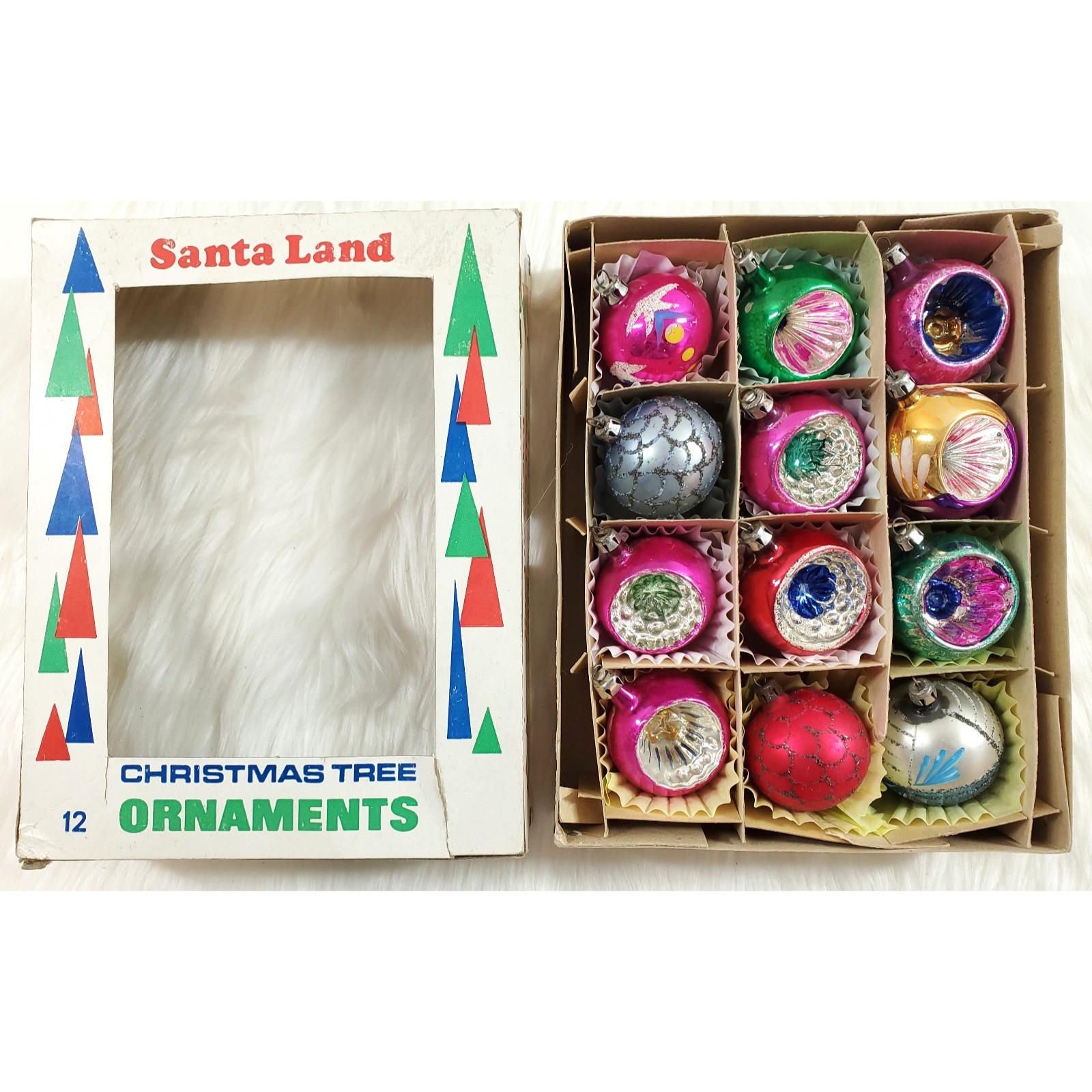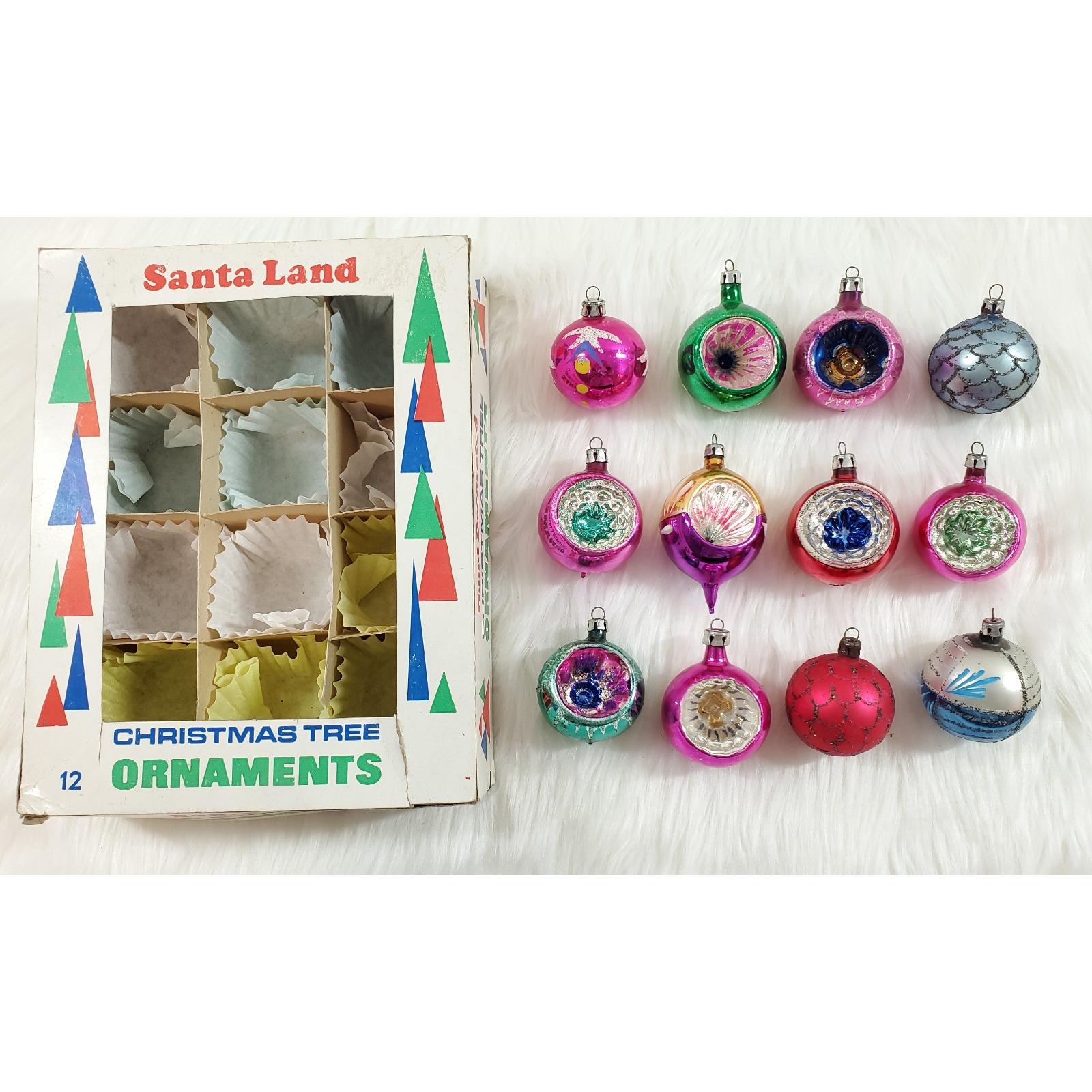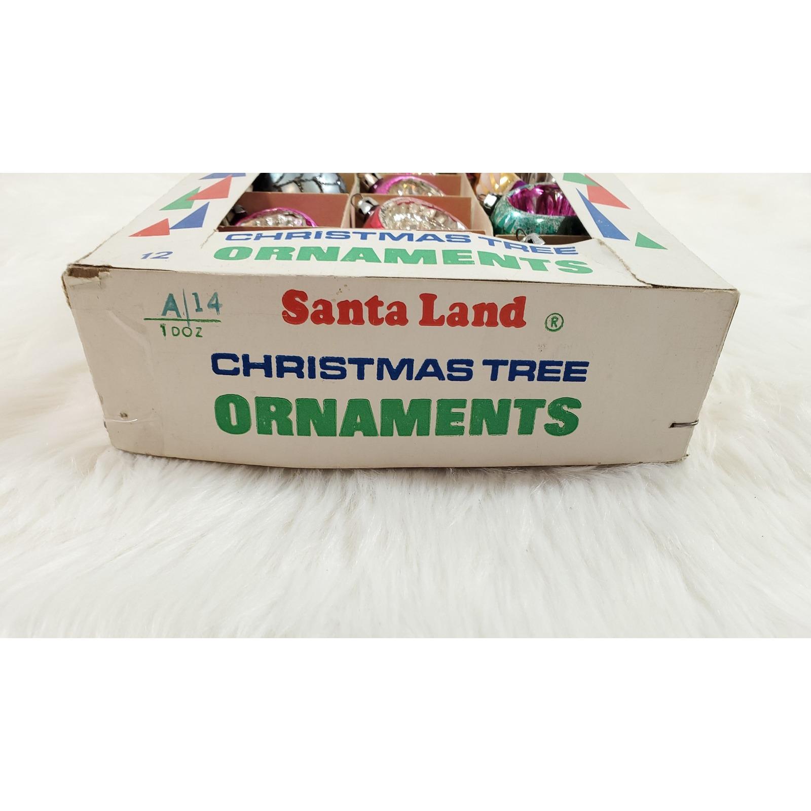 12 Vintage Santa Land Poland Mica Indent Teardrop Ball Glass Christmas Ornaments