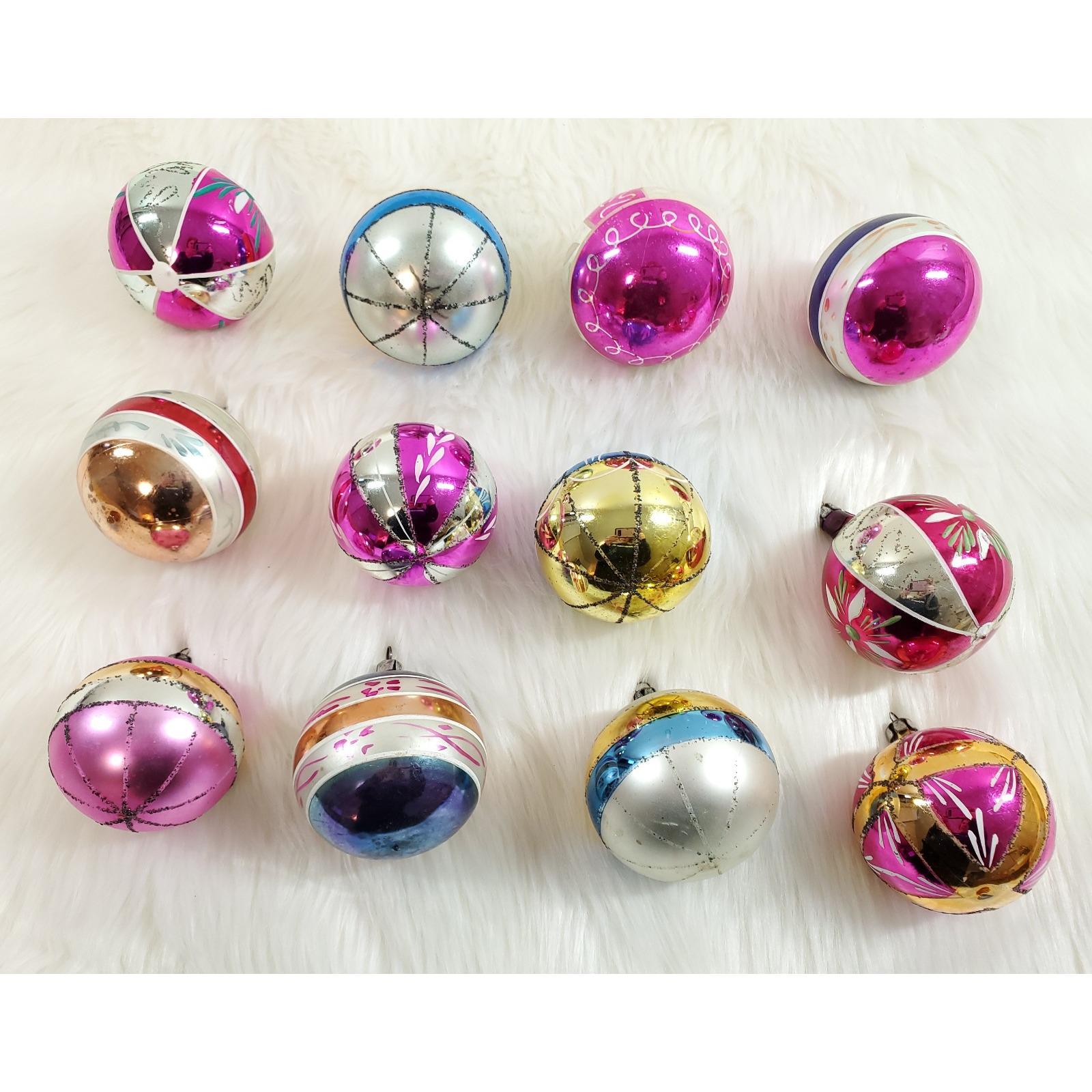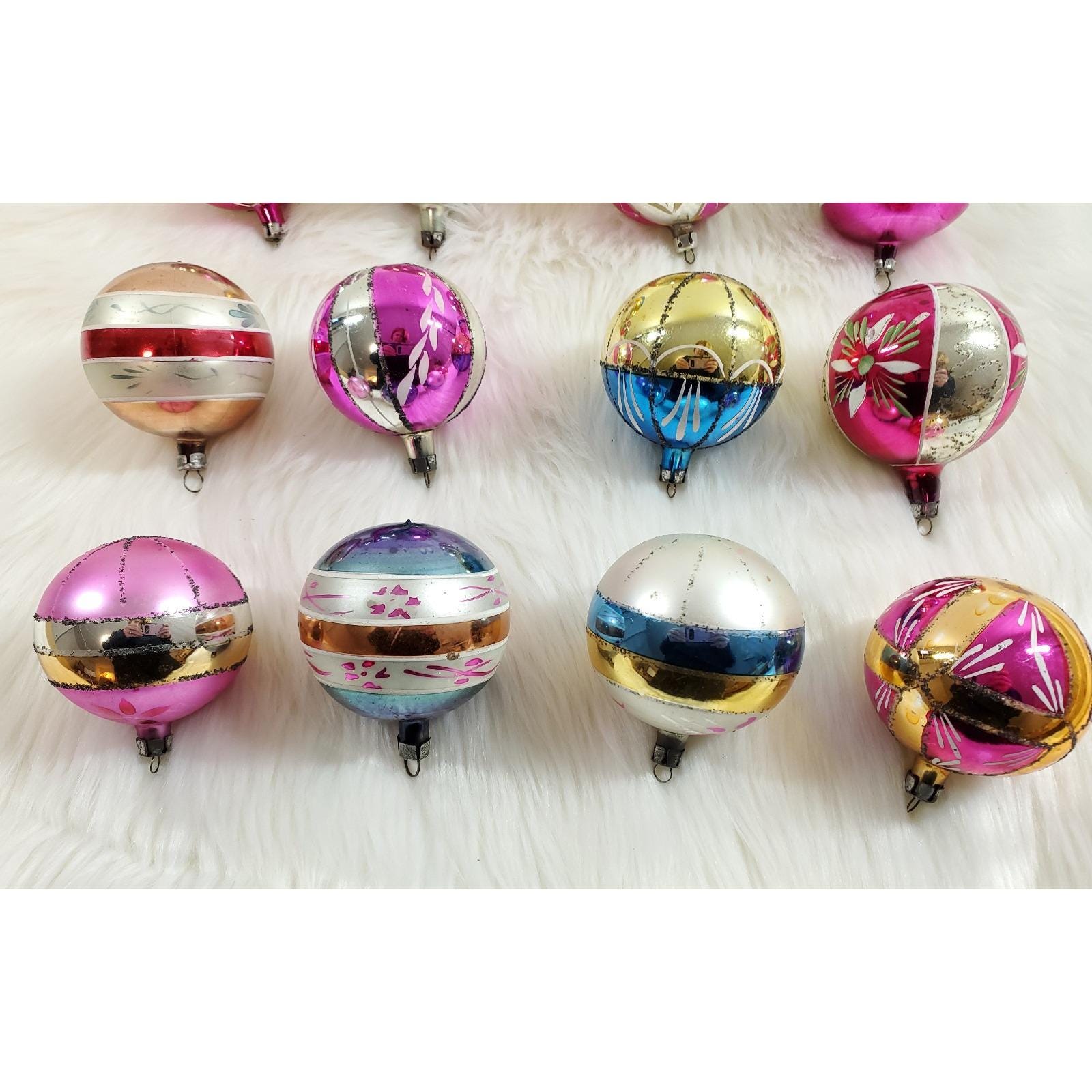 12 Vintage Poland Fantasia Mica Hand Painted Ball Glass Christmas Ornaments
