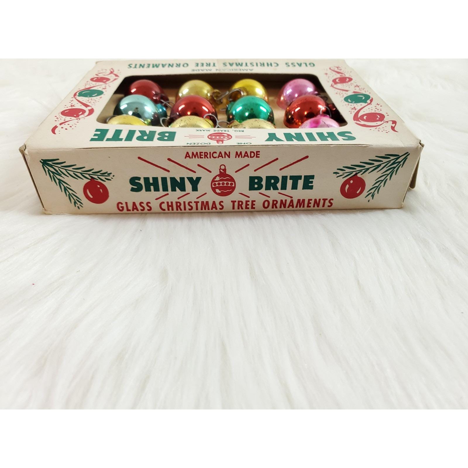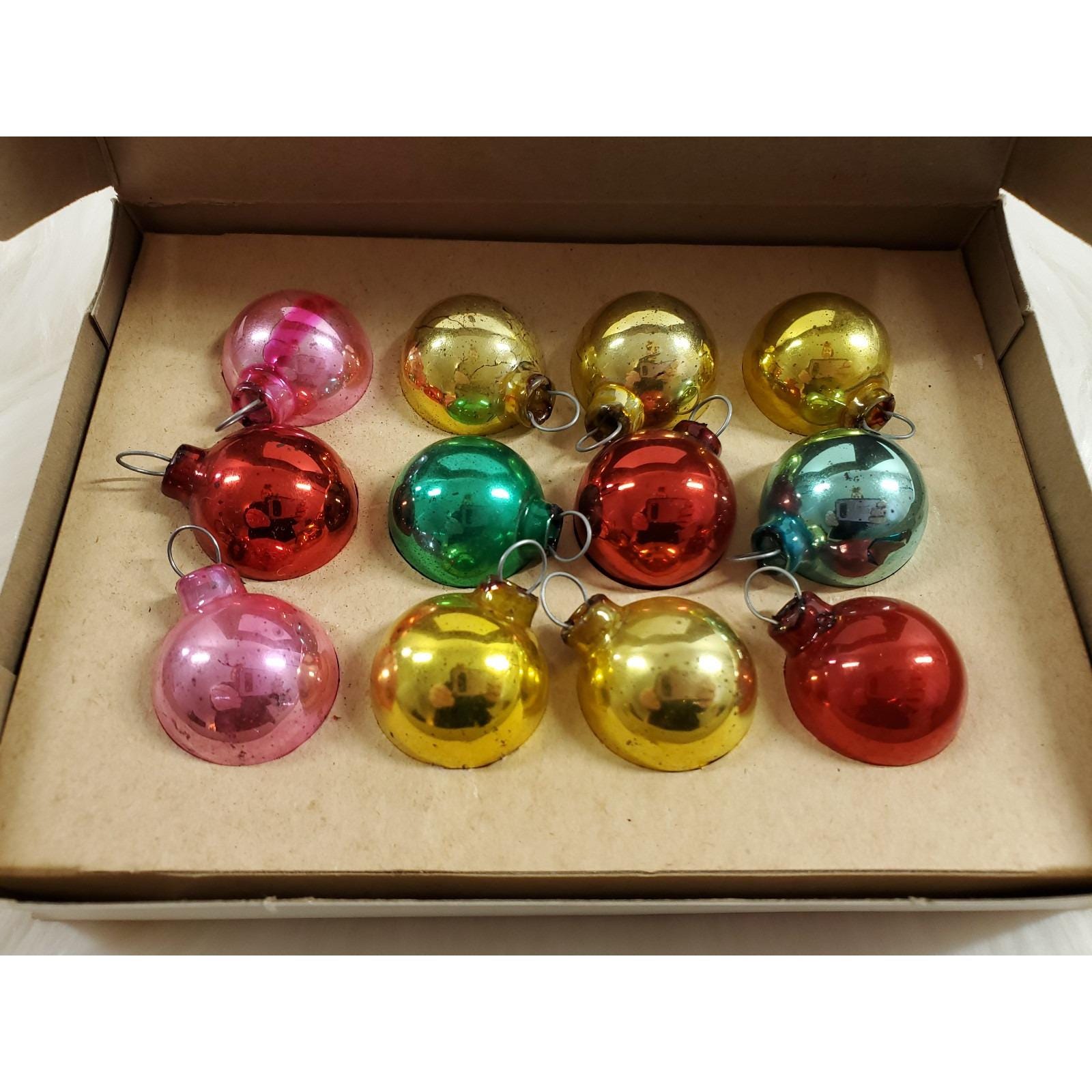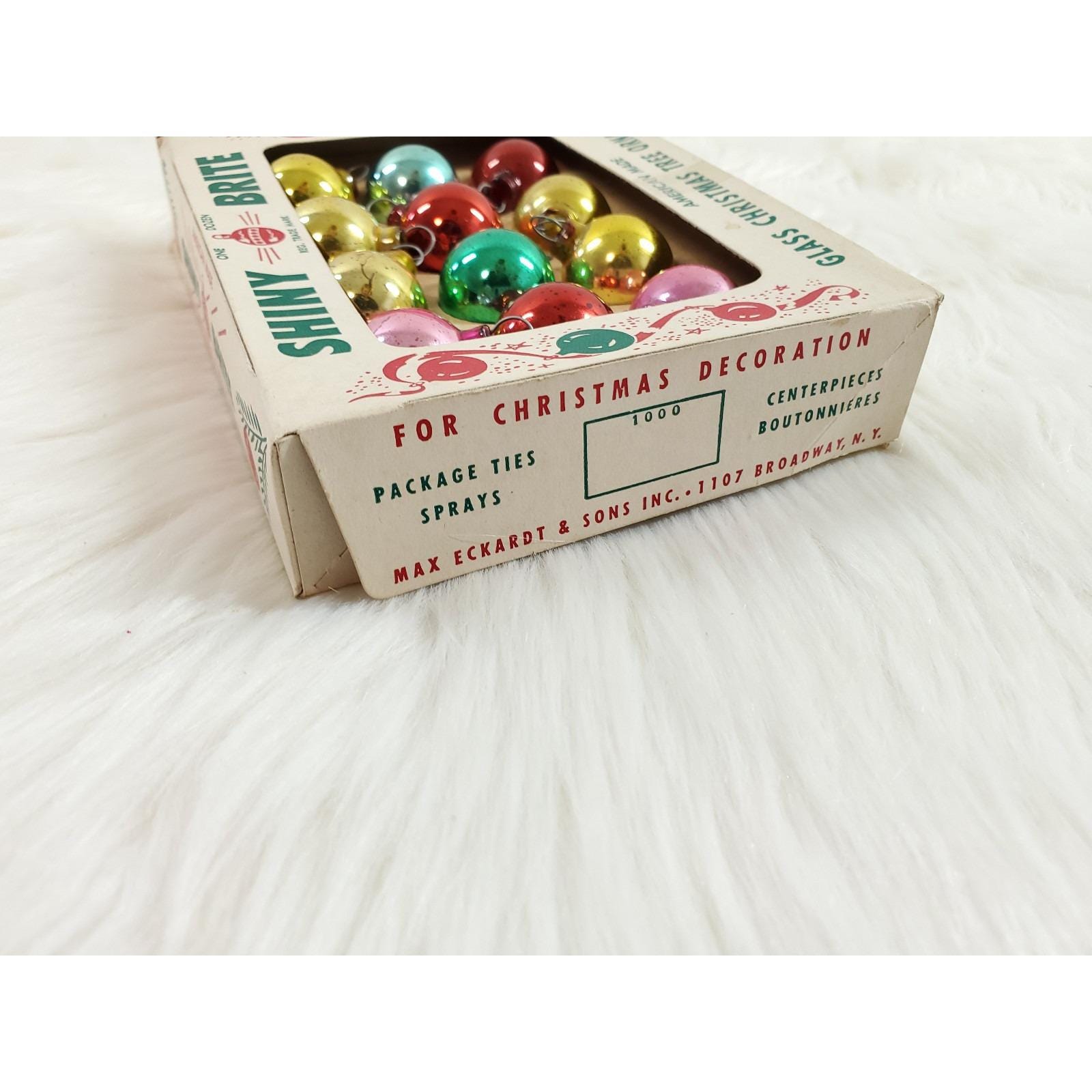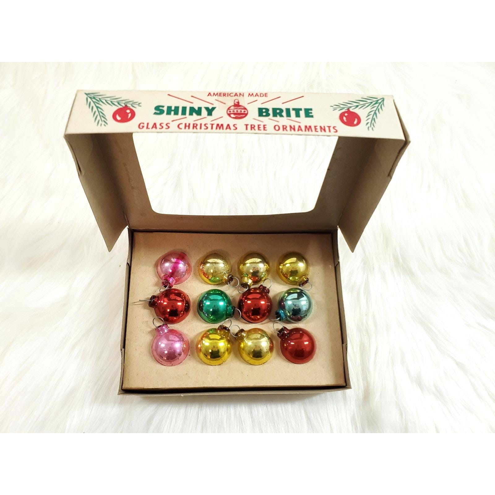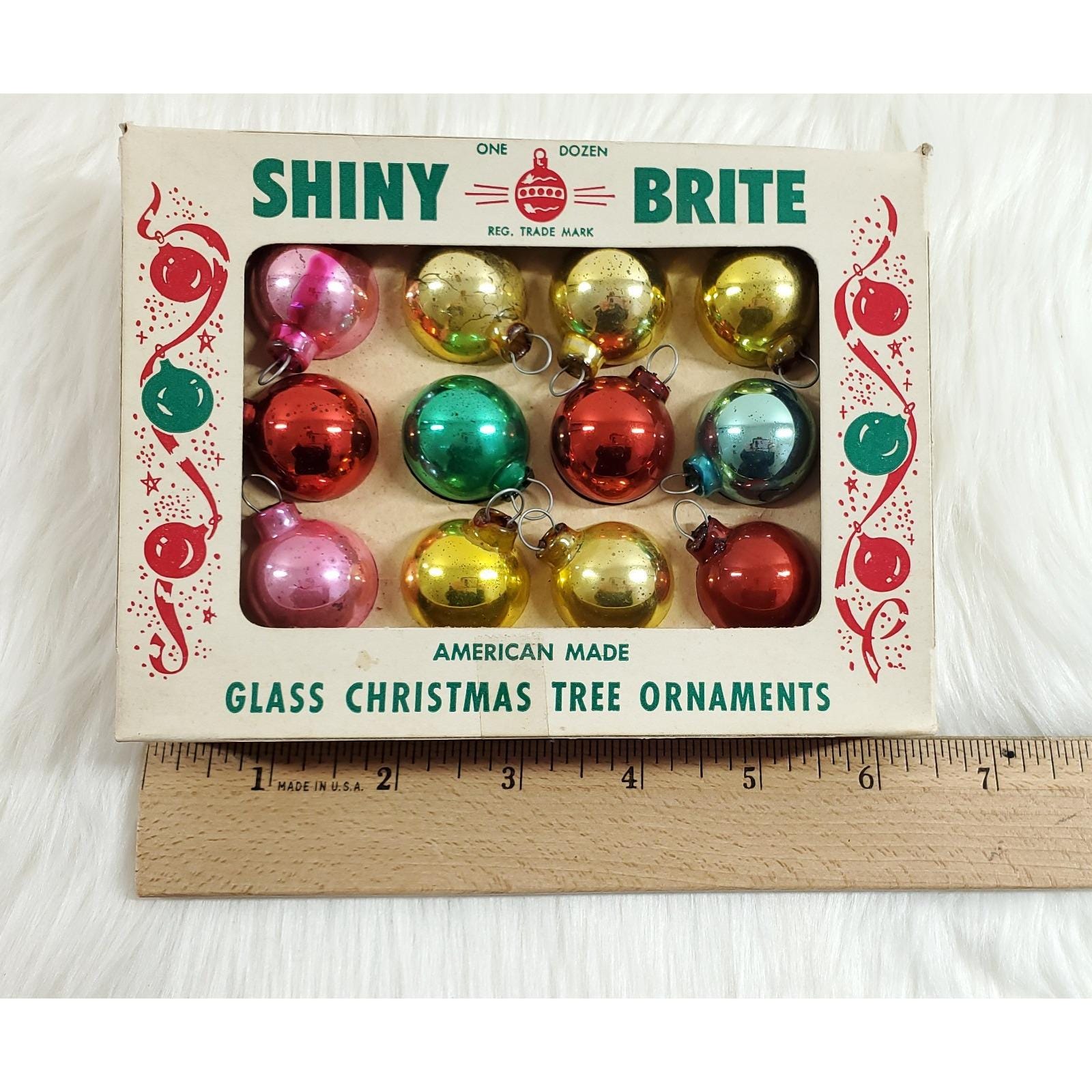 12 Vintage Shiny Brite Mini Mercury Glass Feather Tree Christmas Ornaments Box