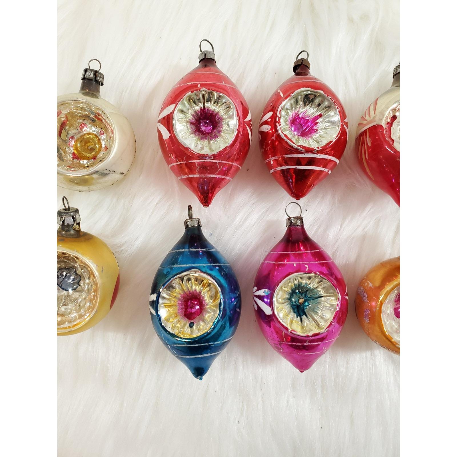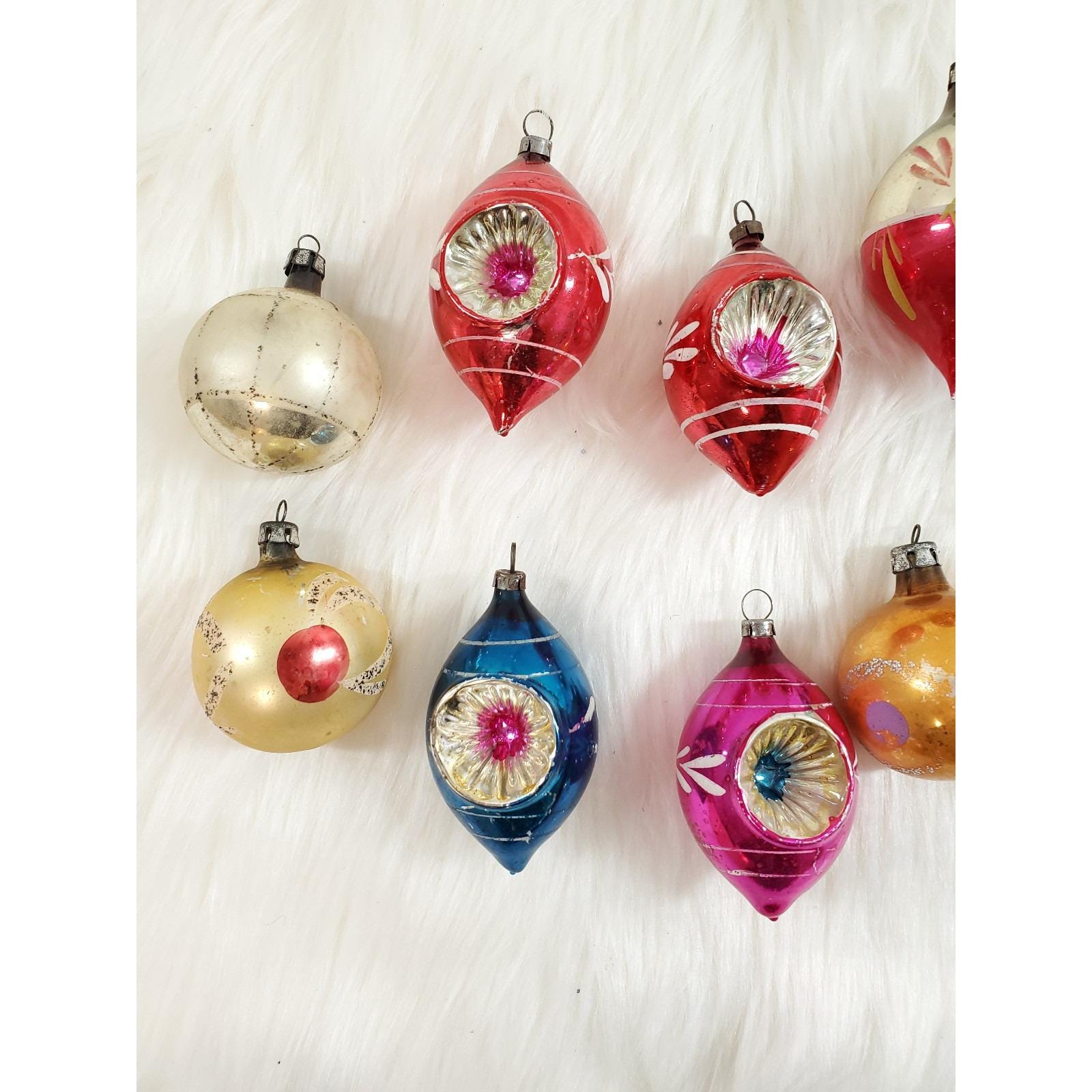 12 Antique Poland Double Indent Teardrop Ball Glass Vintage Christmas Ornaments