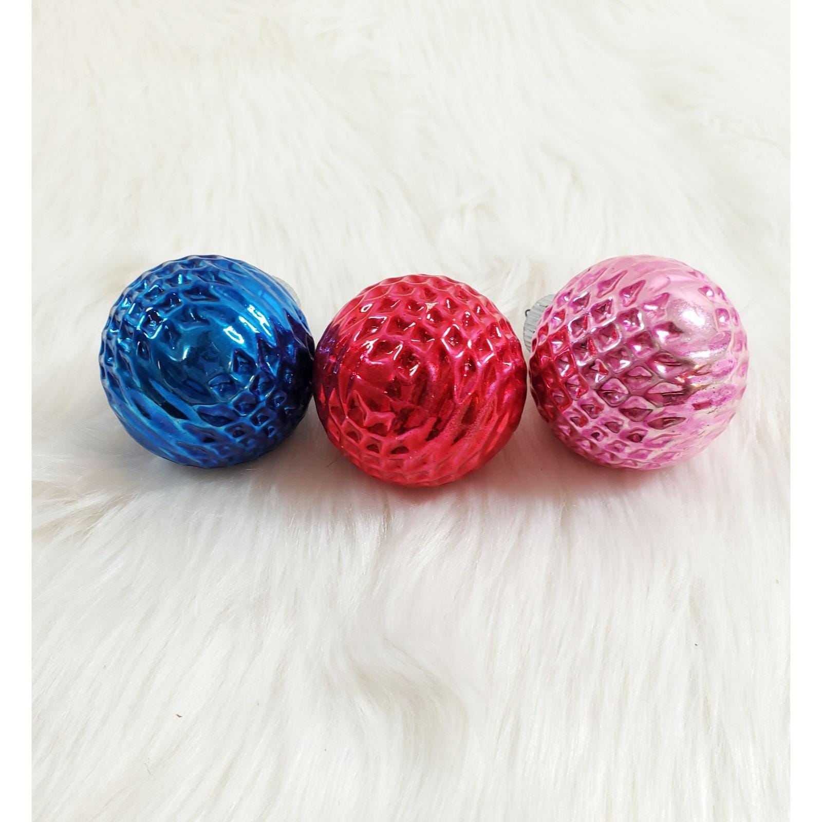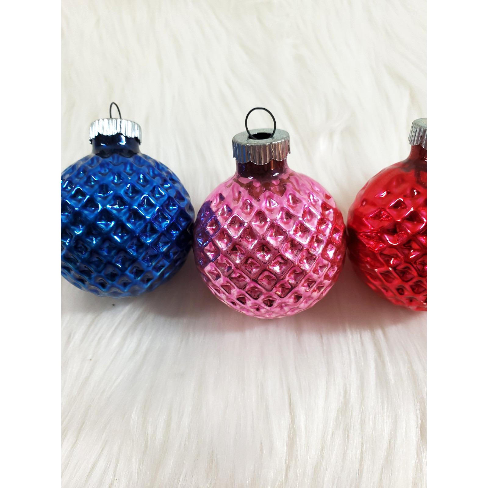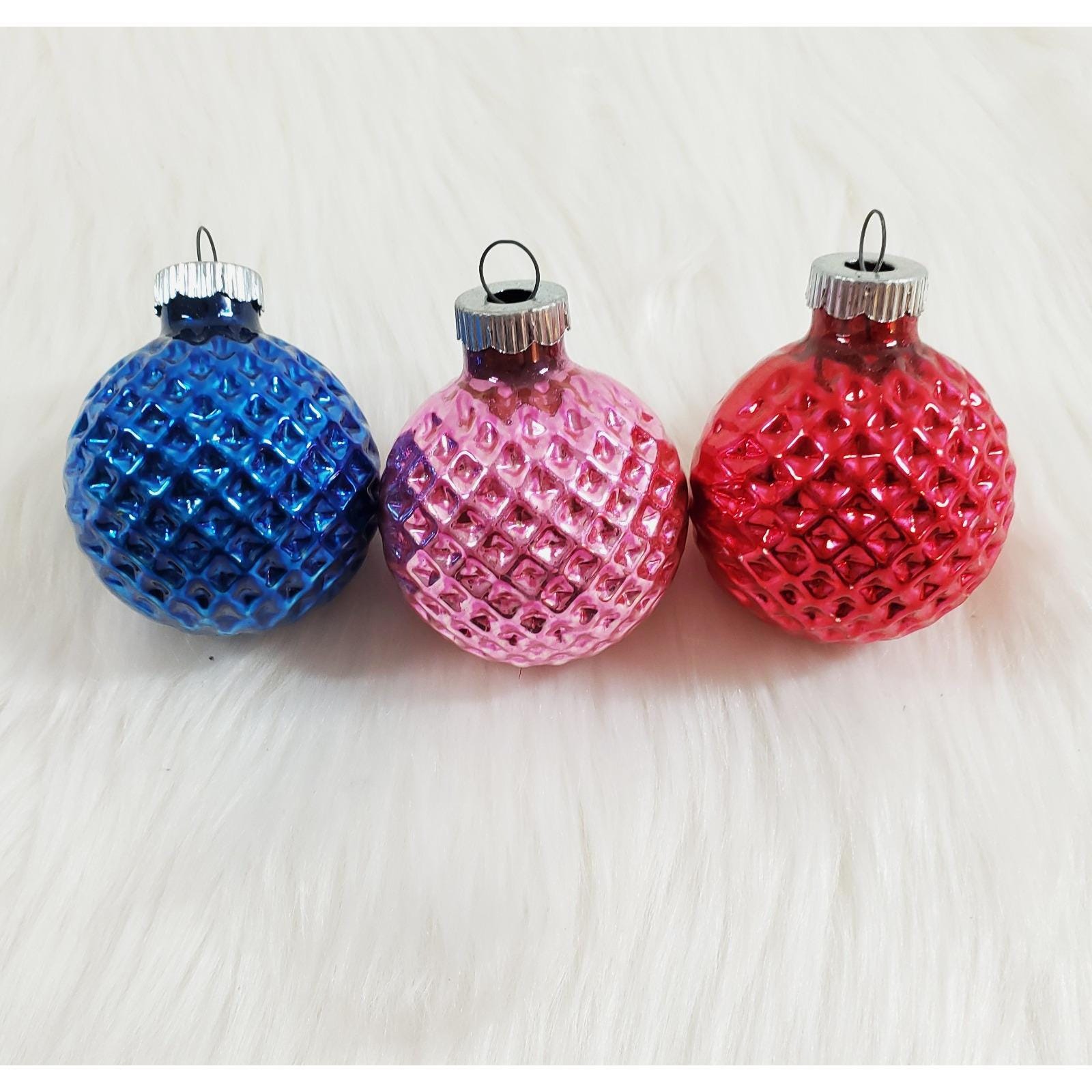 3 Vintage Shiny Brite Pink Blue Bumpy Waffle Golf Ball Glass Christmas Ornaments