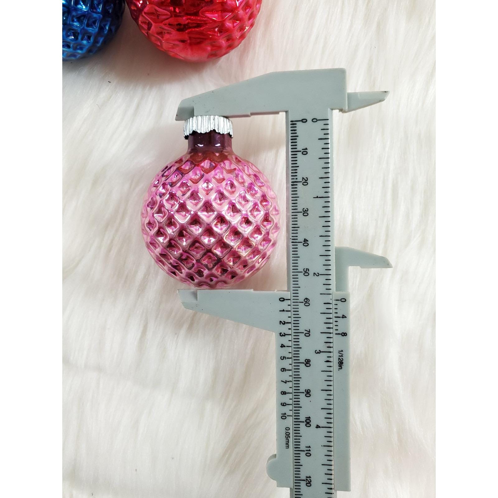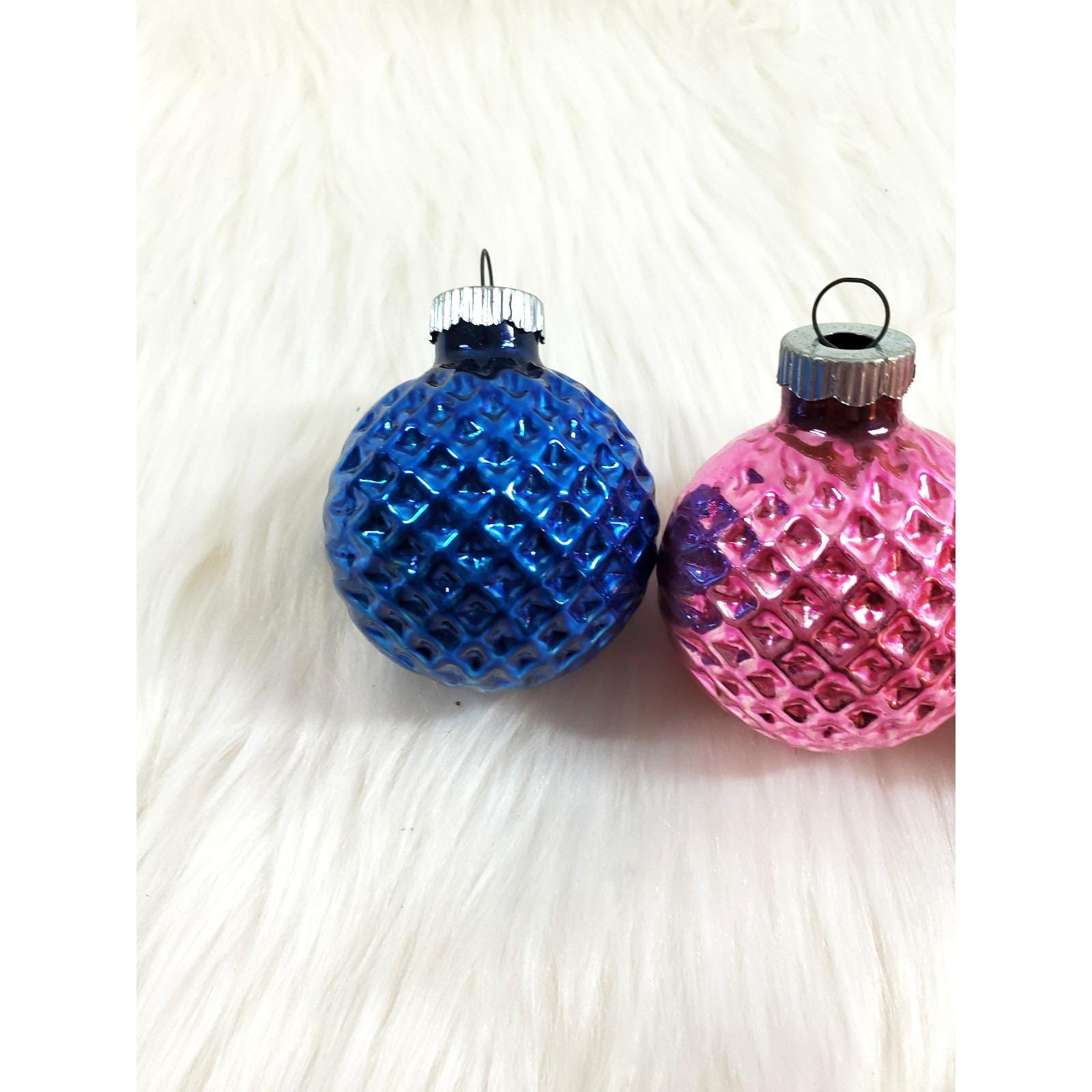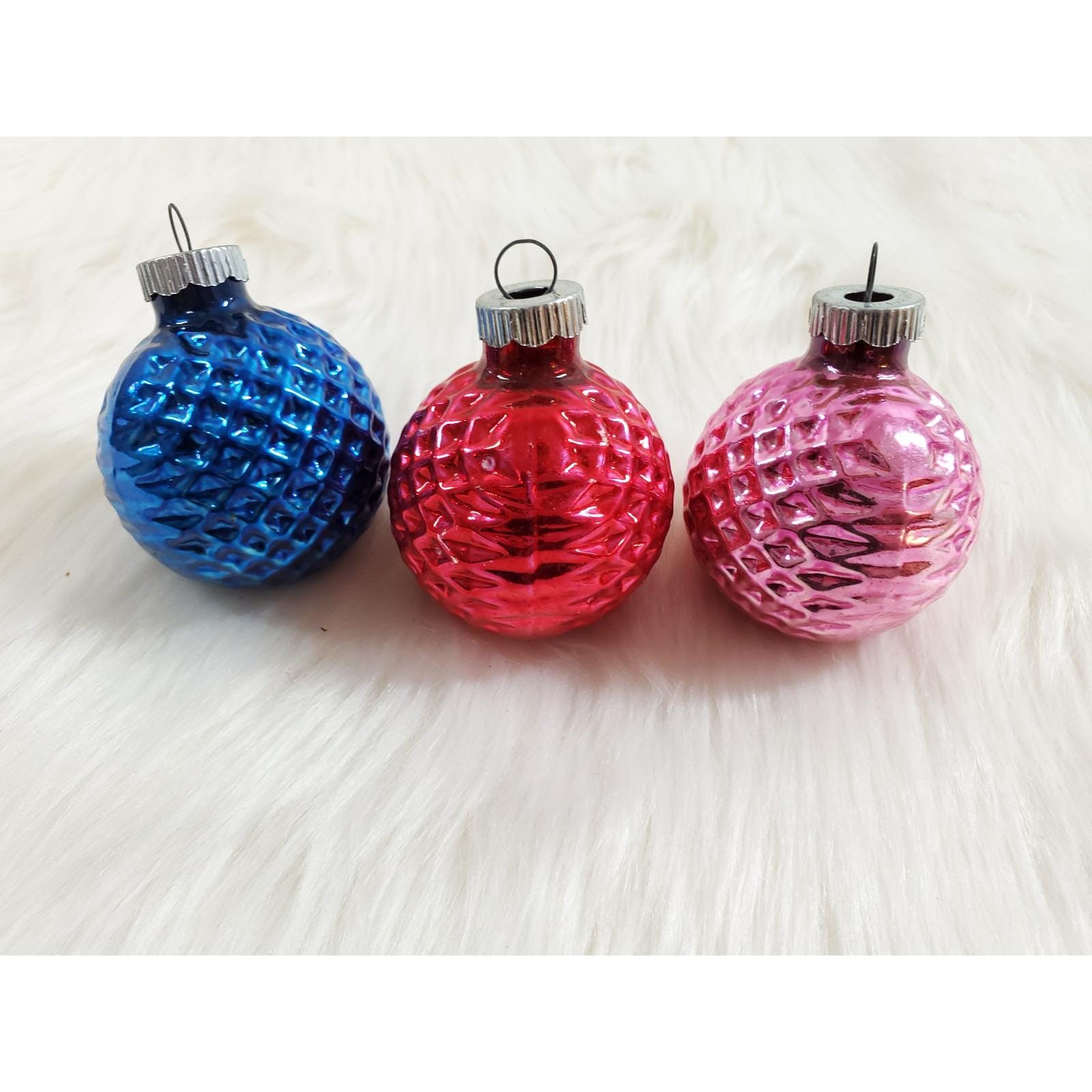 3 Vintage Shiny Brite Pink Blue Bumpy Waffle Golf Ball Glass Christmas Ornaments