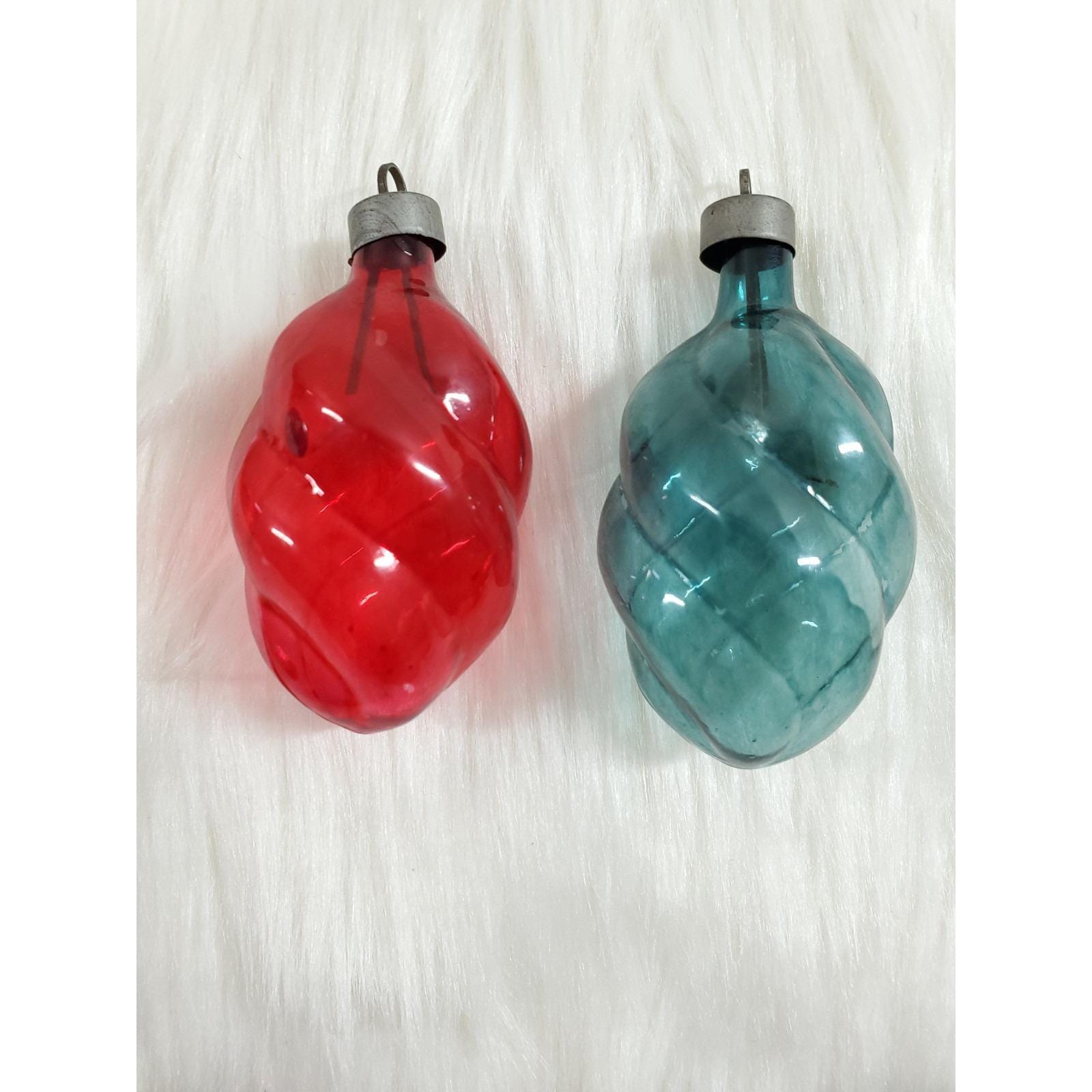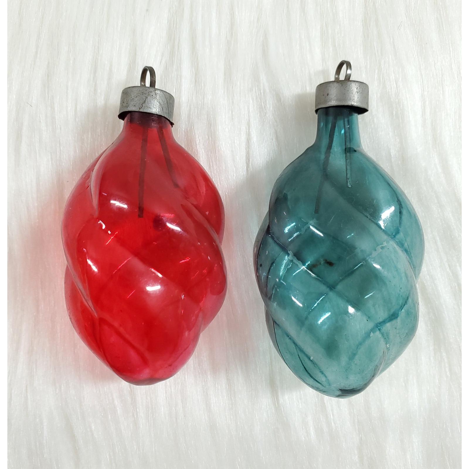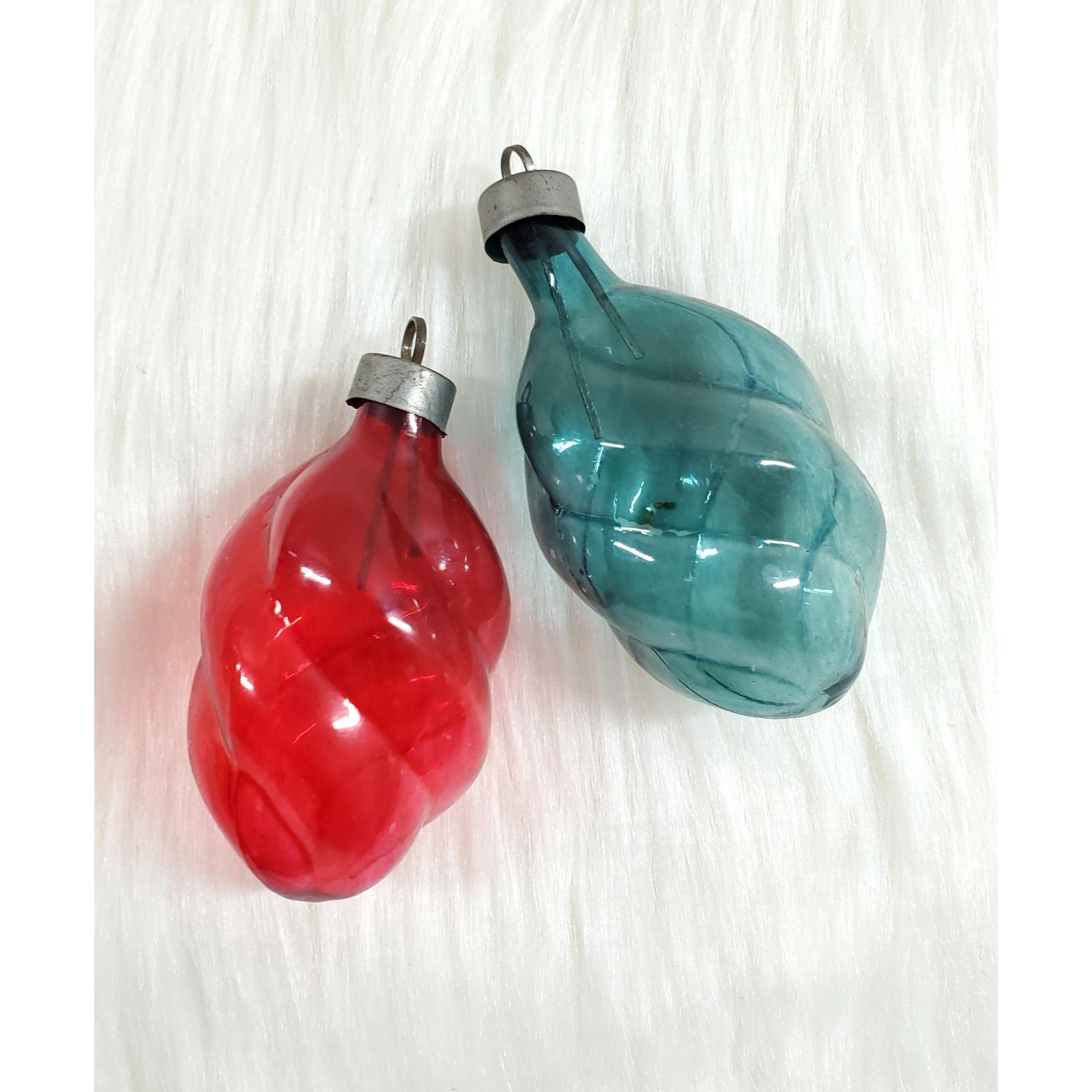 2 Vintage WWII Premier Unsilvered Swirl Twist Glass Feather Christmas Ornaments