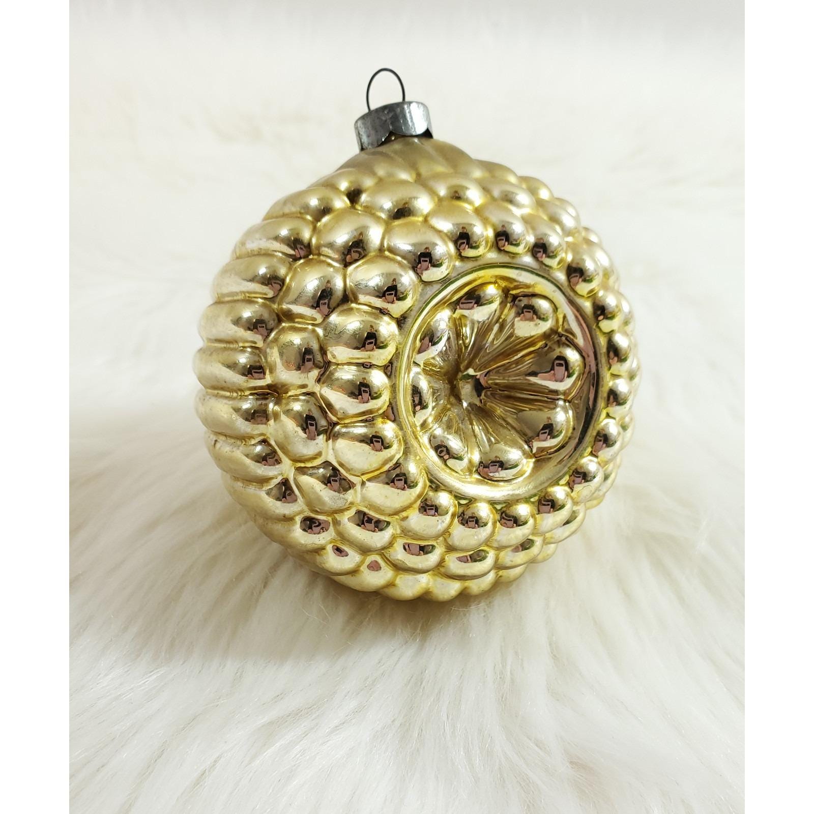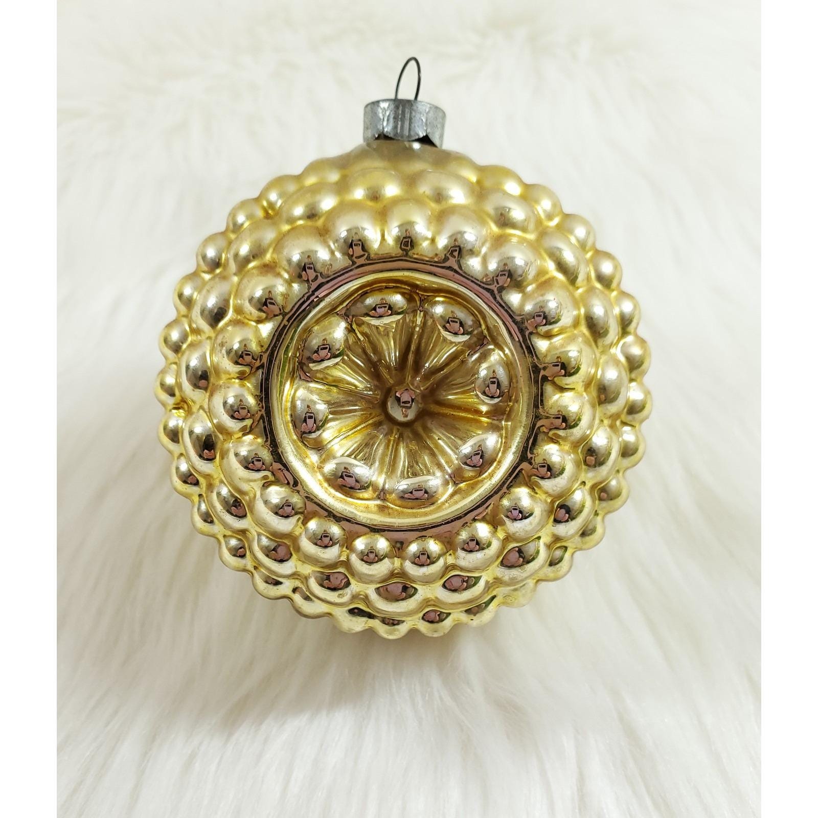 Vintage Shiny Brite JUMBO Bumpy Double Indent Gold Glass Christmas Ornament 3.25