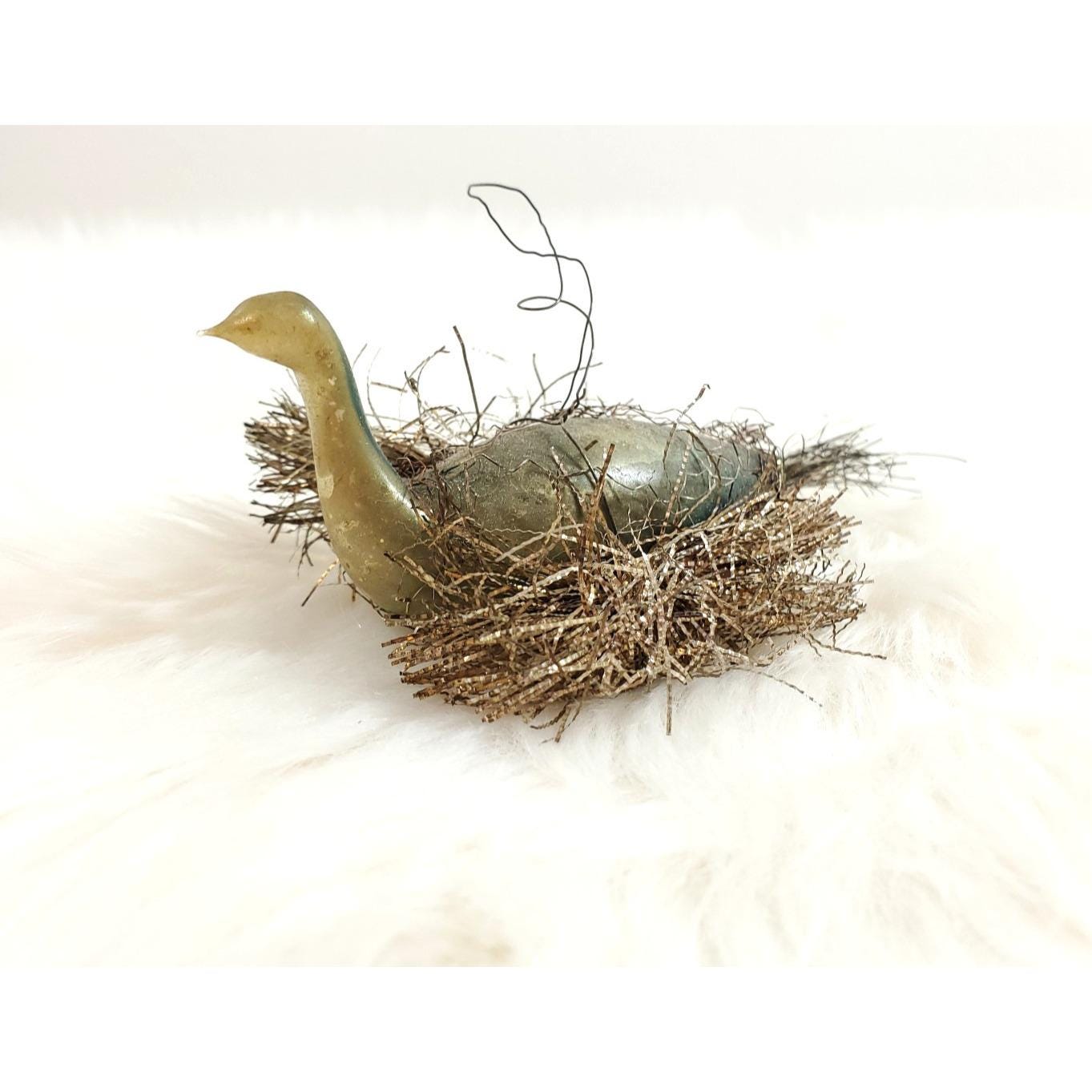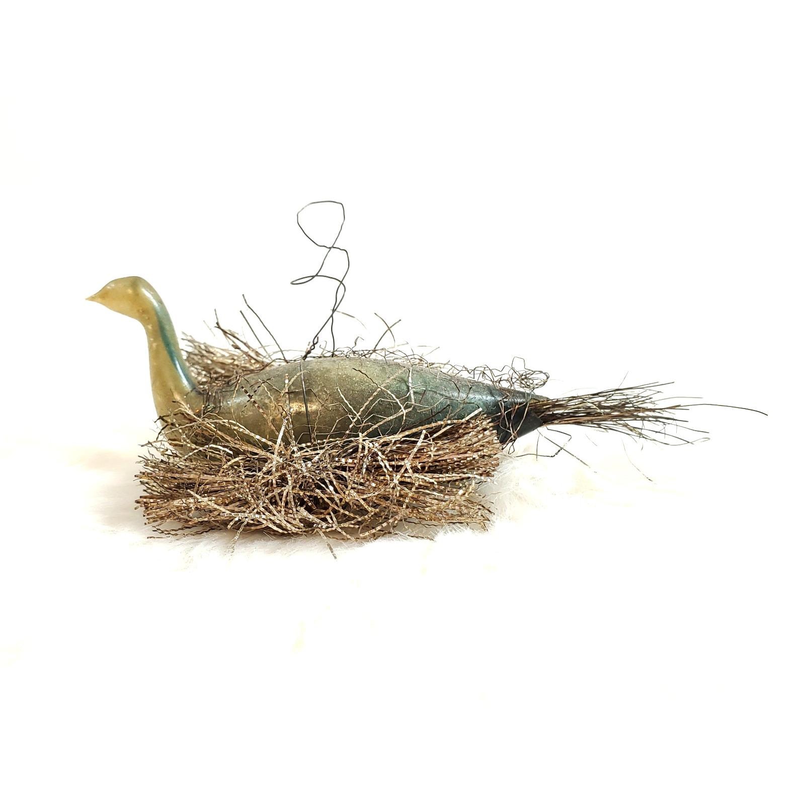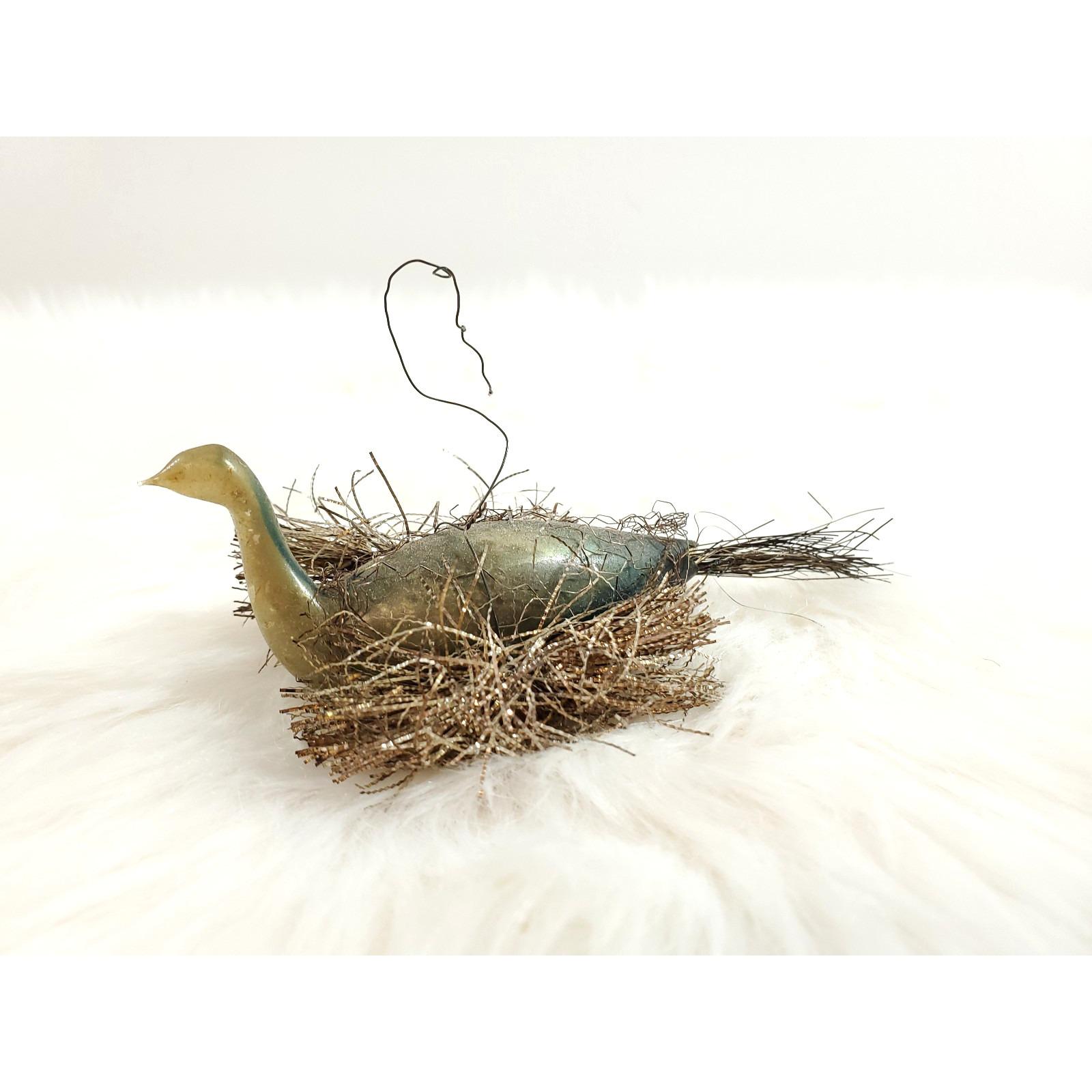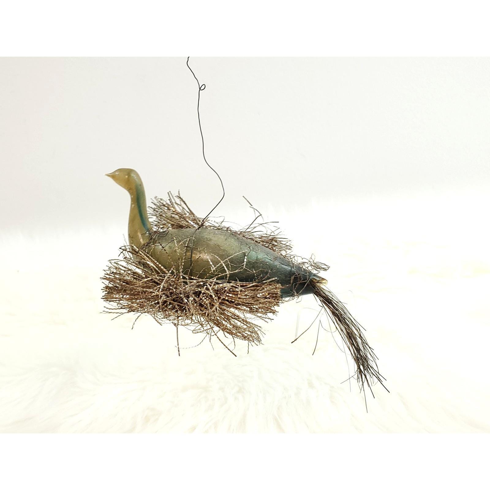 Antique German Wire Tinsel Wrapped Figural Glass Swan Bird Ornament