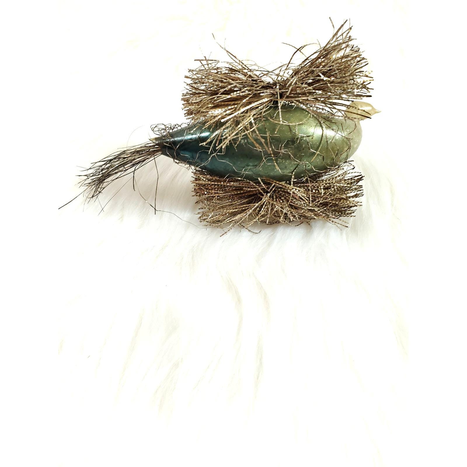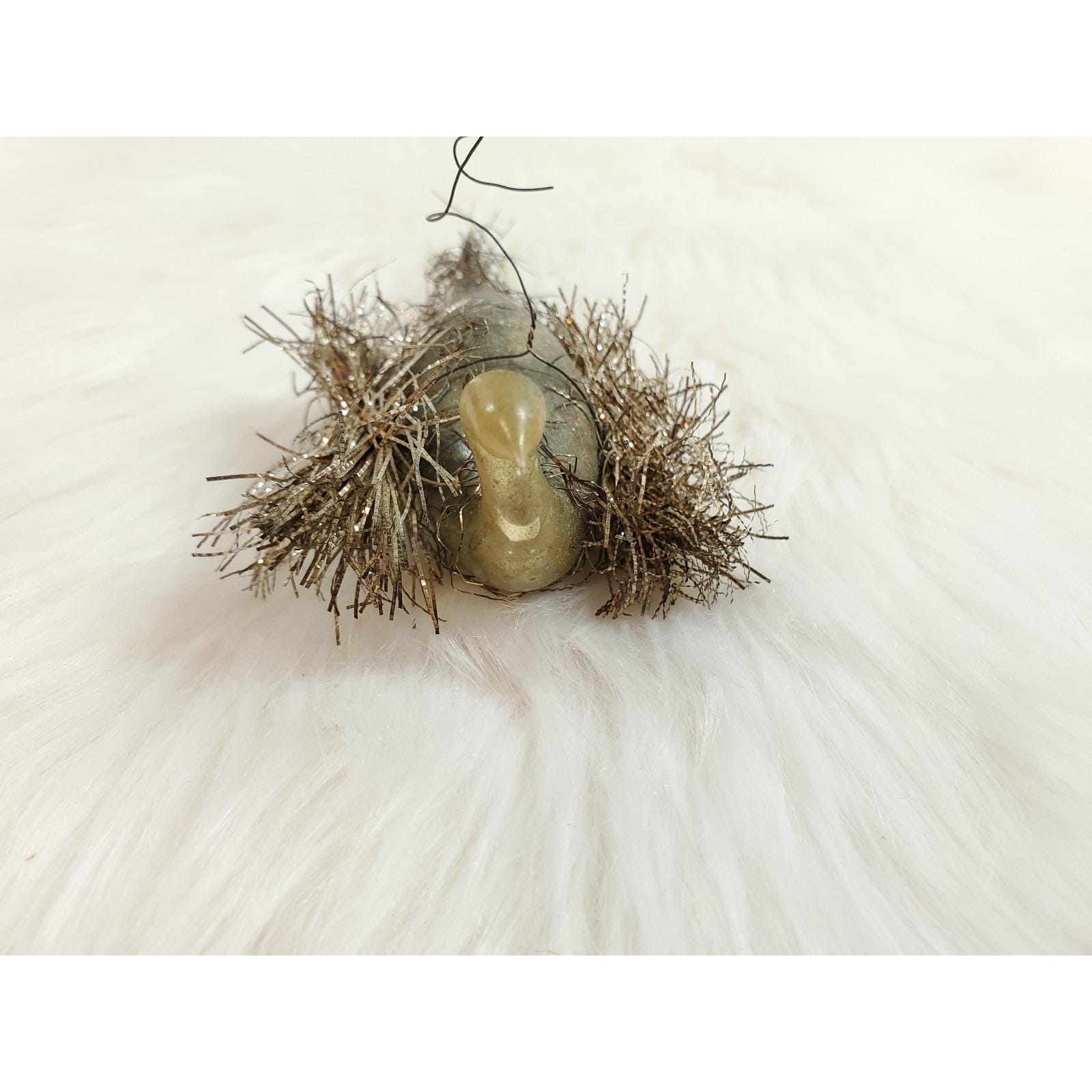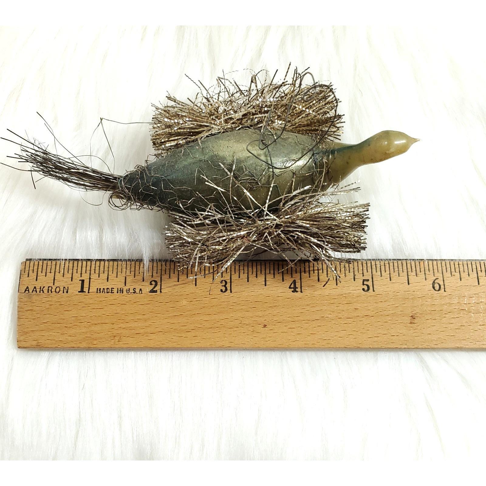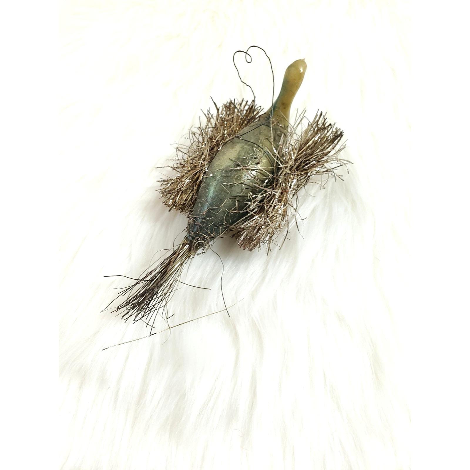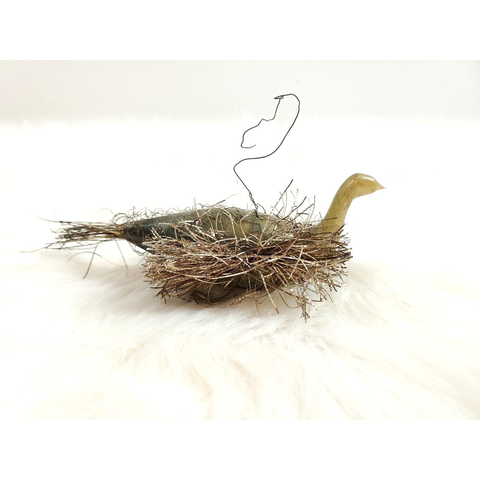 Antique German Wire Tinsel Wrapped Figural Glass Swan Bird Ornament
