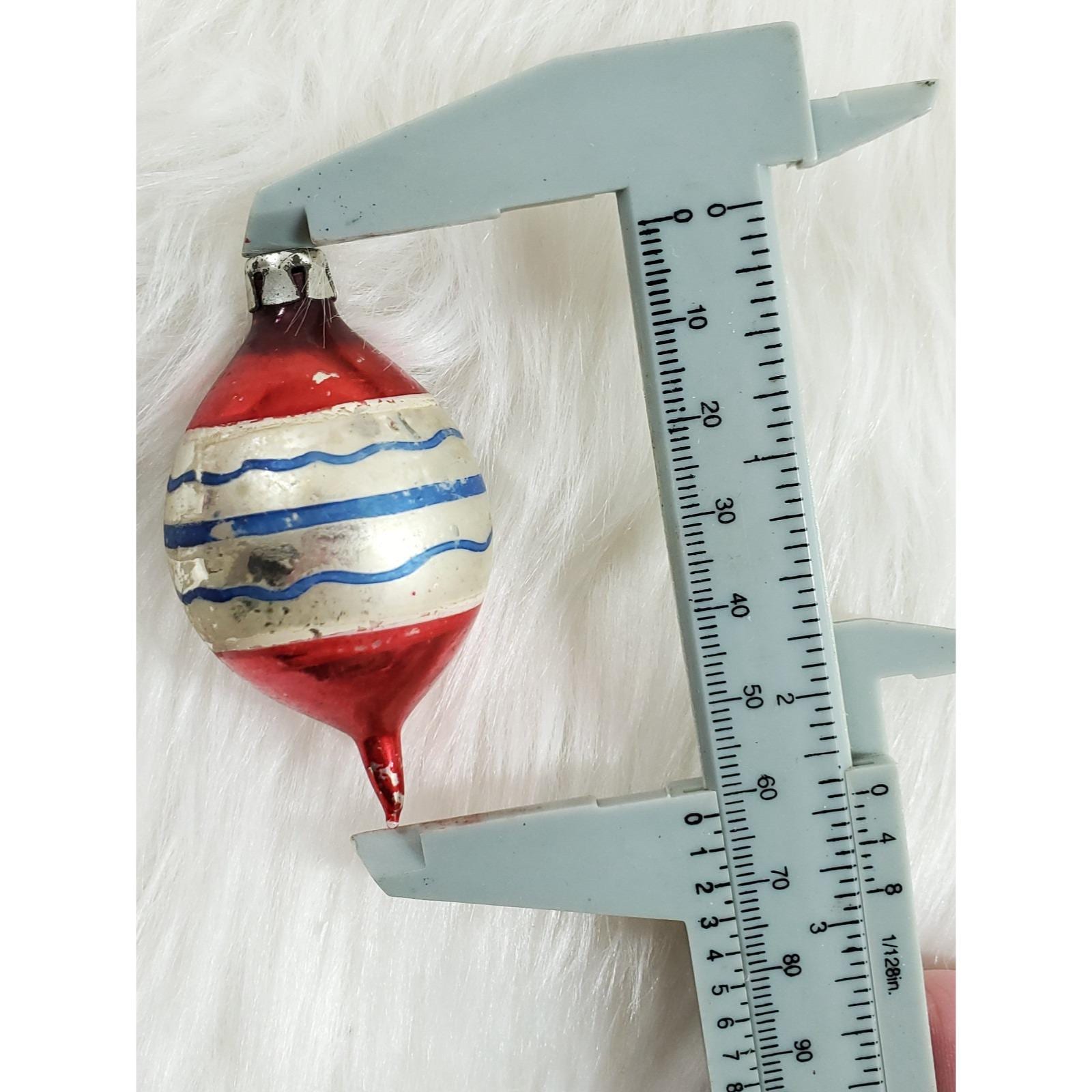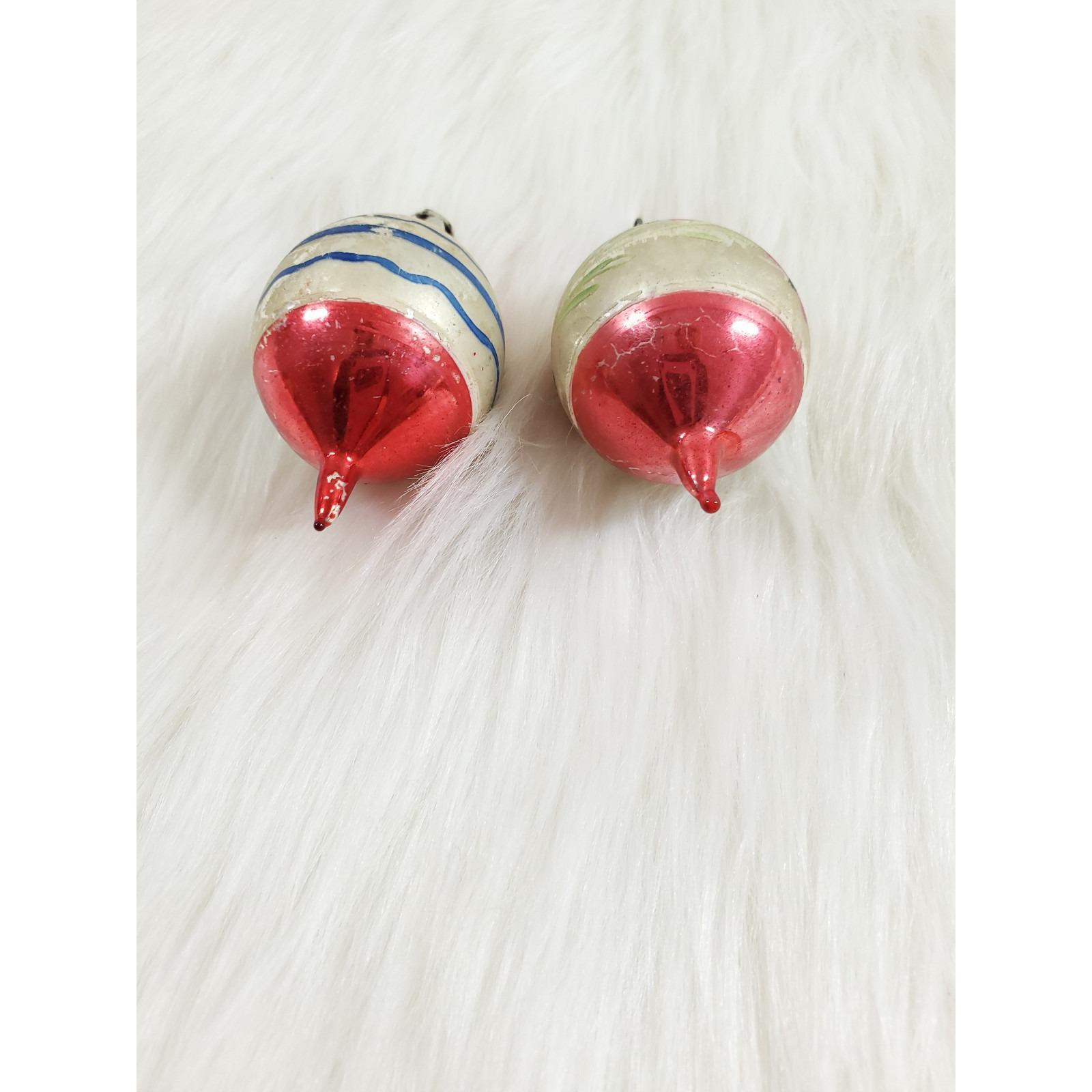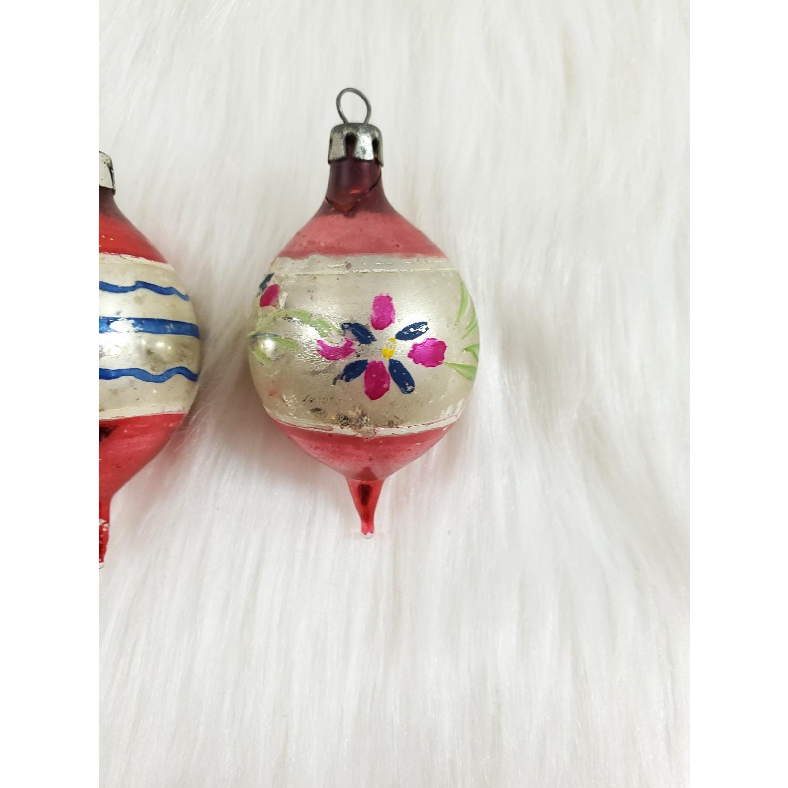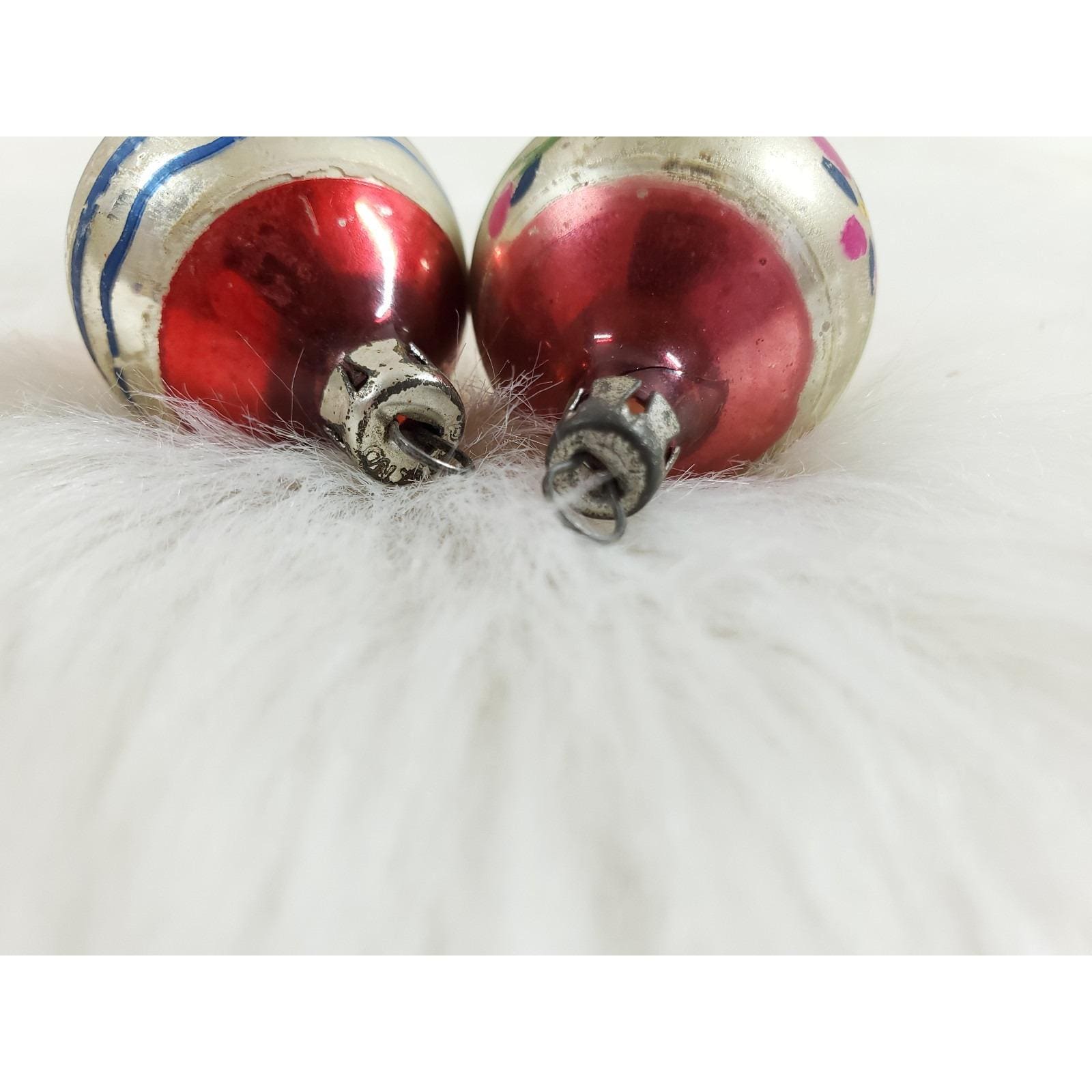 2 Vintage Poland Feather Tree Teardrop 2" Hand Painted Glass Christmas Ornaments