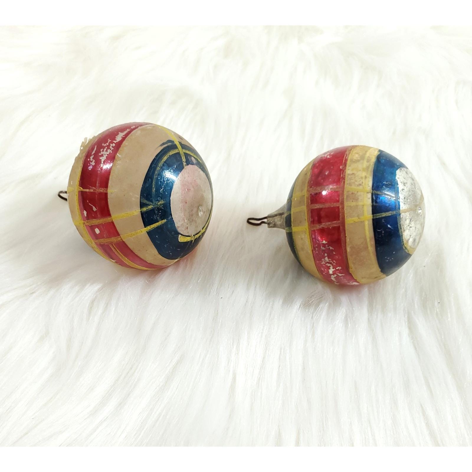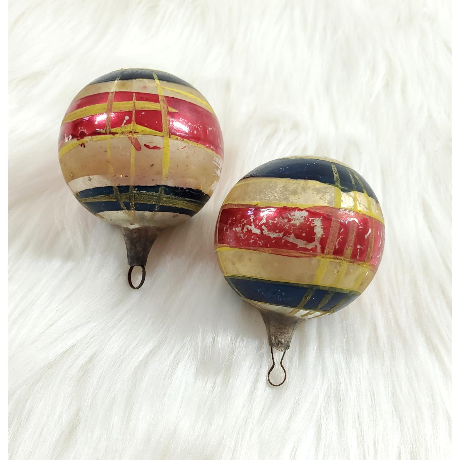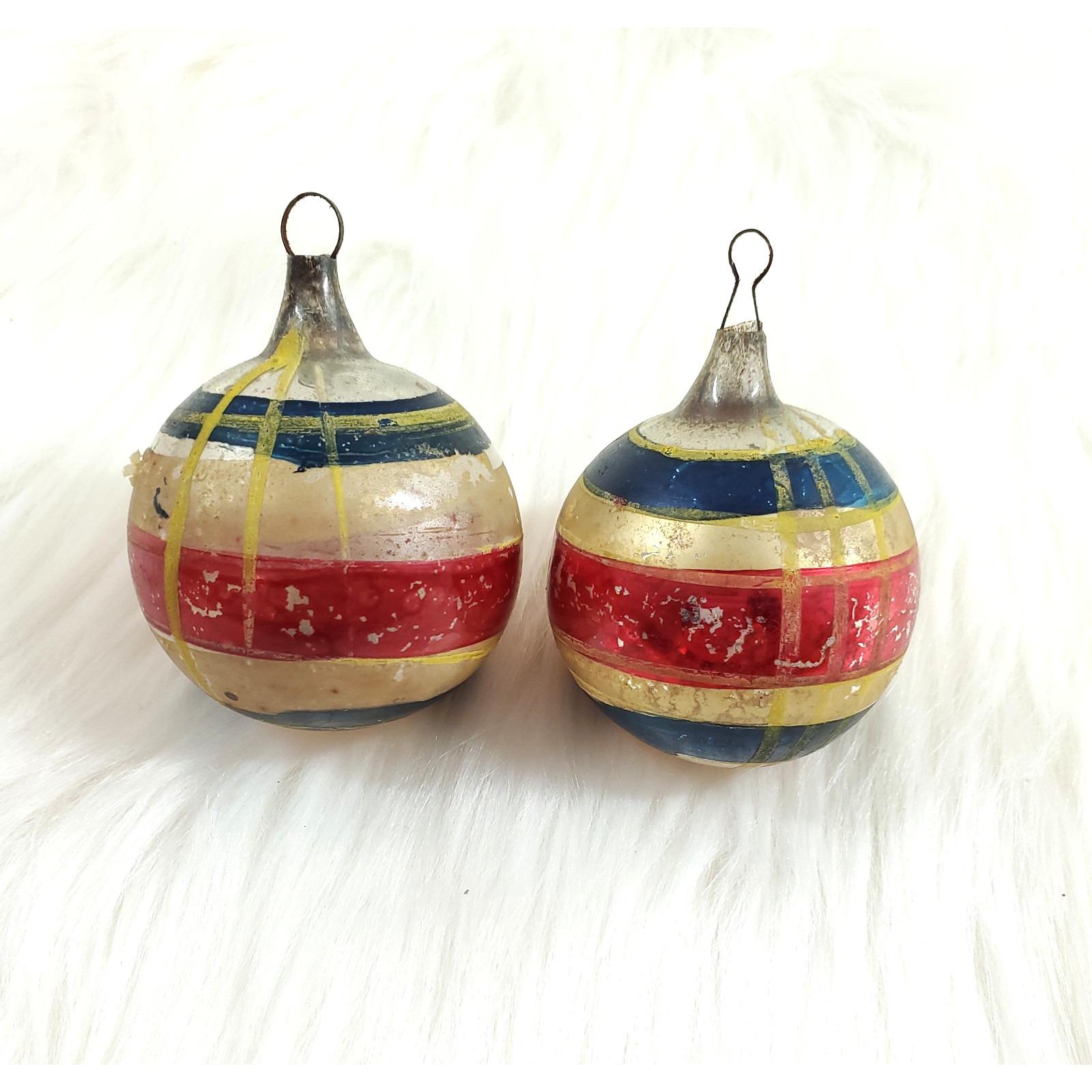2 Antique Patriotic RWB Red Blue Glass Ball Christmas Feather Tree Ornaments 2"