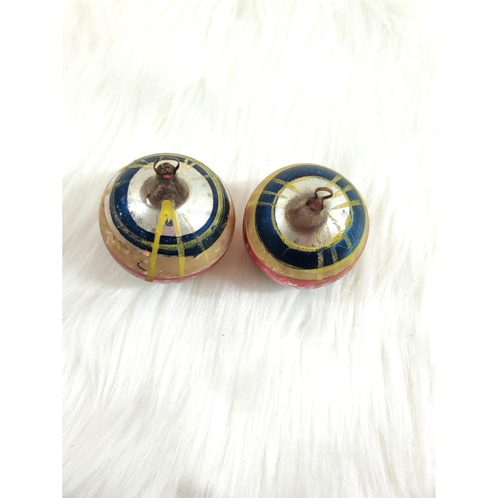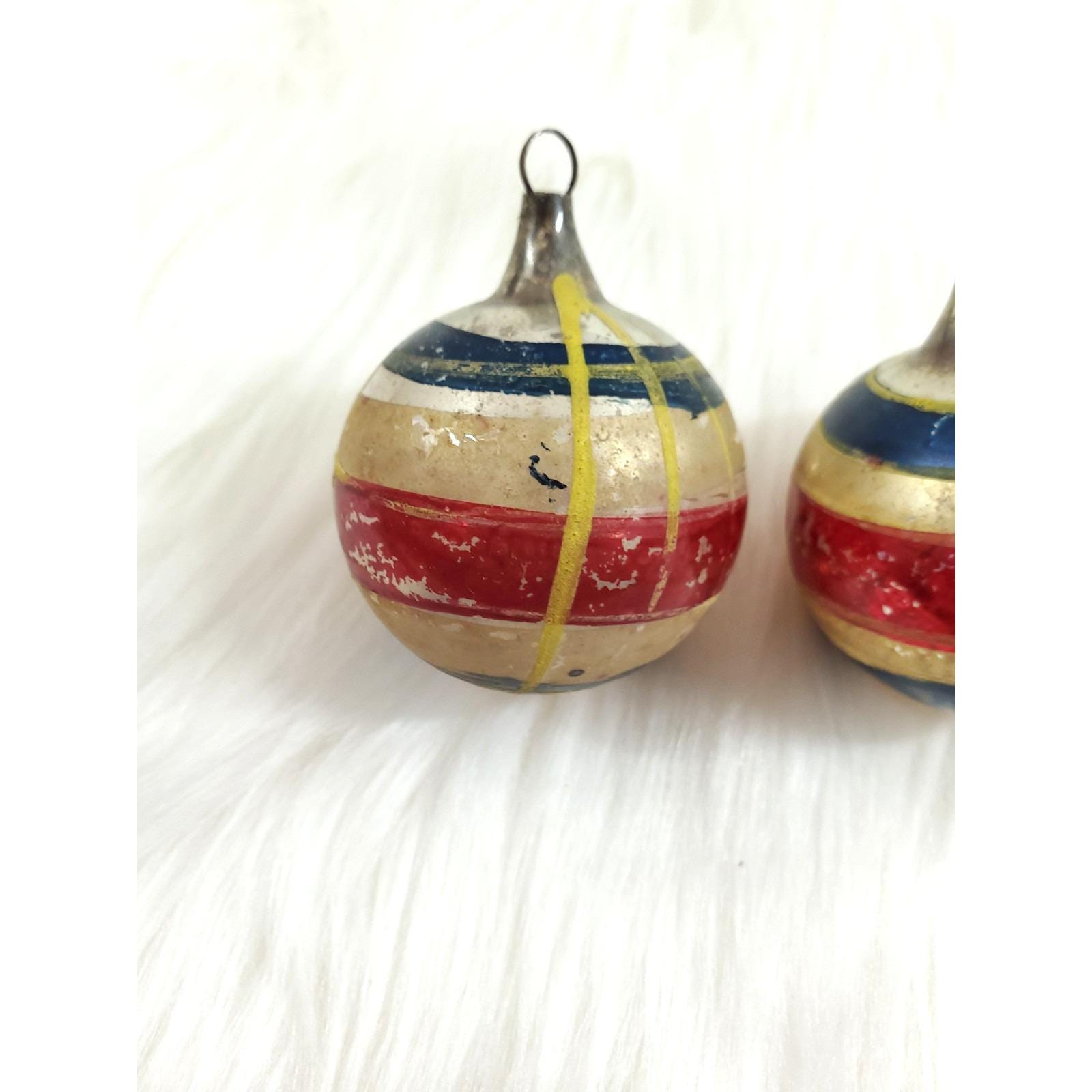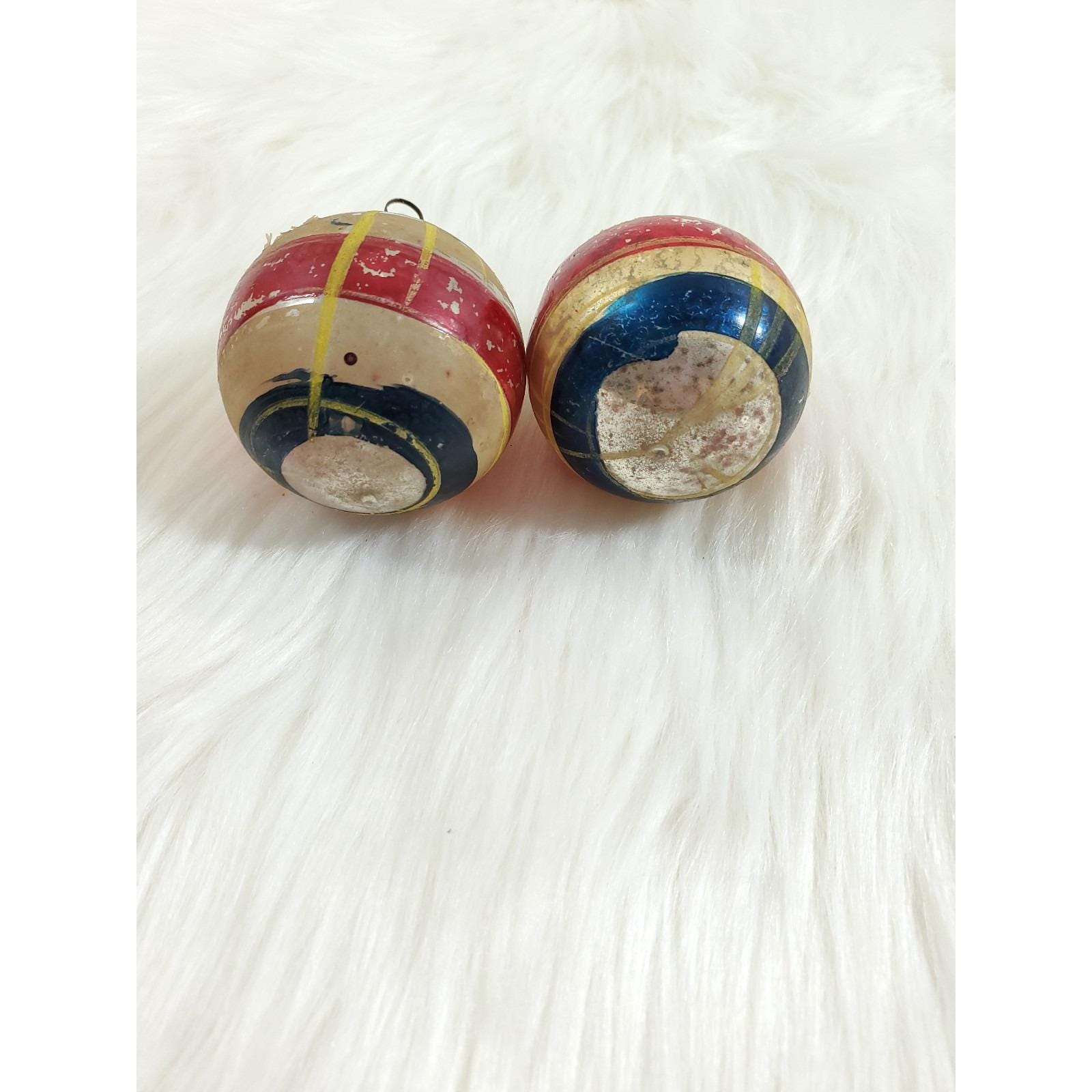 2 Antique Patriotic RWB Red Blue Glass Ball Christmas Feather Tree Ornaments 2"