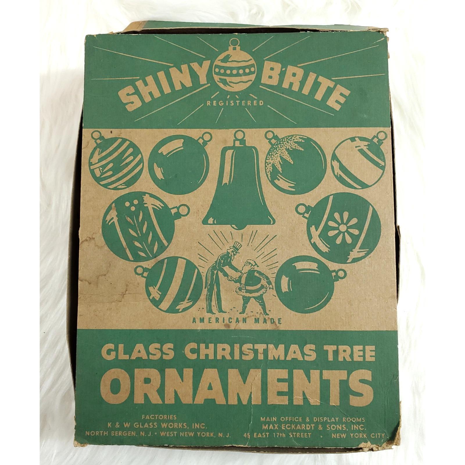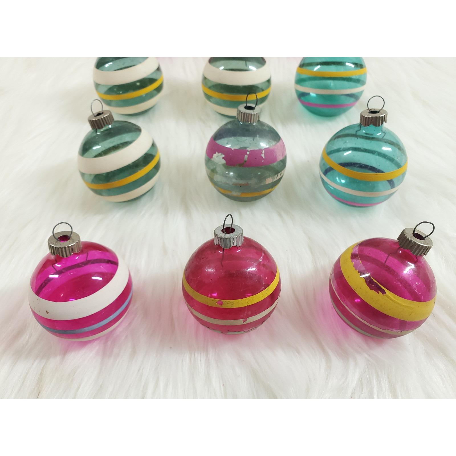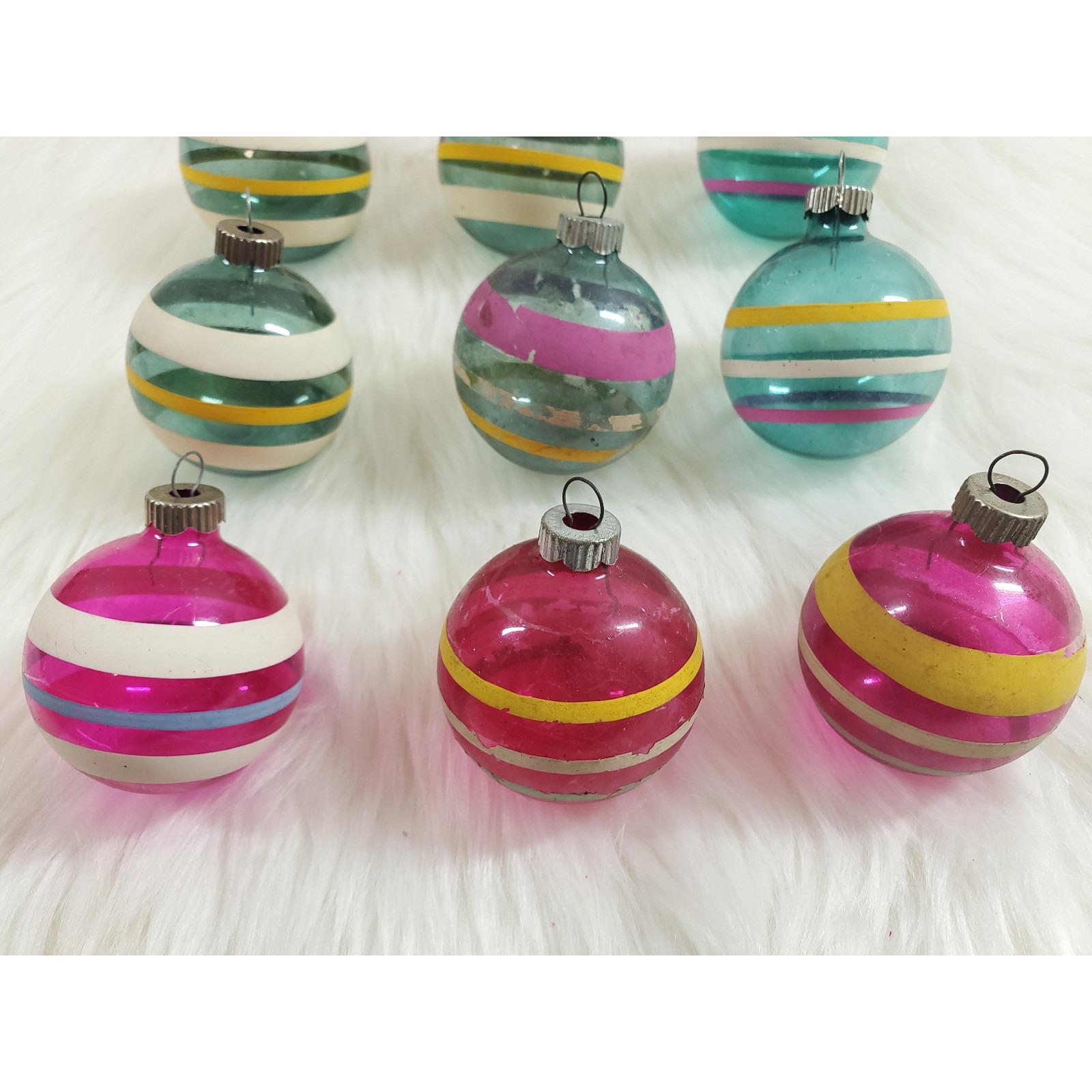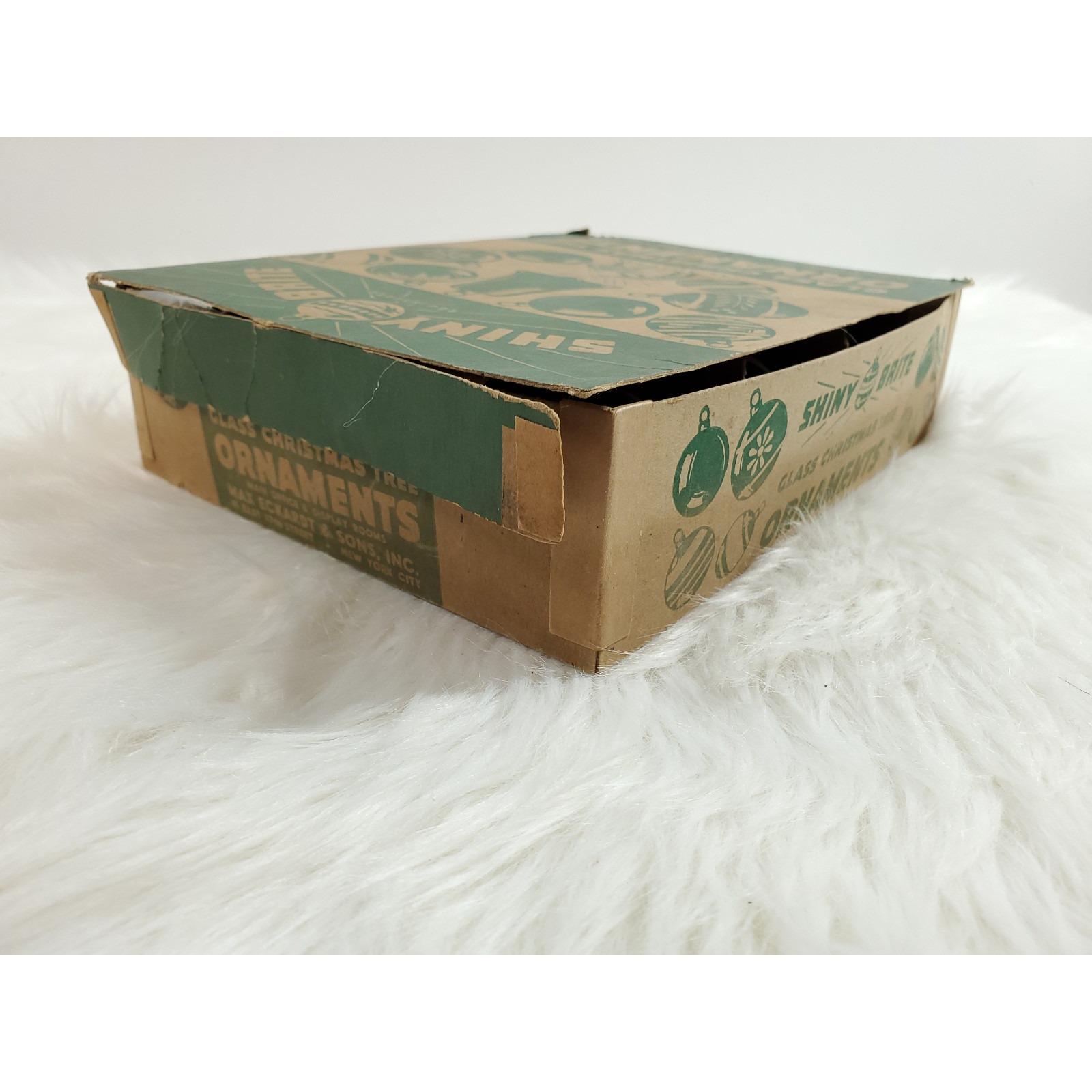 Vintage WWII Era Unsilvered Shiny Brite Stripe Glass Christmas Ornaments Box 12