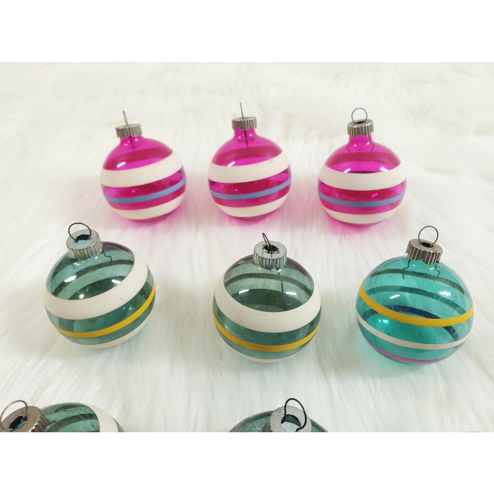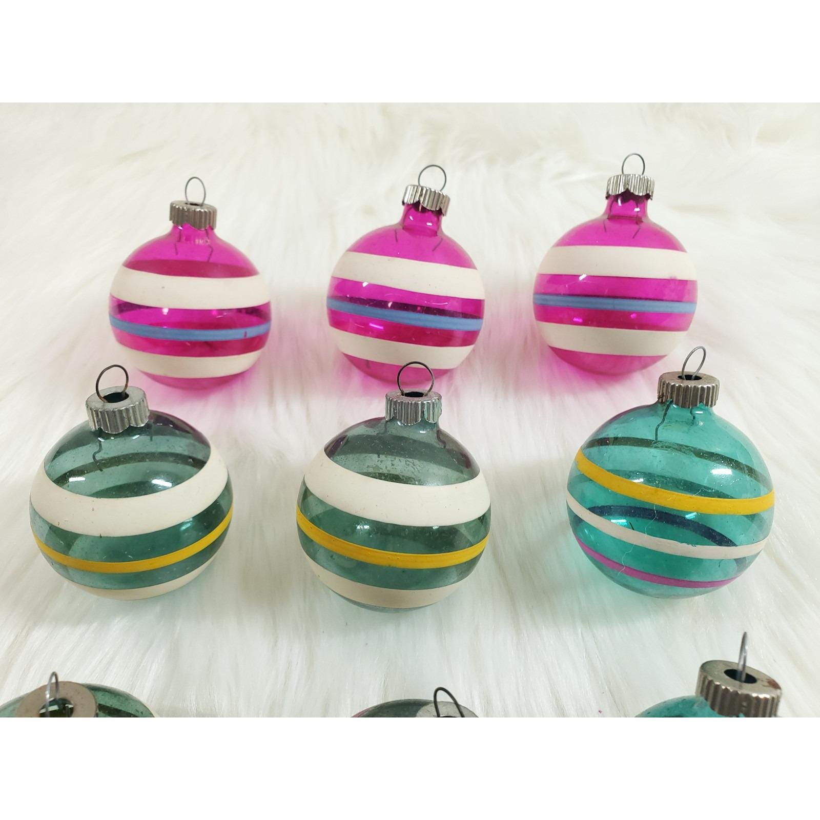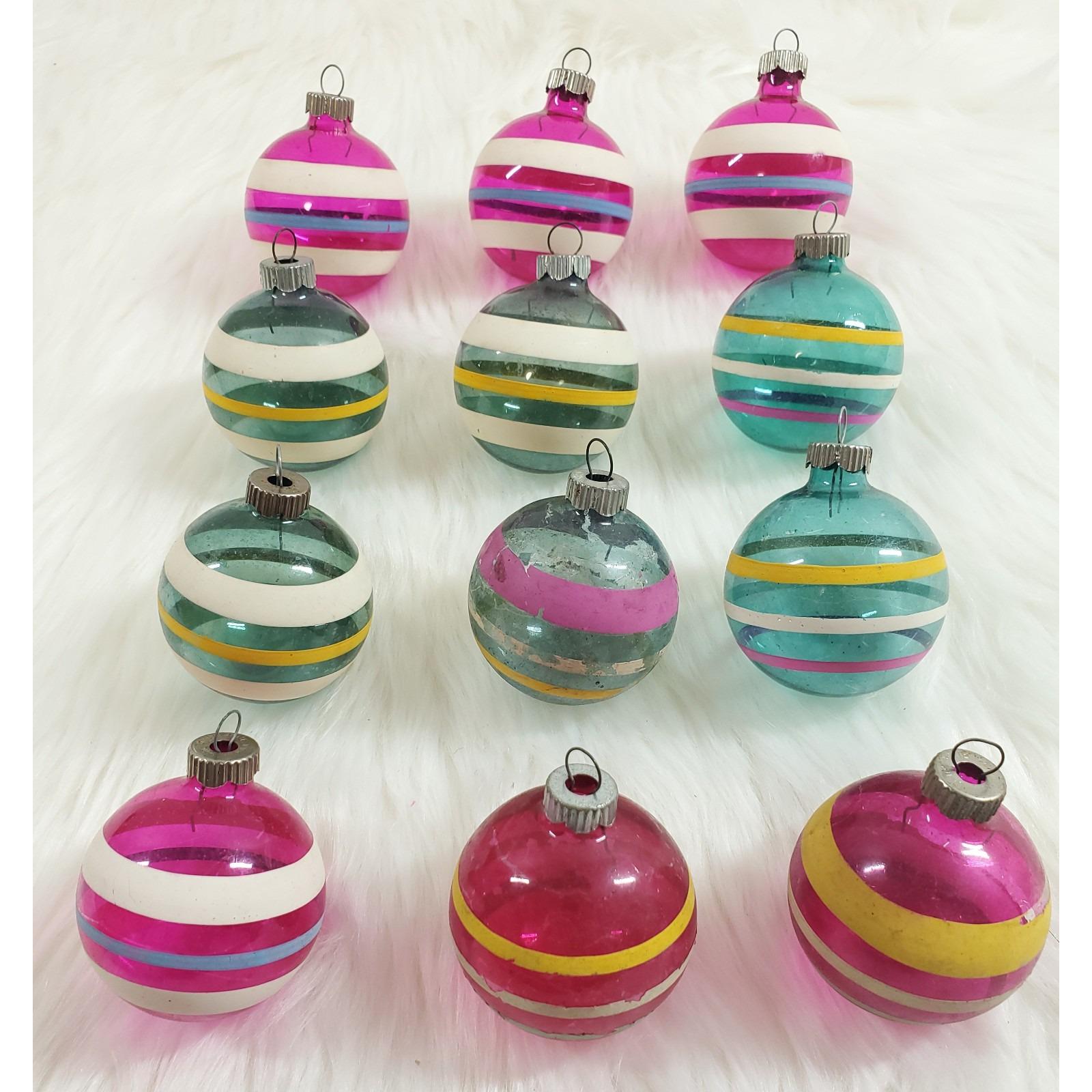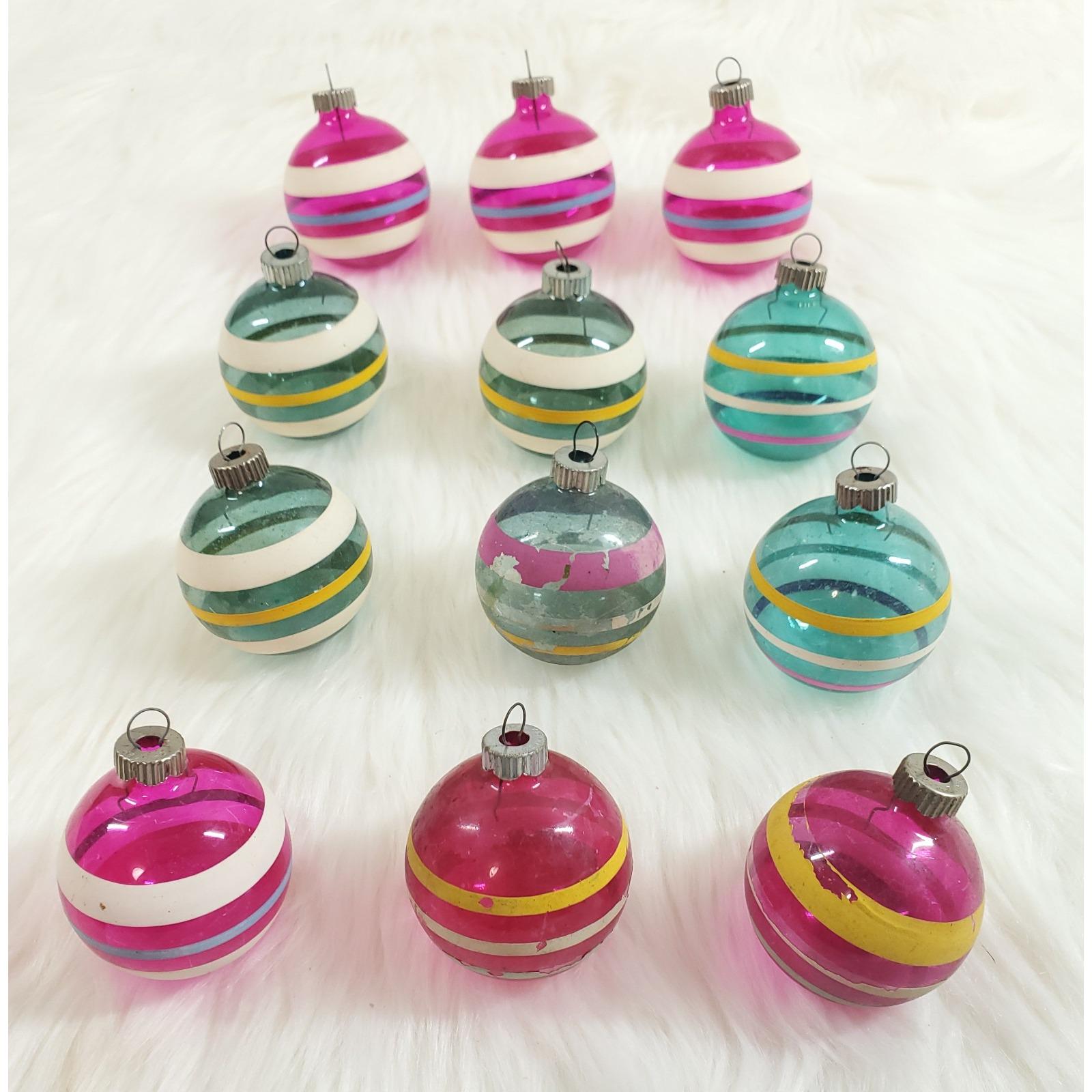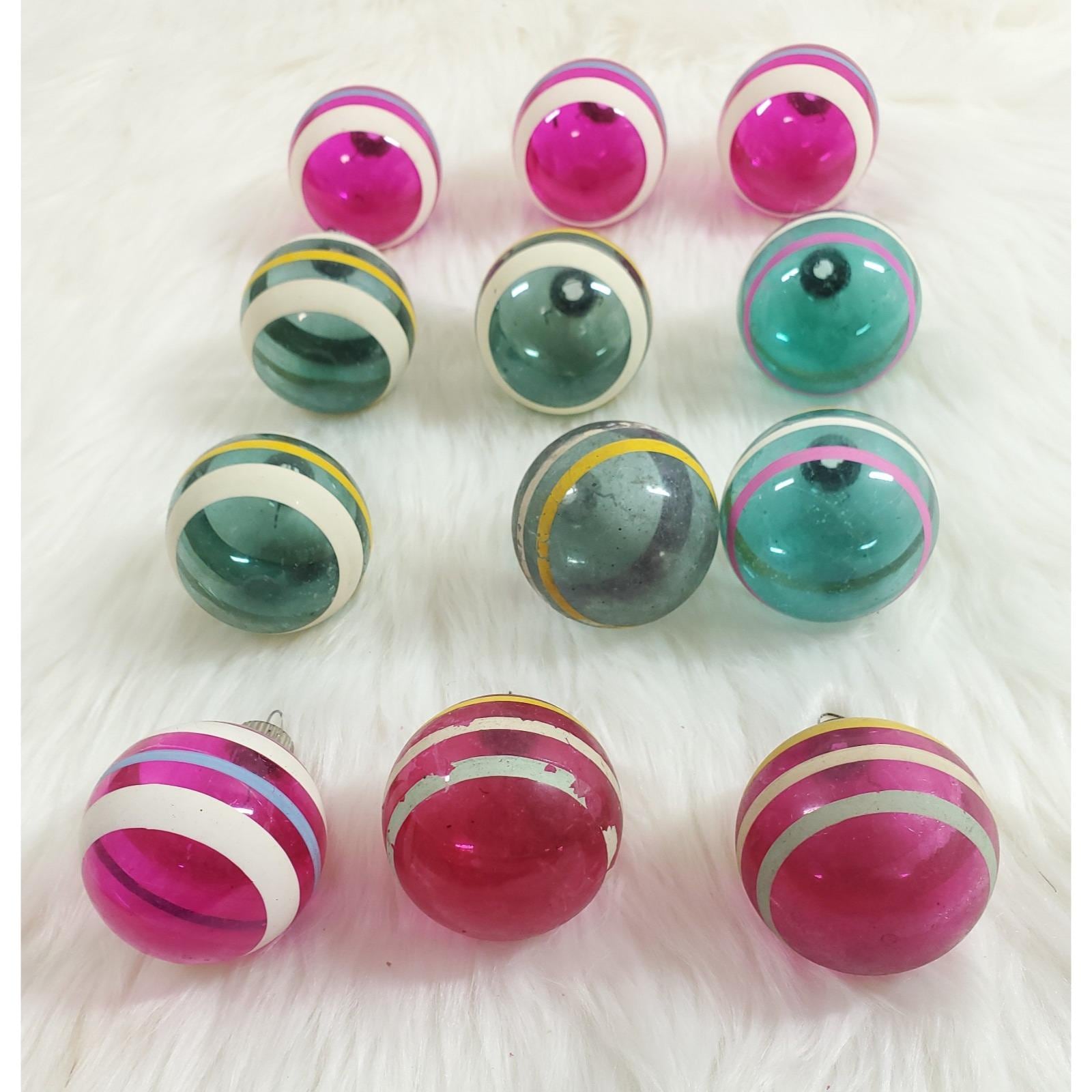 What a great find to add to your Christmas collection - a set of twelve un-silvered Shiny Brite stripe ornaments!