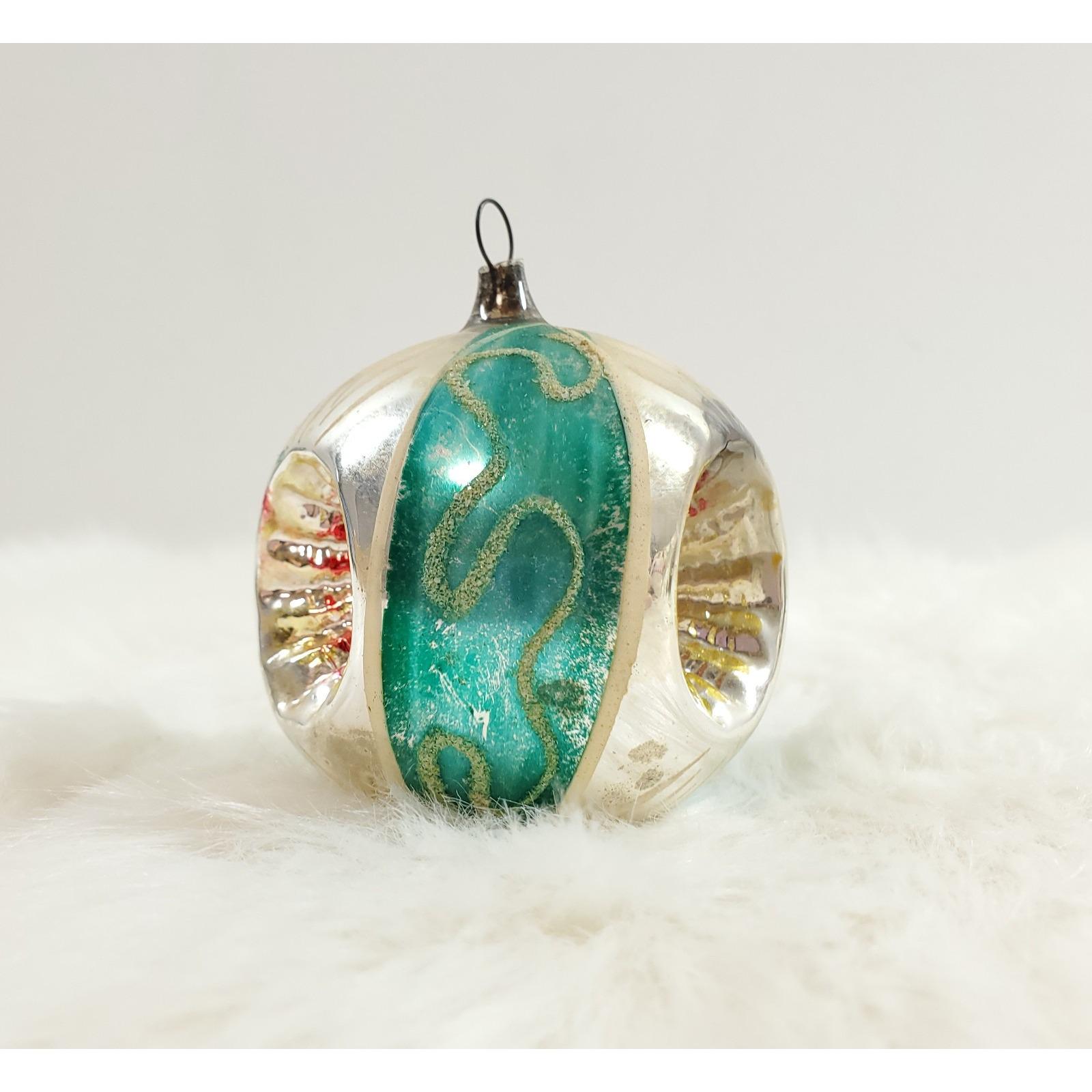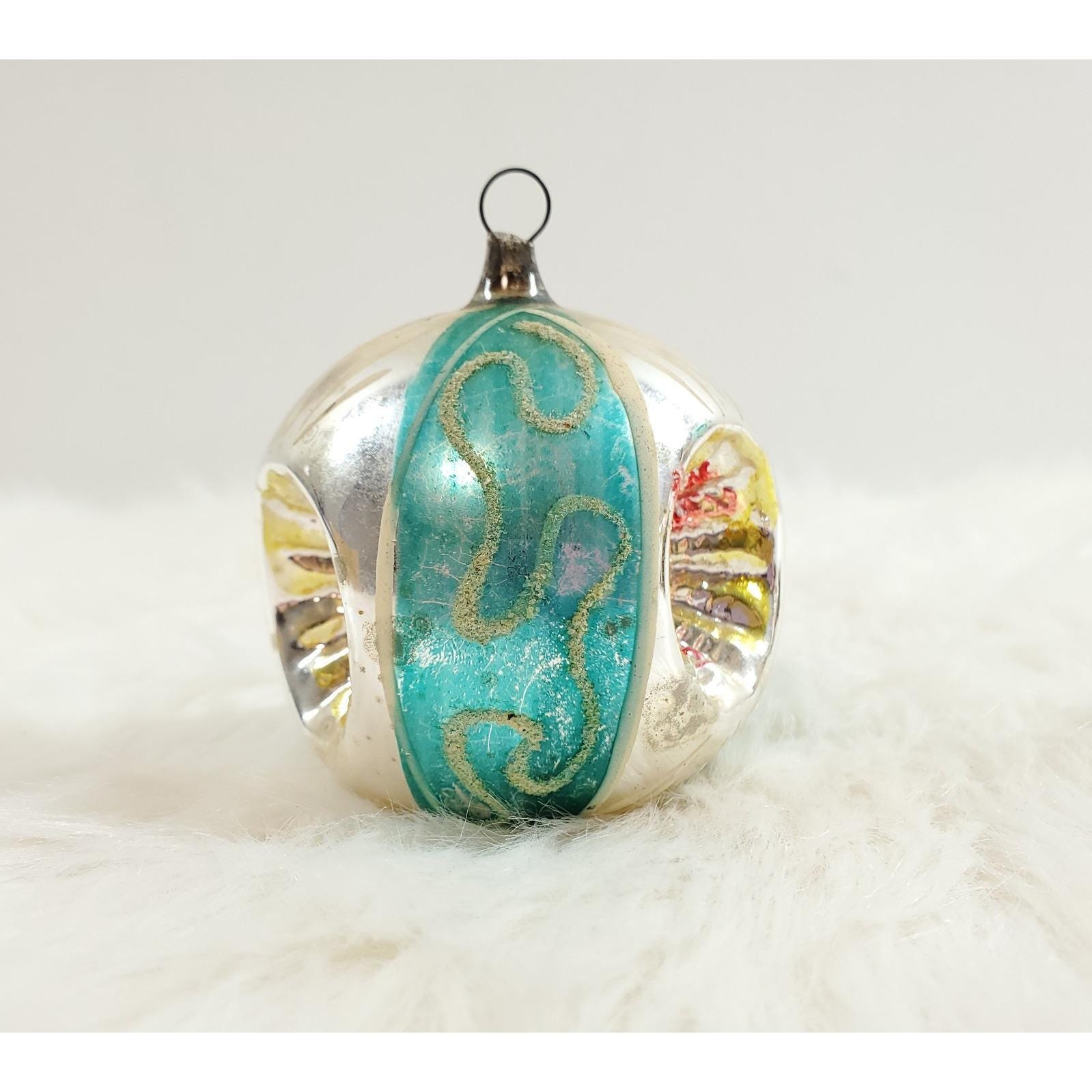 Antique German Triple Indent Mica Mercury Glass Vintage Christmas Ornament 3"