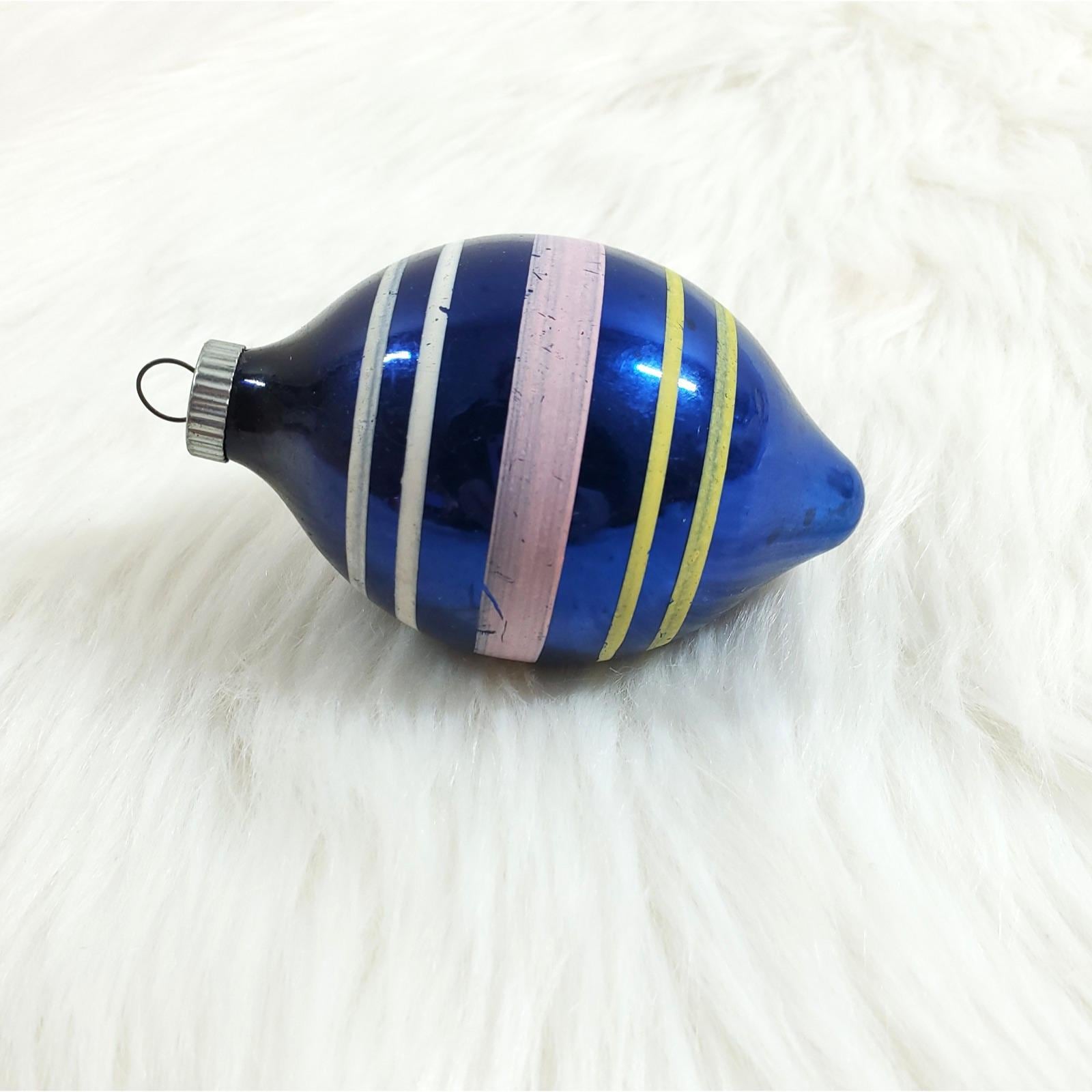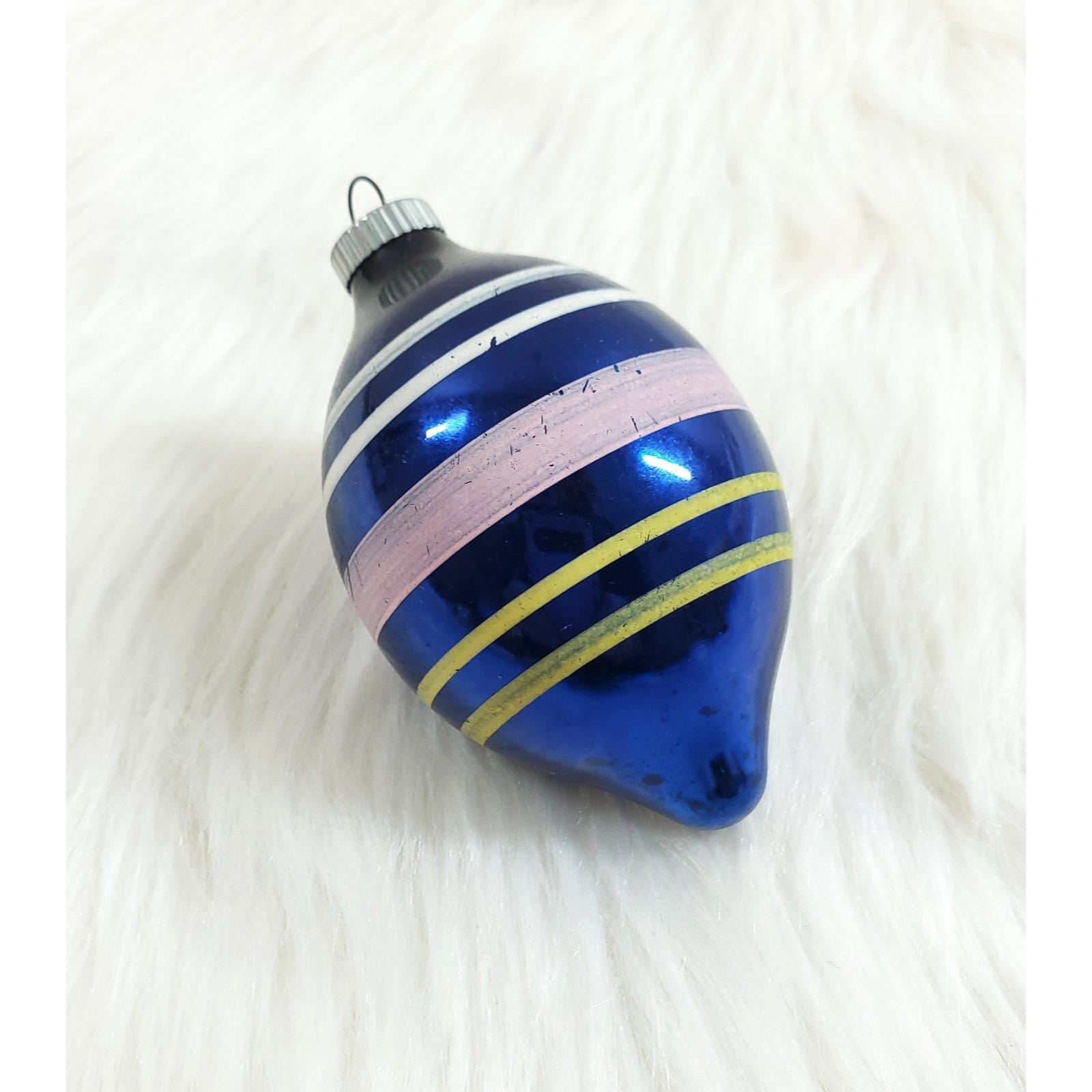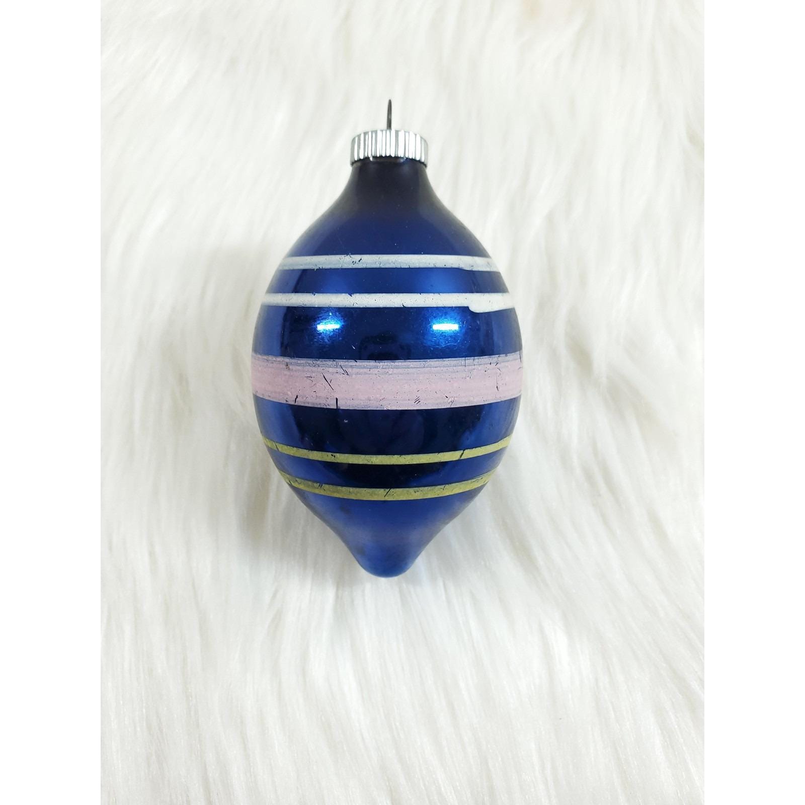 Vintage Shiny Brite USA Blue Pink Stripe Bulb Teardrop Mercury Glass Ornament