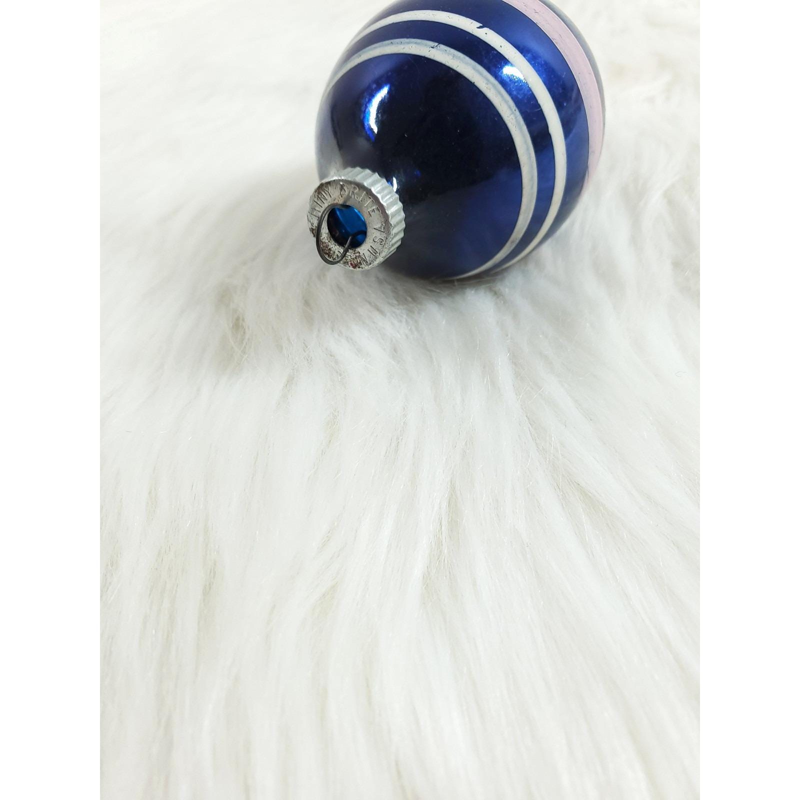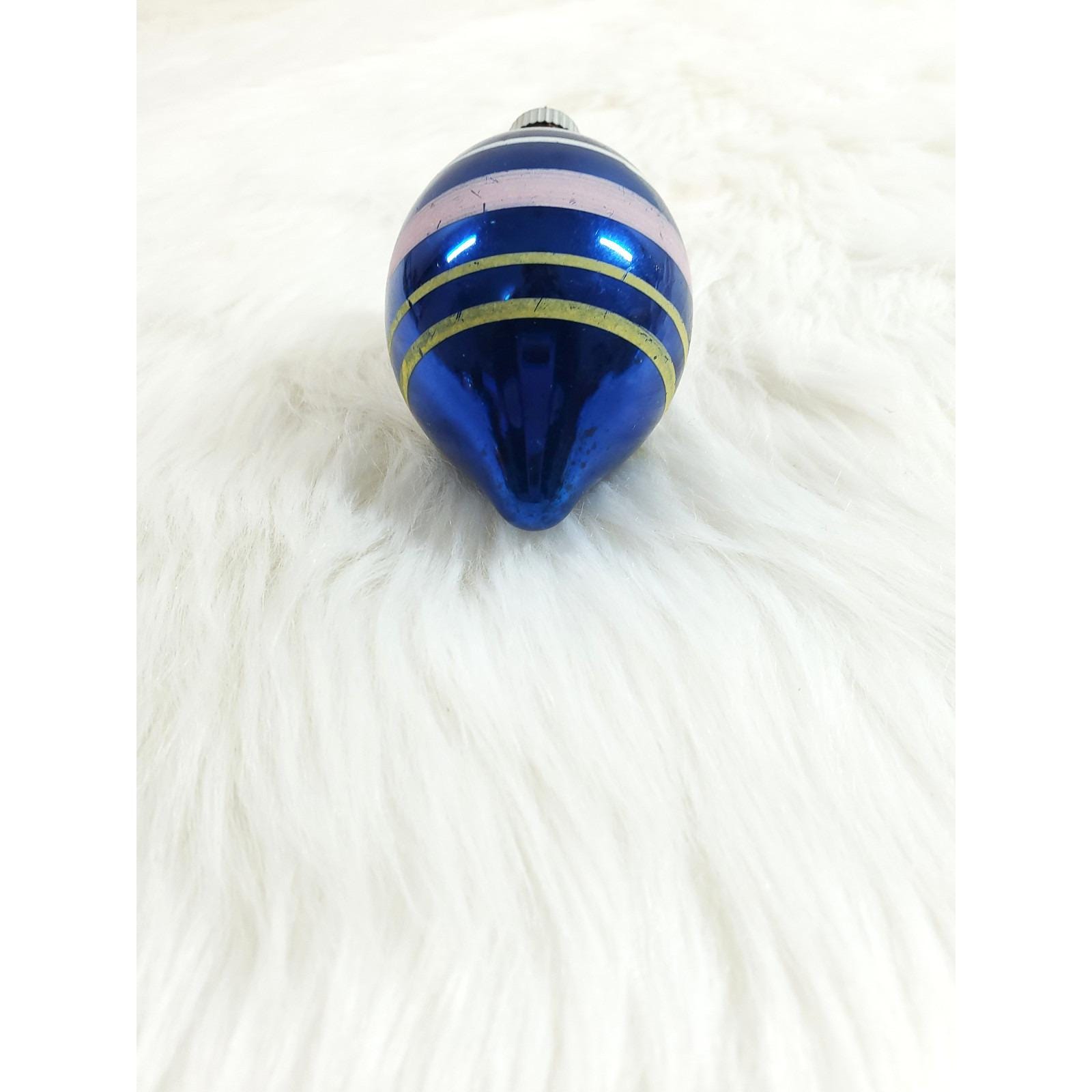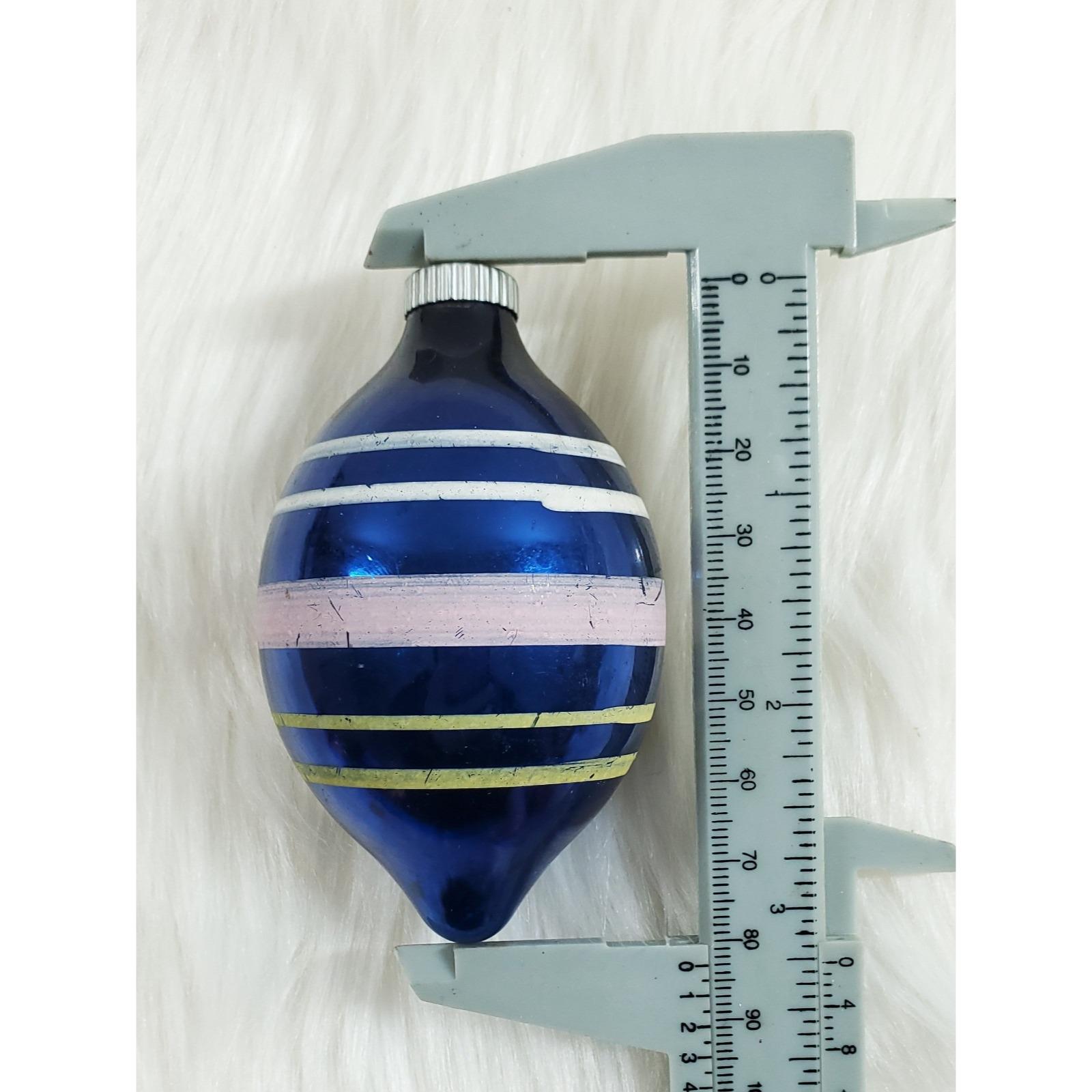Vintage Shiny Brite USA Blue Pink Stripe Bulb Teardrop Mercury Glass Ornament