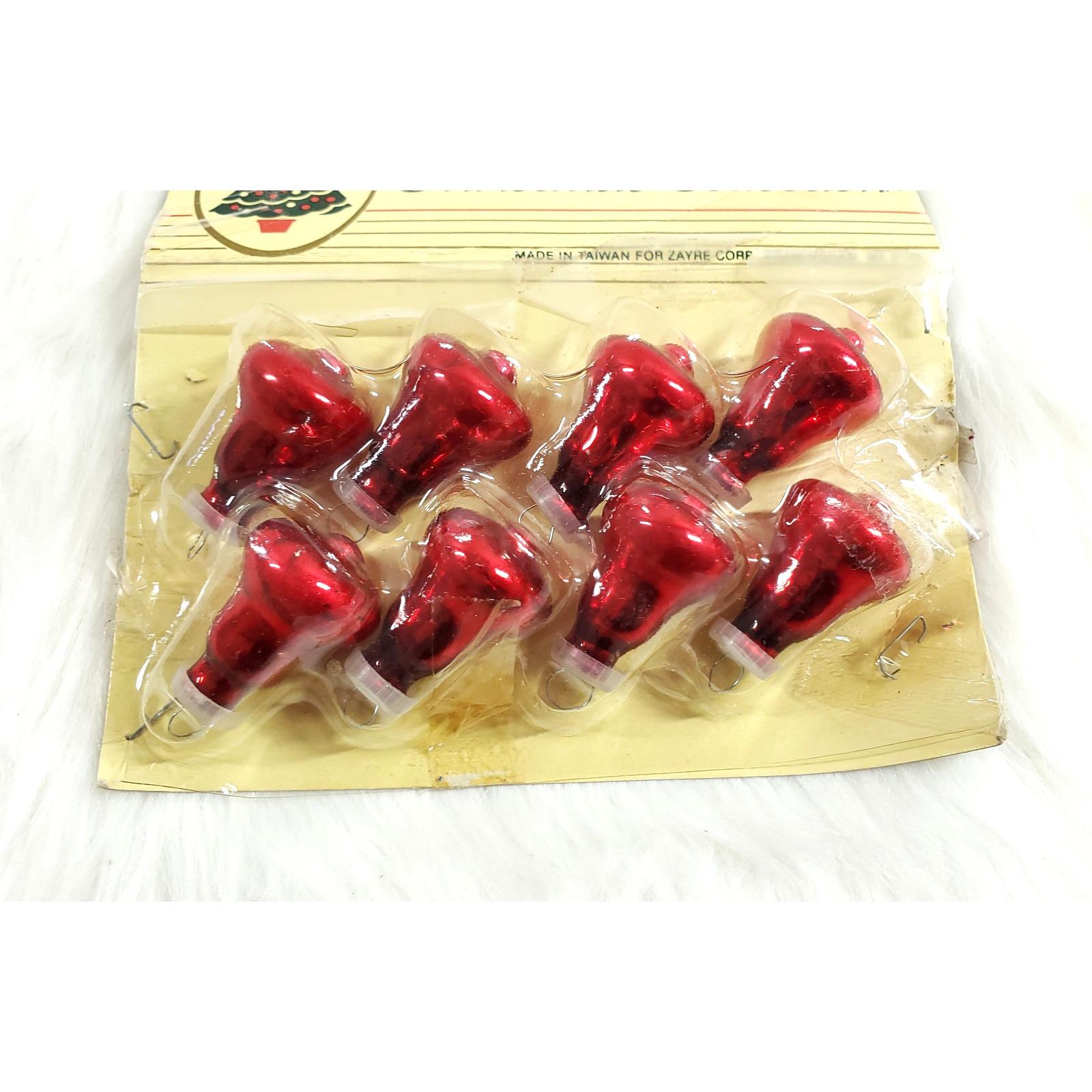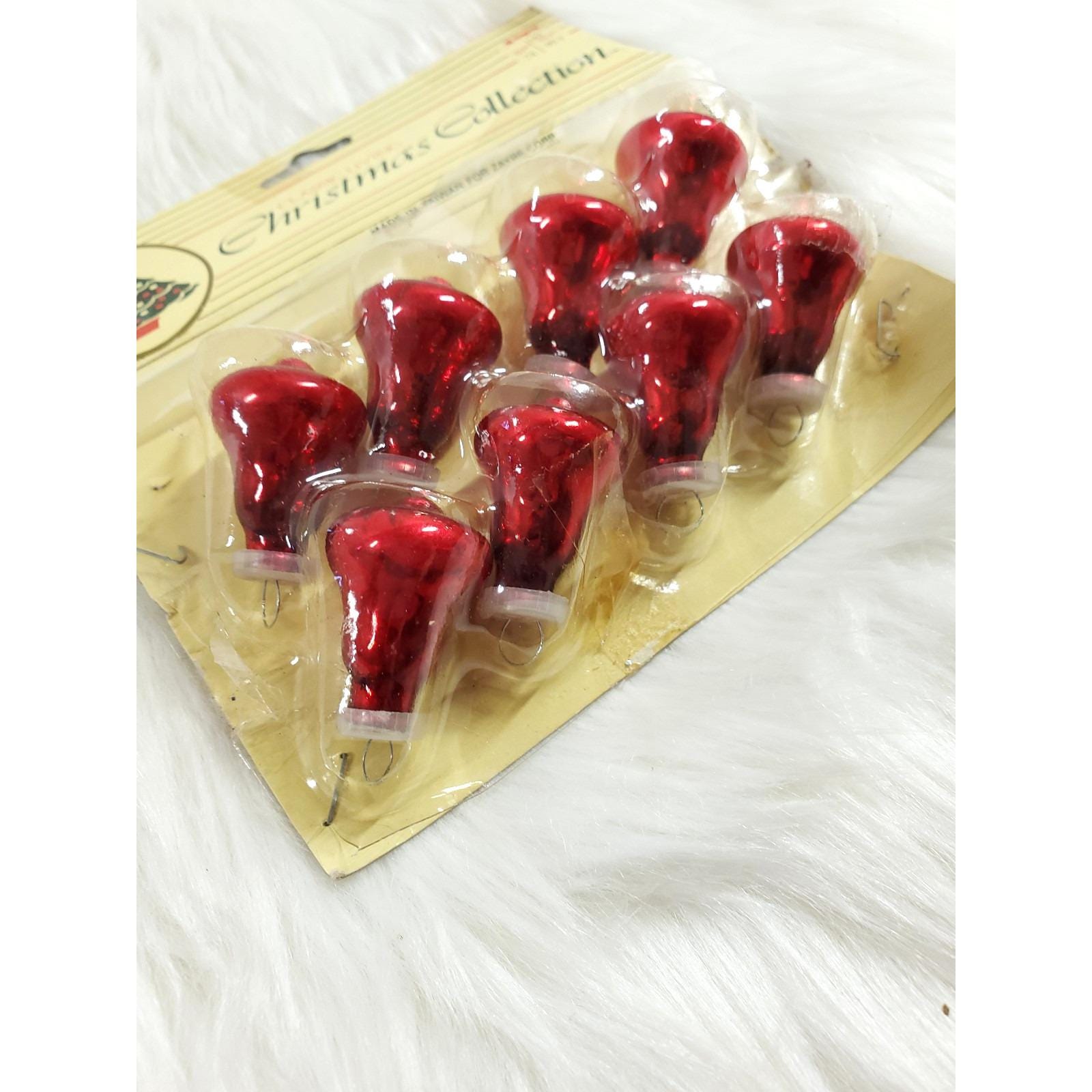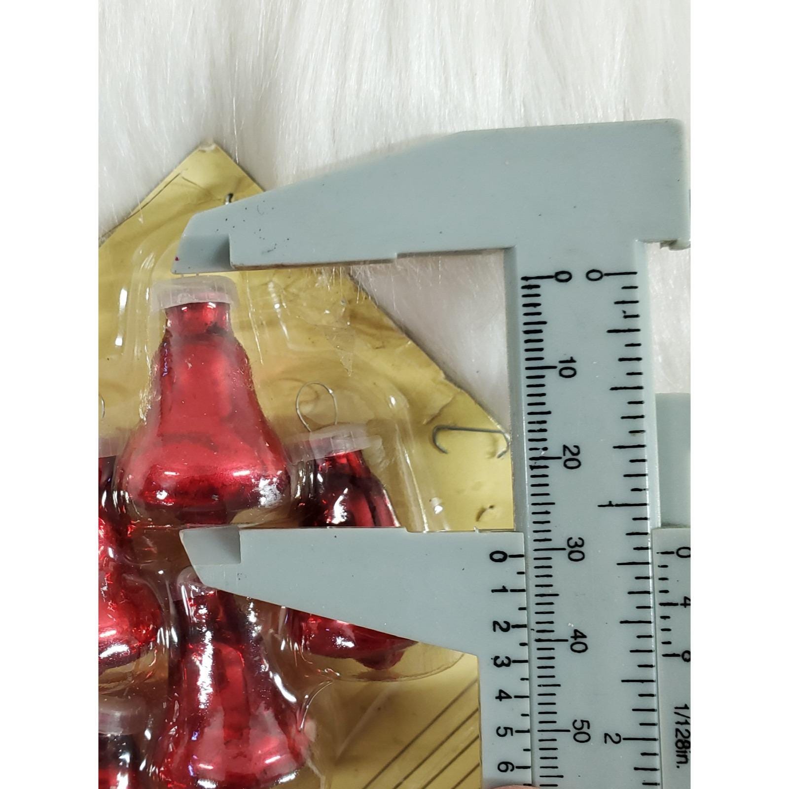 8 Vintage Miniature Red Glass Bell Feather Tree Zayre Christmas Ornaments