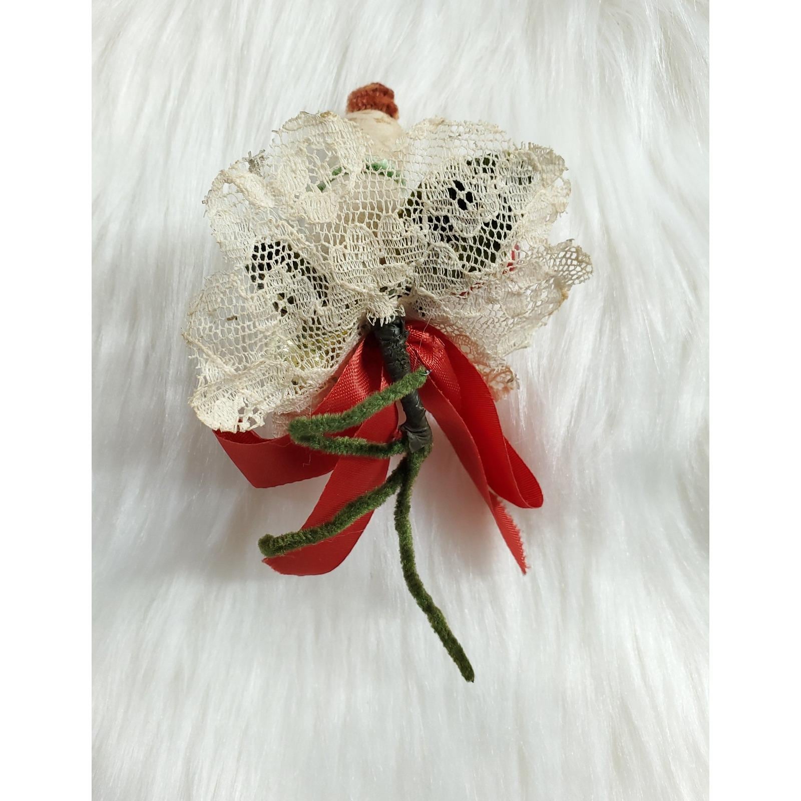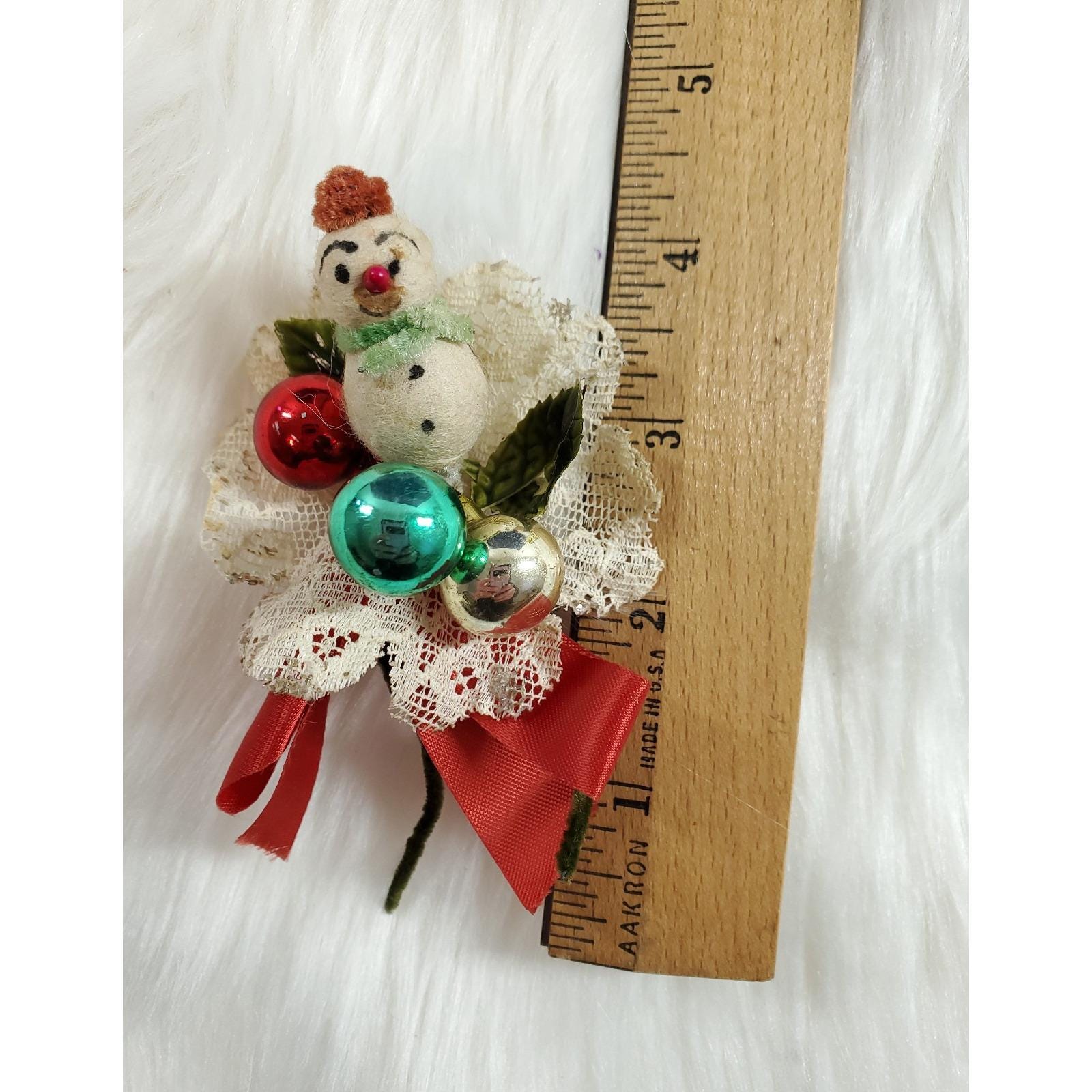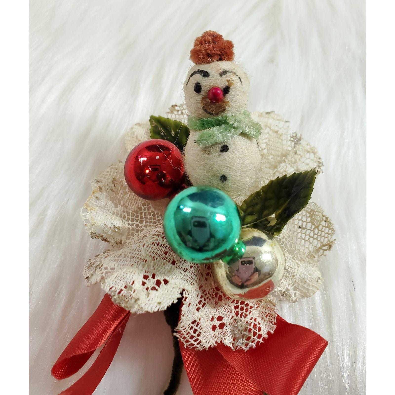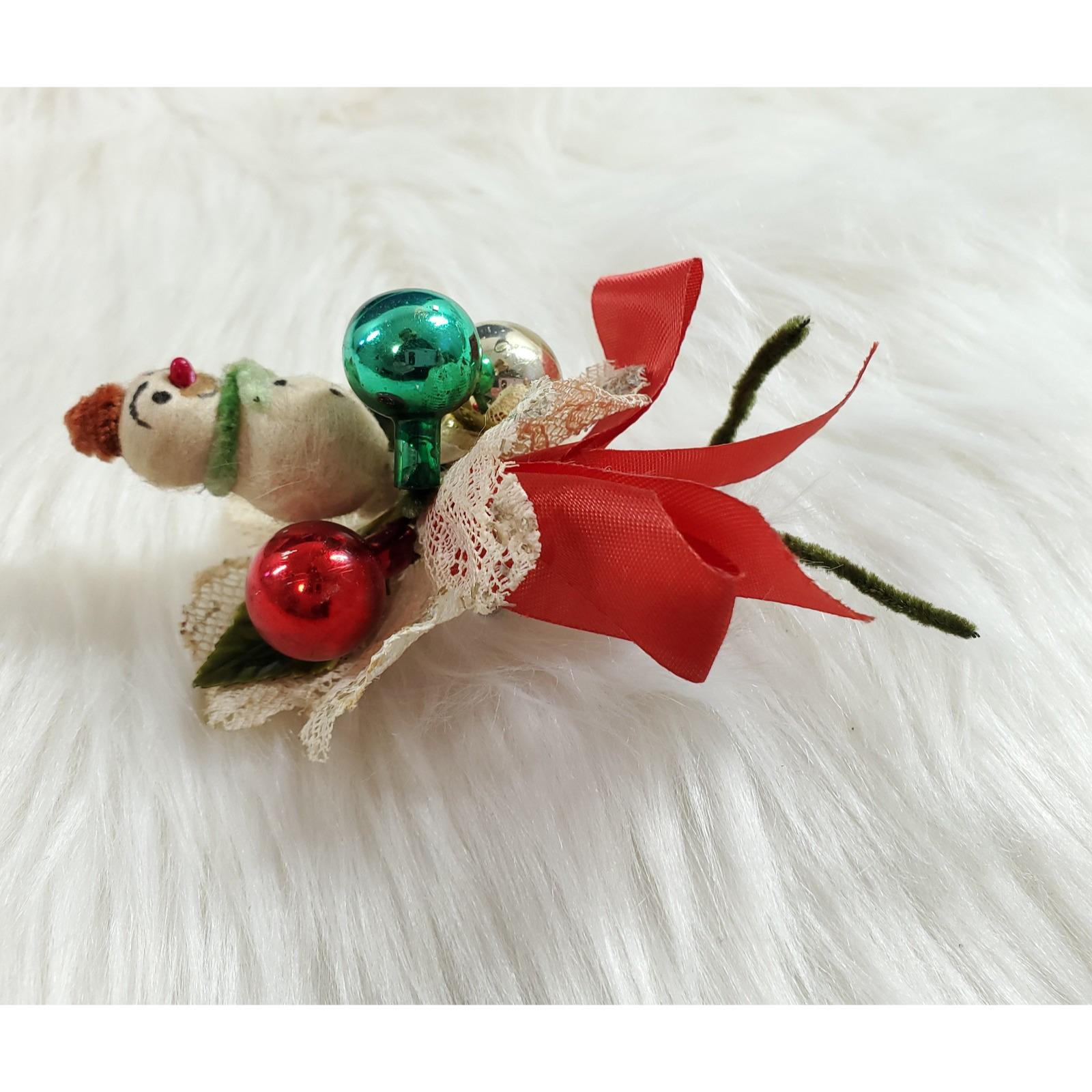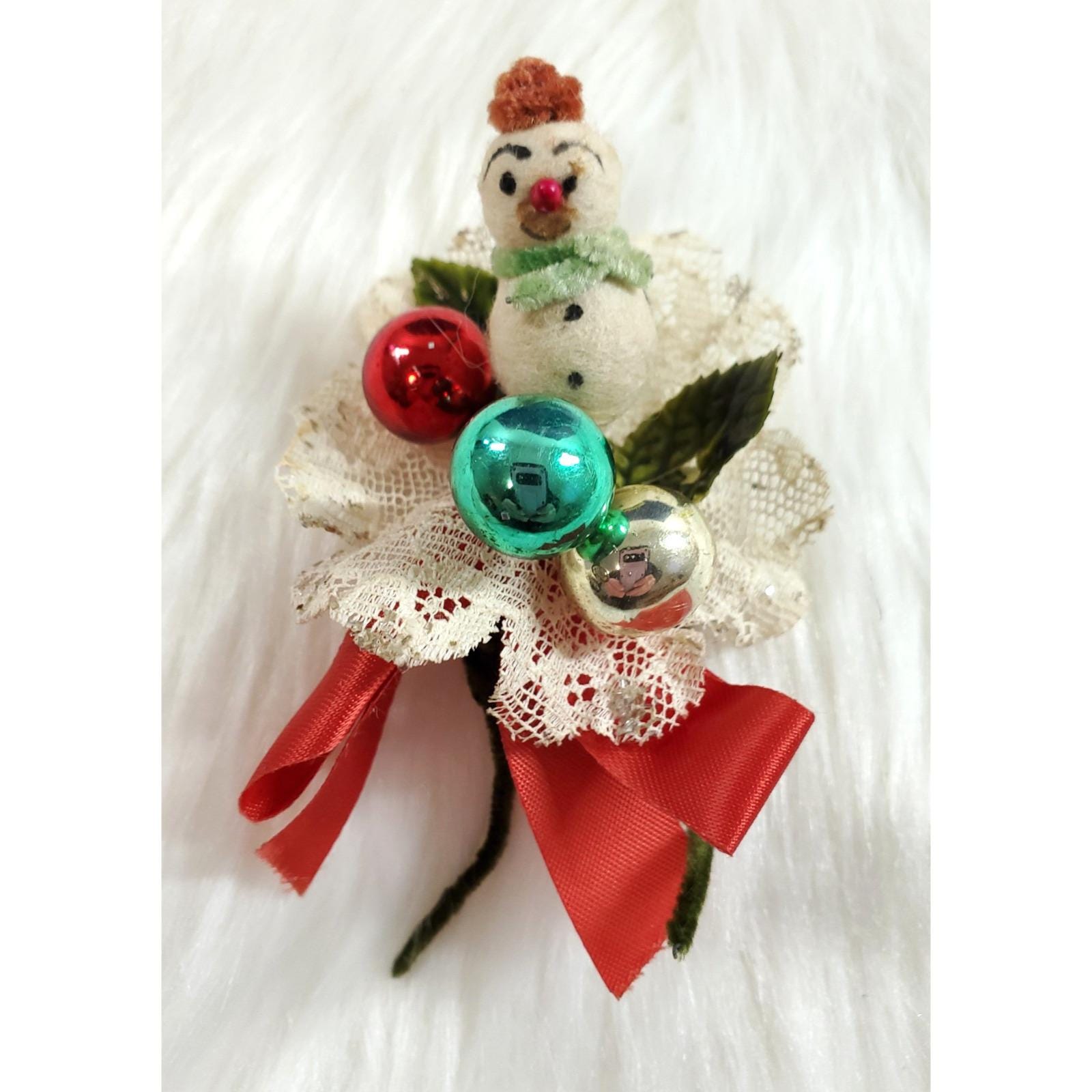 Vintage Christmas Corsage Spun Cotton Snowman Mercury Glass Lace Holly