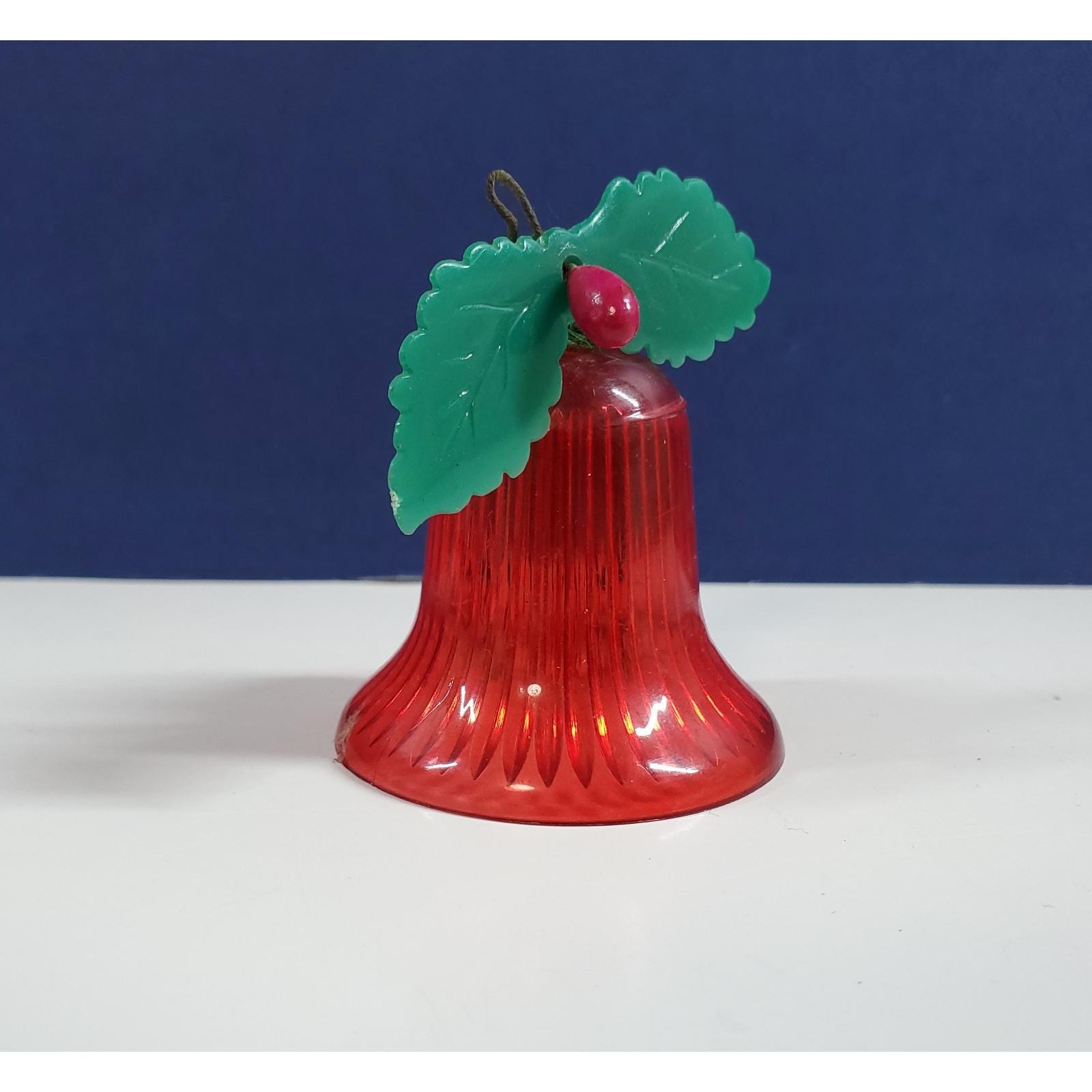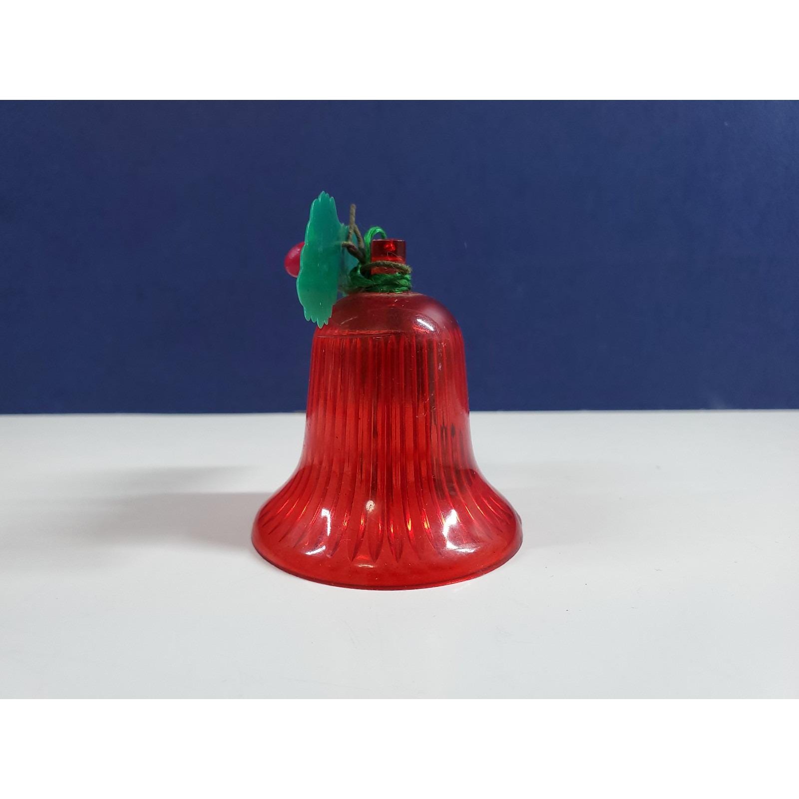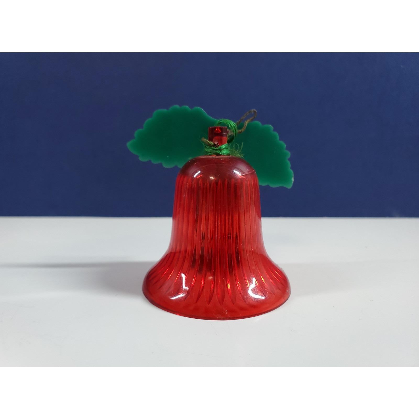 Vintage Mid Century Hard Plastic Red Bell w Mistletoe Christmas Ornament