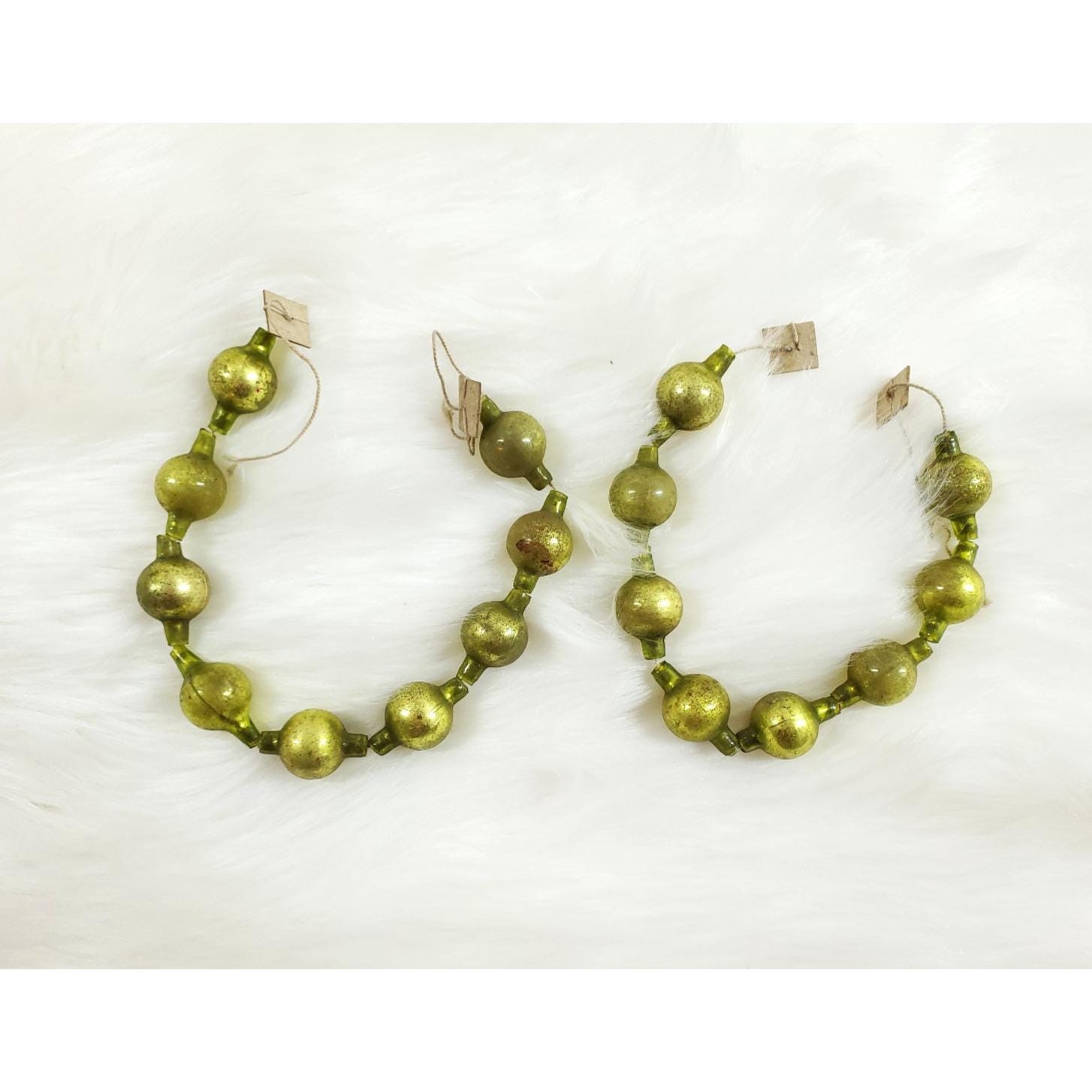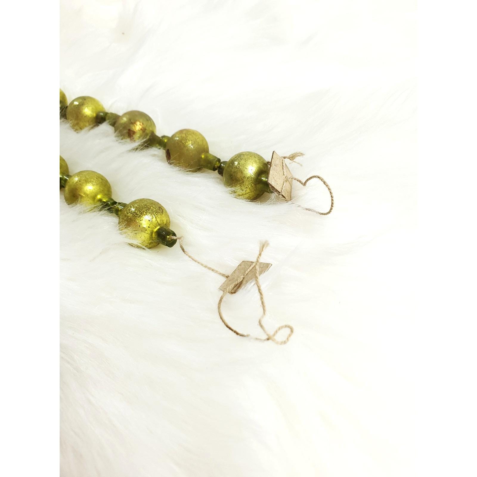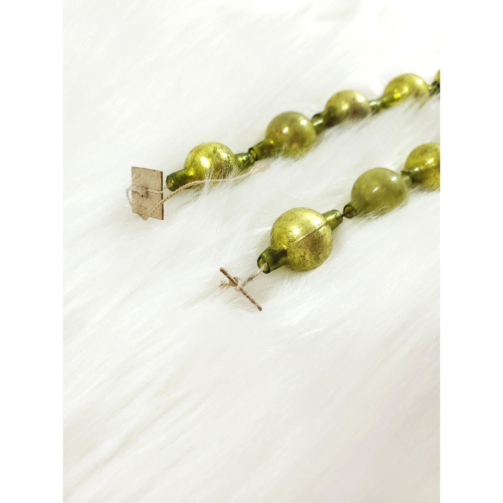 Antique Lime Green Mercury Glass Bead Feather Tree Garland 2 Strands 20"
