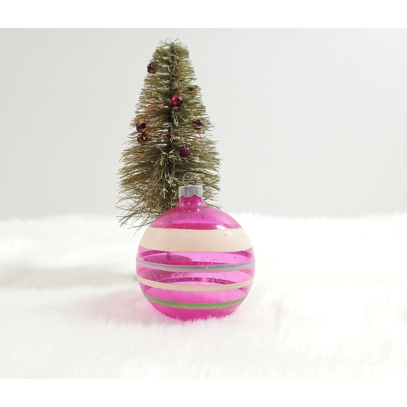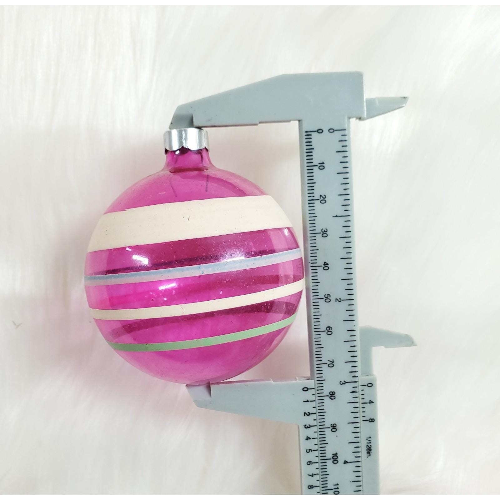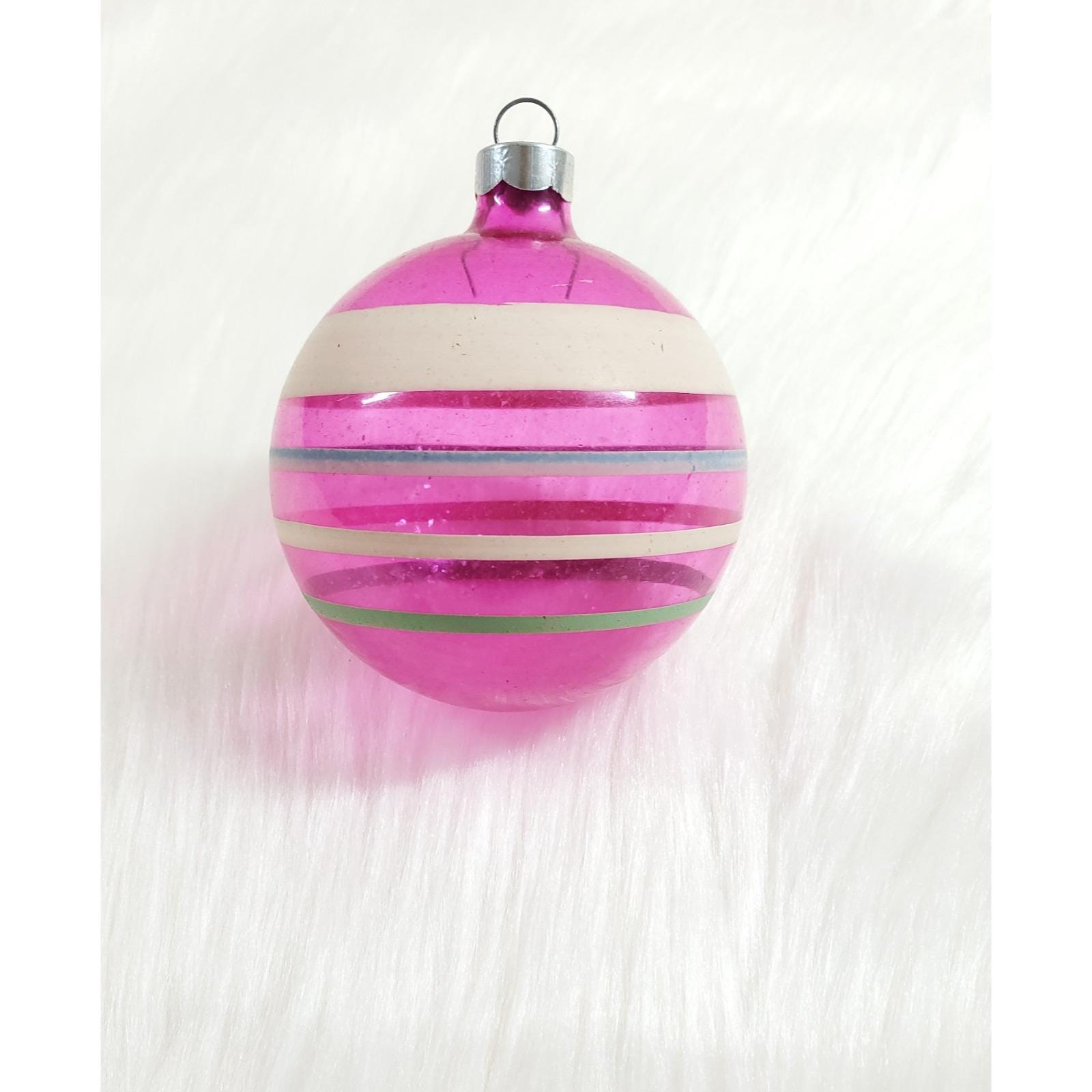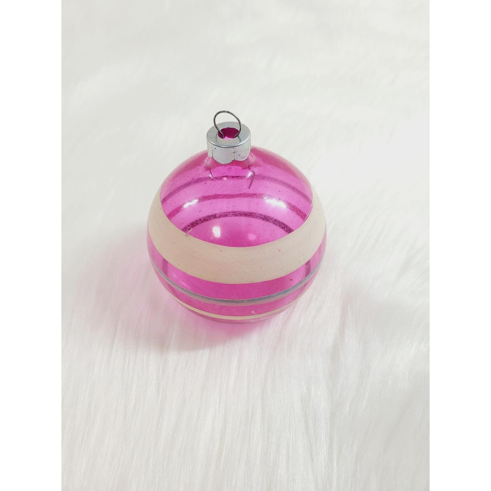 Vintage Shiny Brite WWII Unsilvered Pink Stripe Glass Ball Christmas Ornament