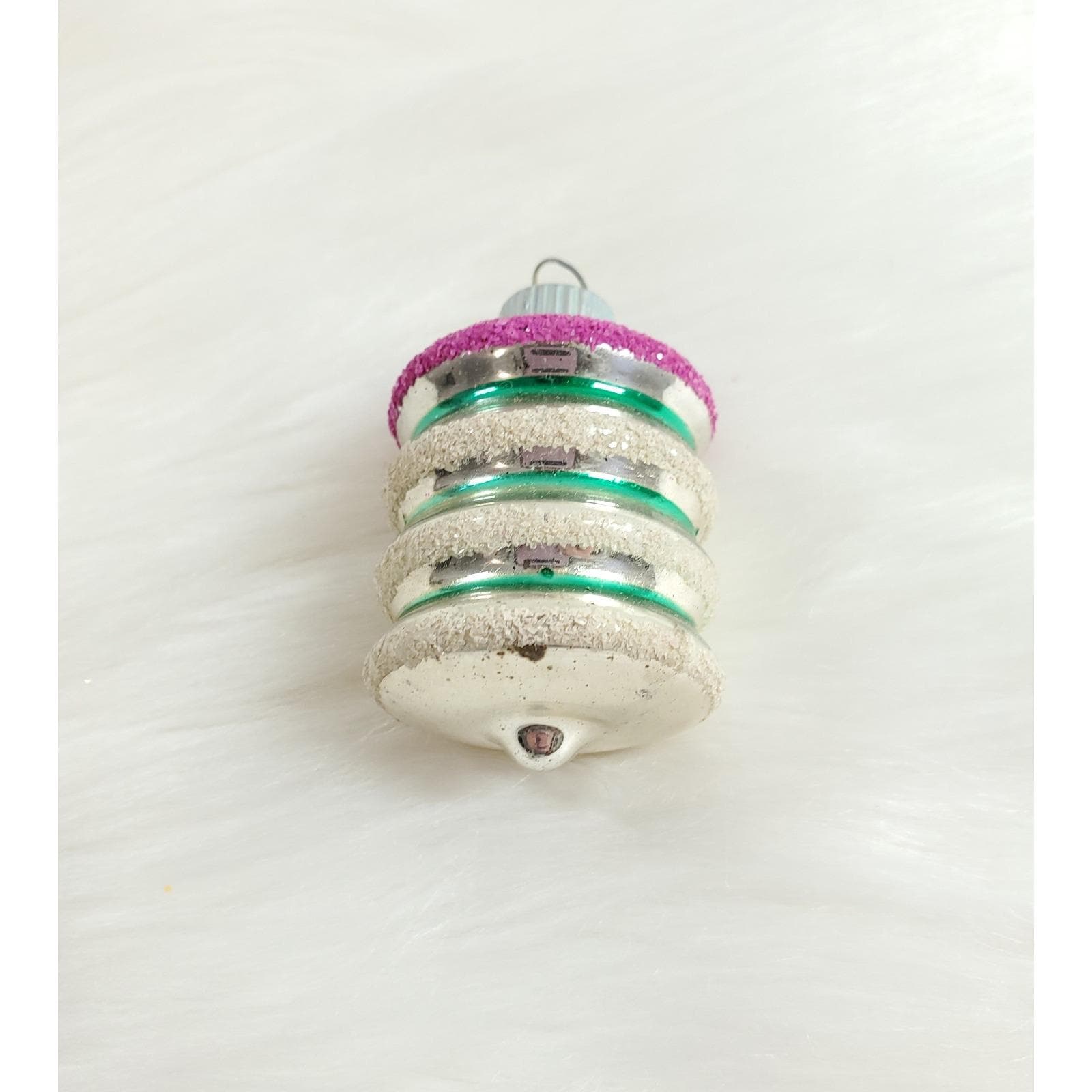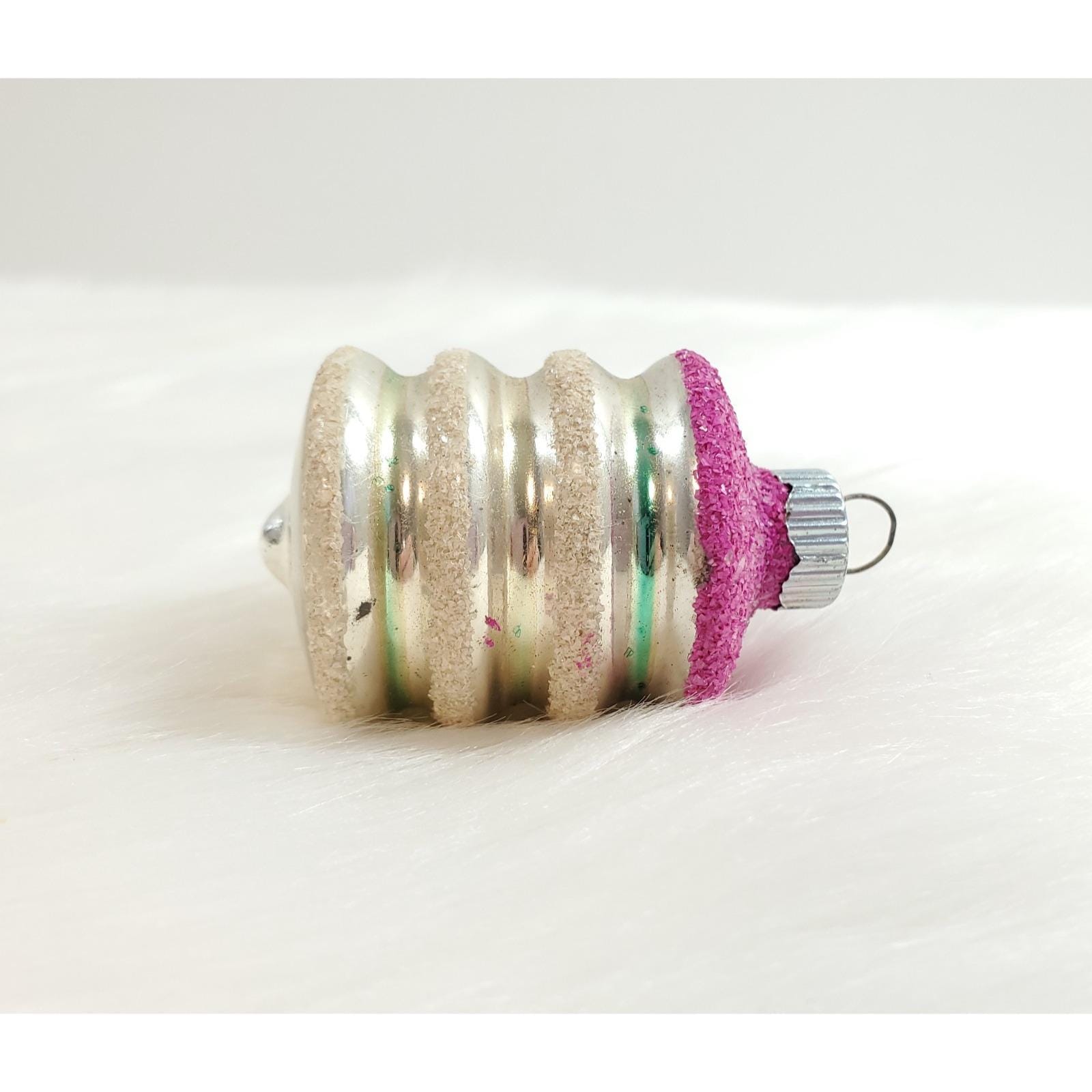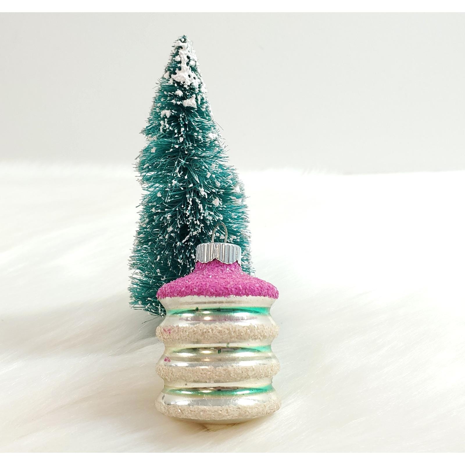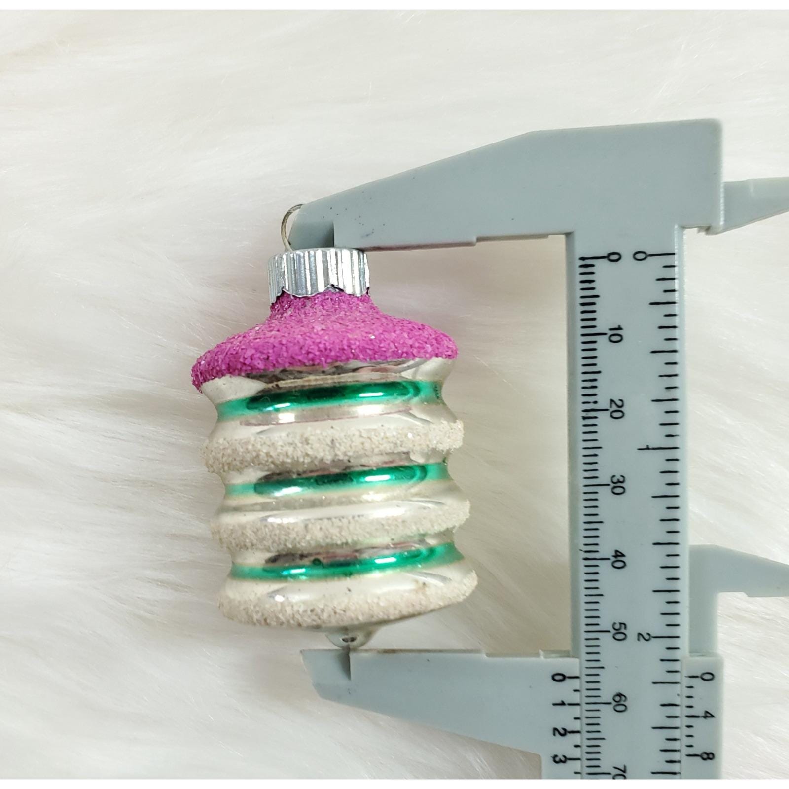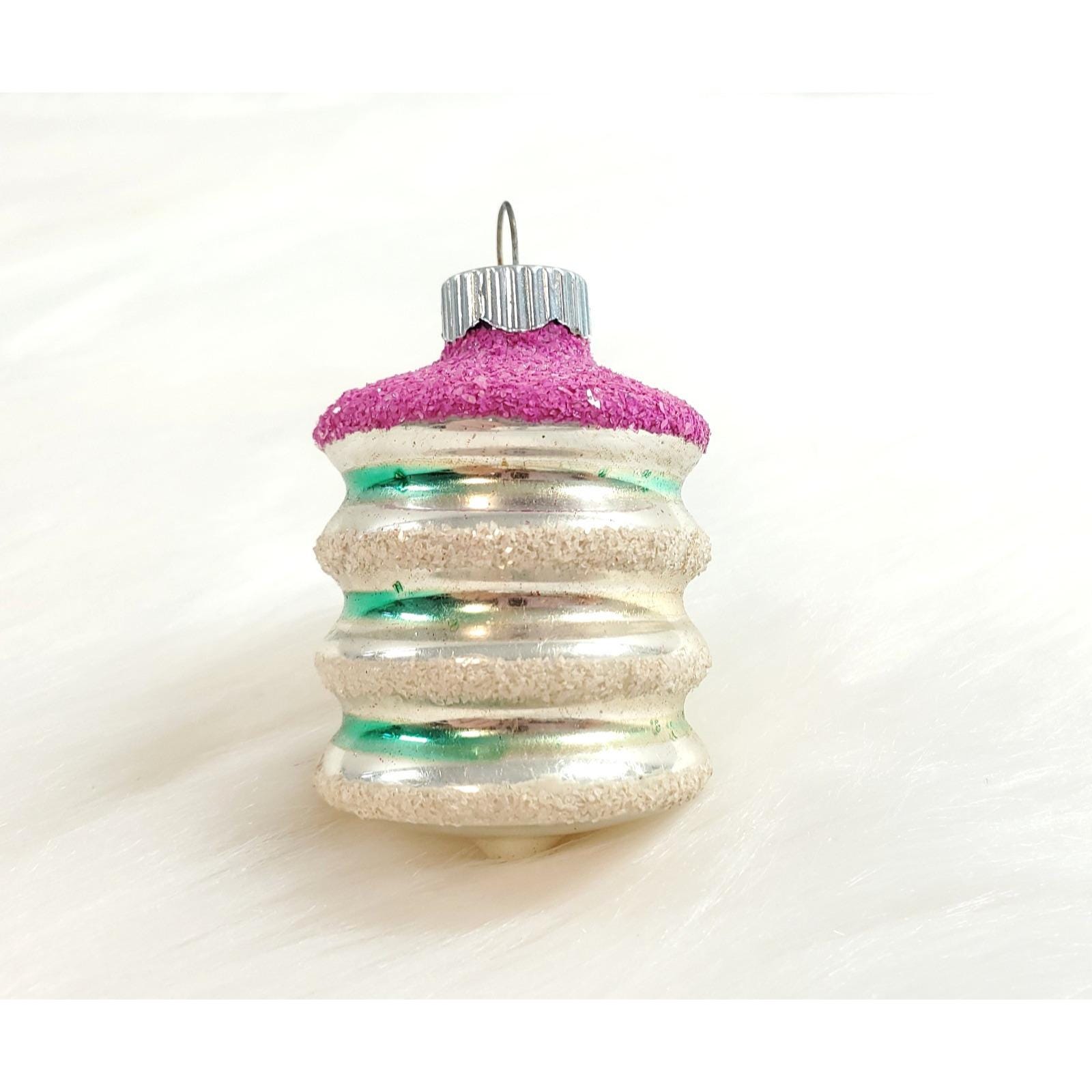 VTG Shiny Brite Mica Pink Stripe Lantern Barrel Atomic Glass Christmas Ornament