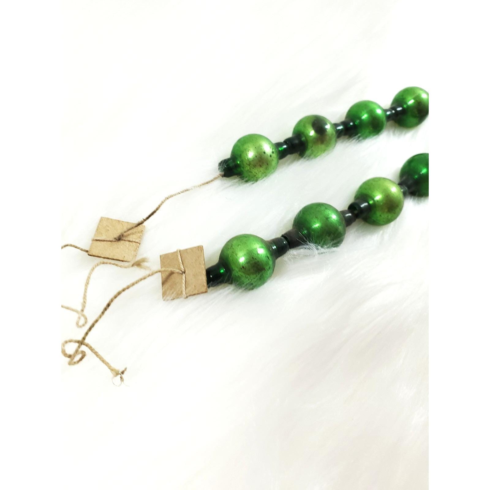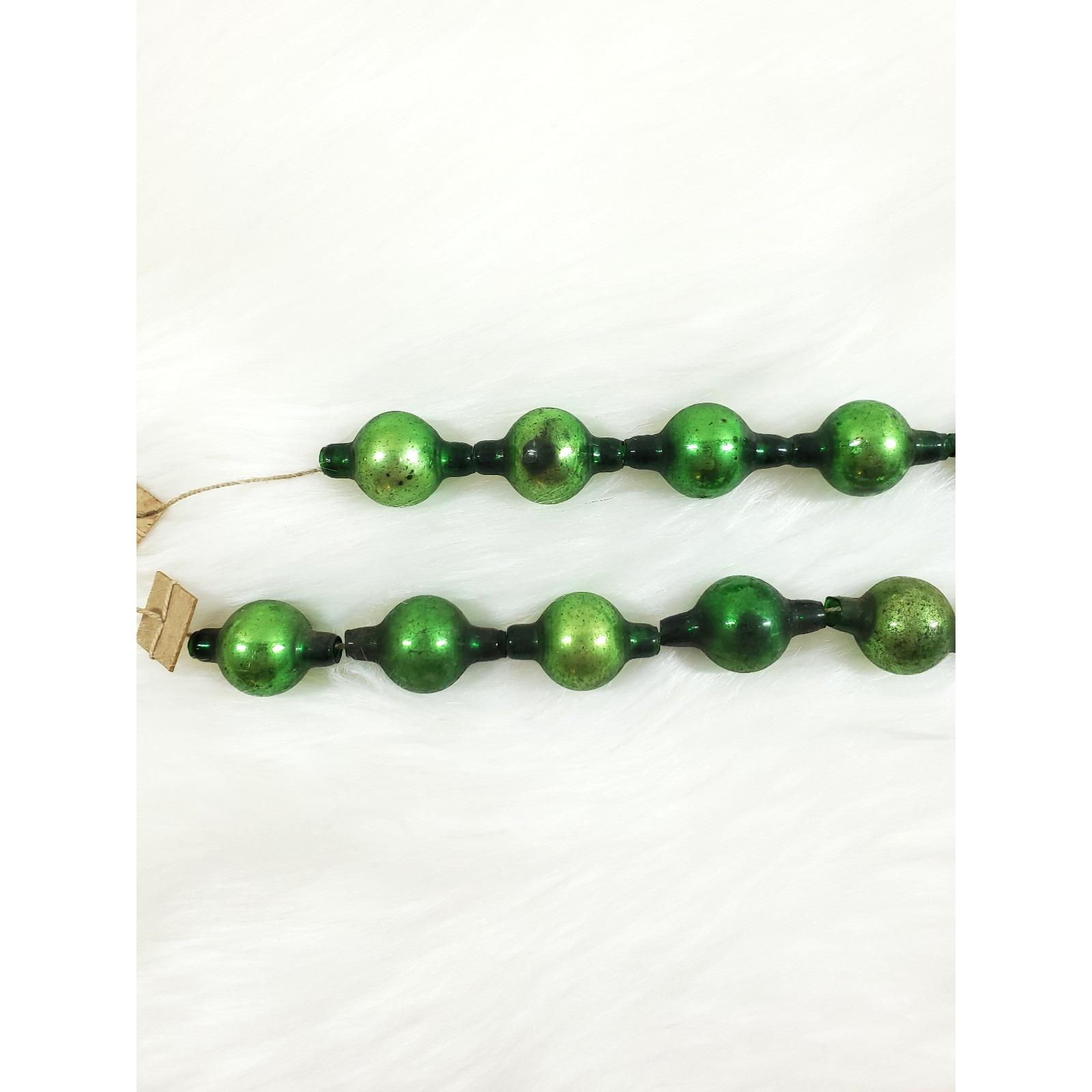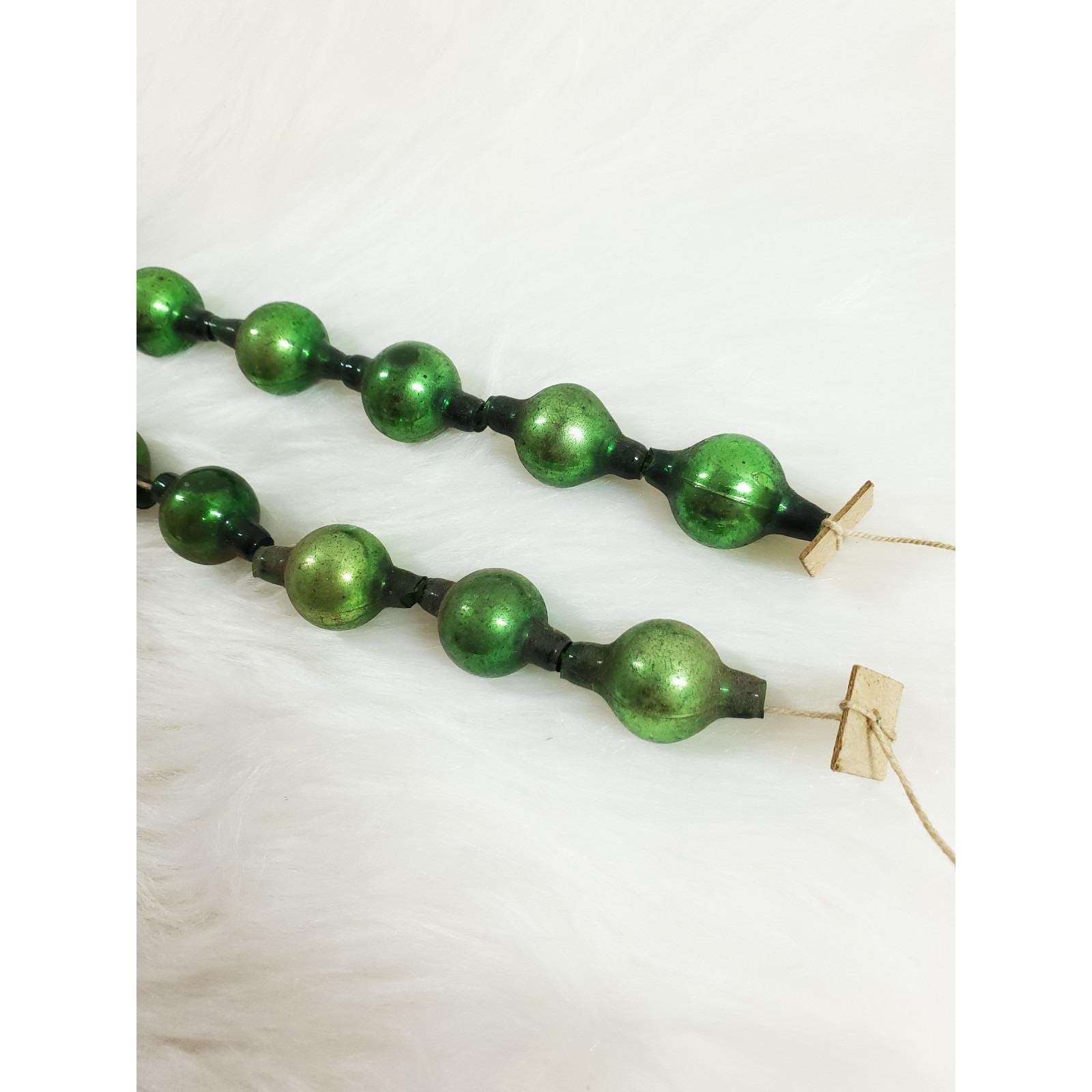 Antique Green Mercury Glass Bead Feather Tree Garland 2 Strands 20"