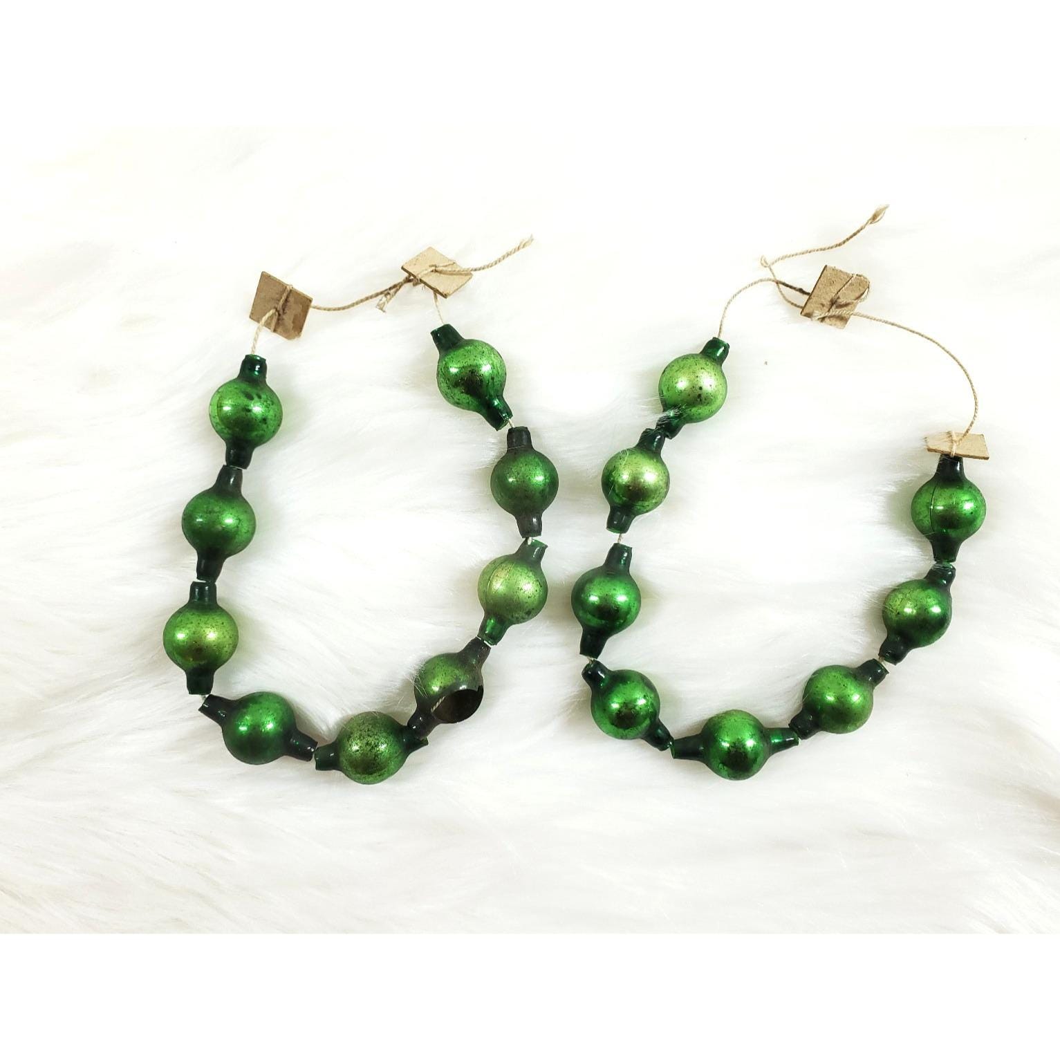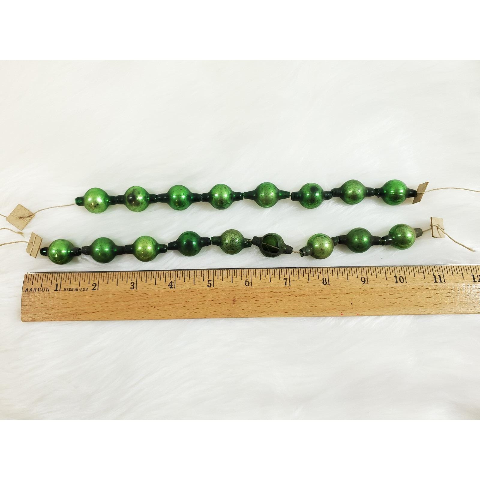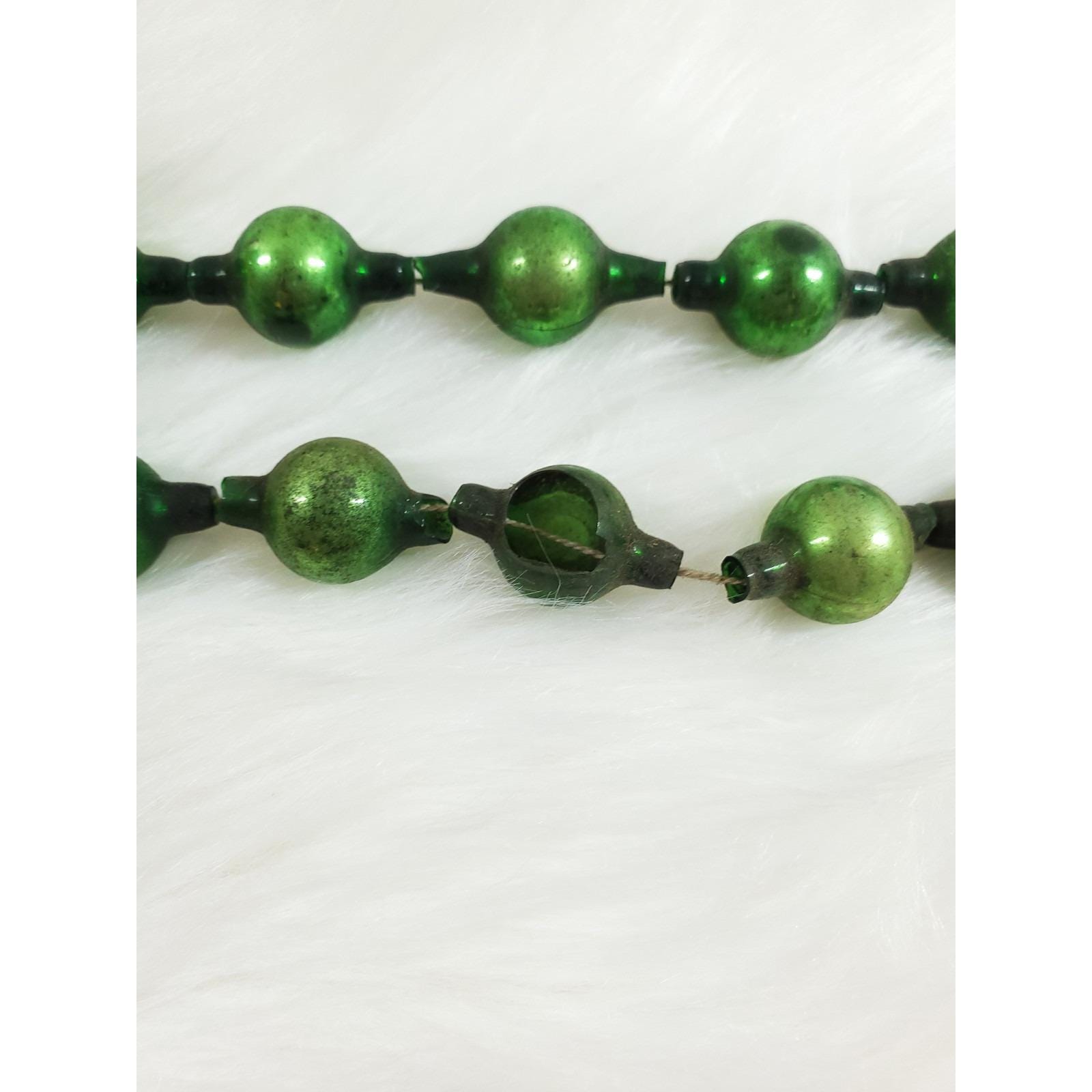 Antique Green Mercury Glass Bead Feather Tree Garland 2 Strands 20"