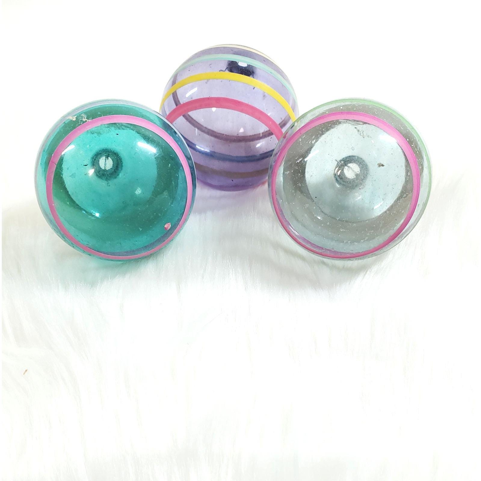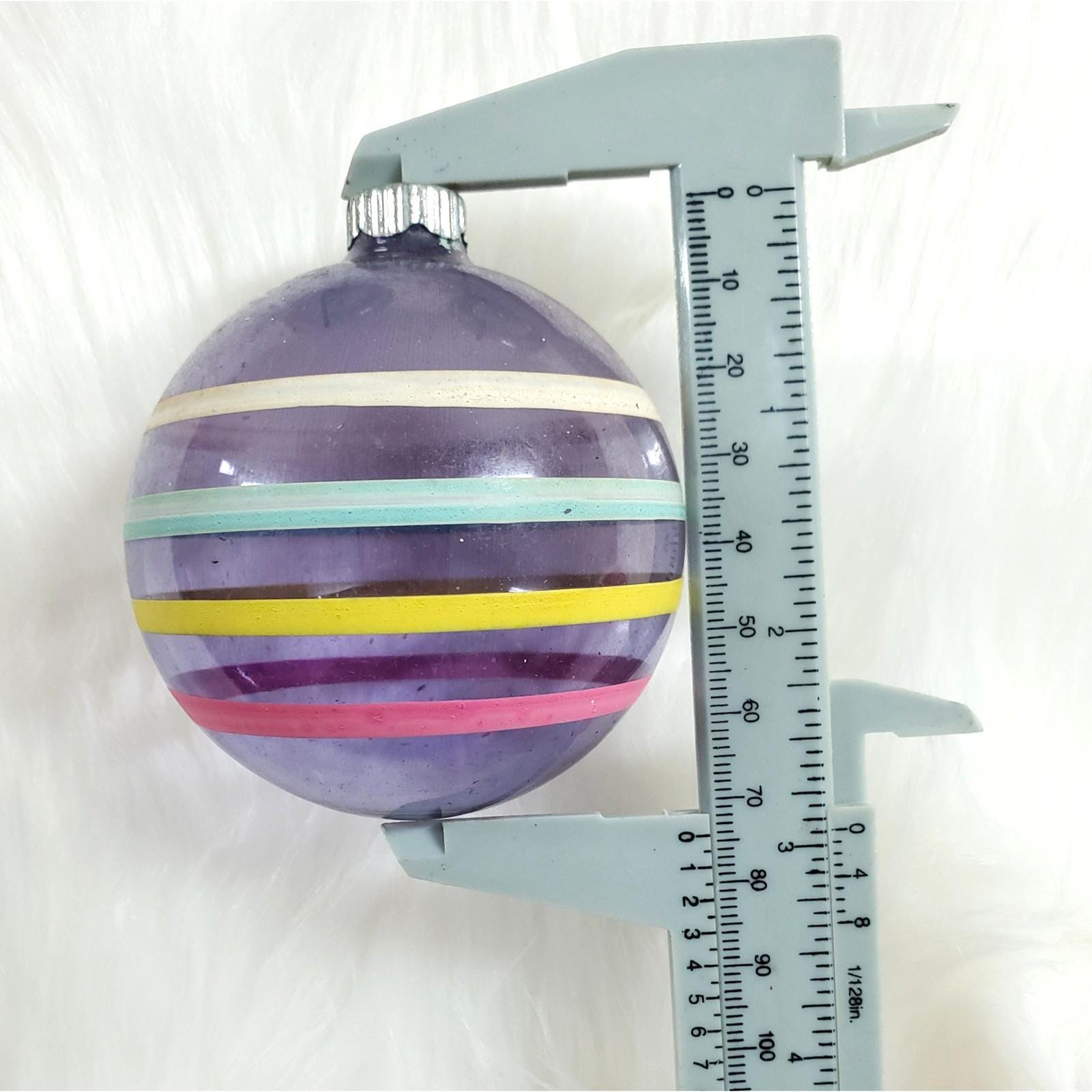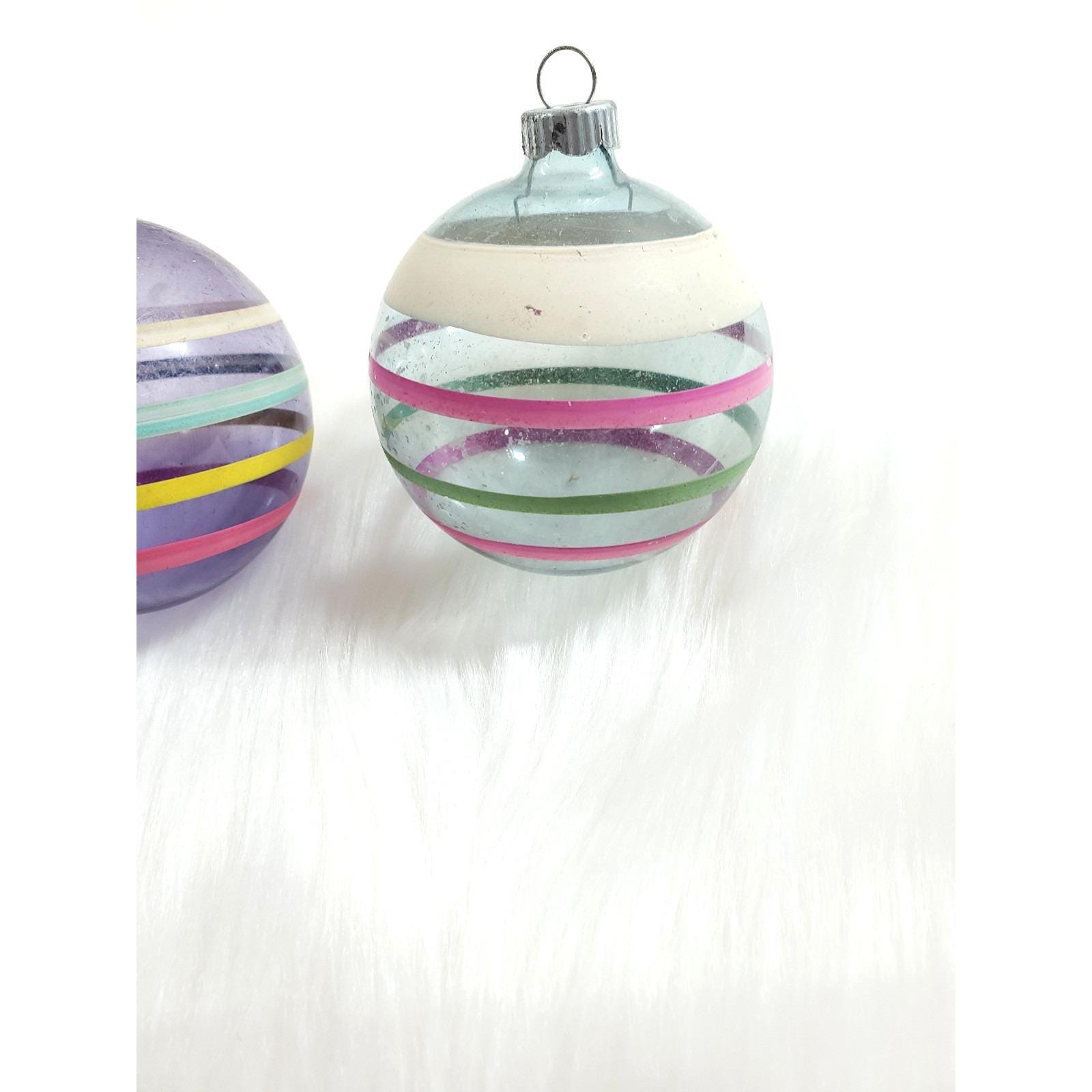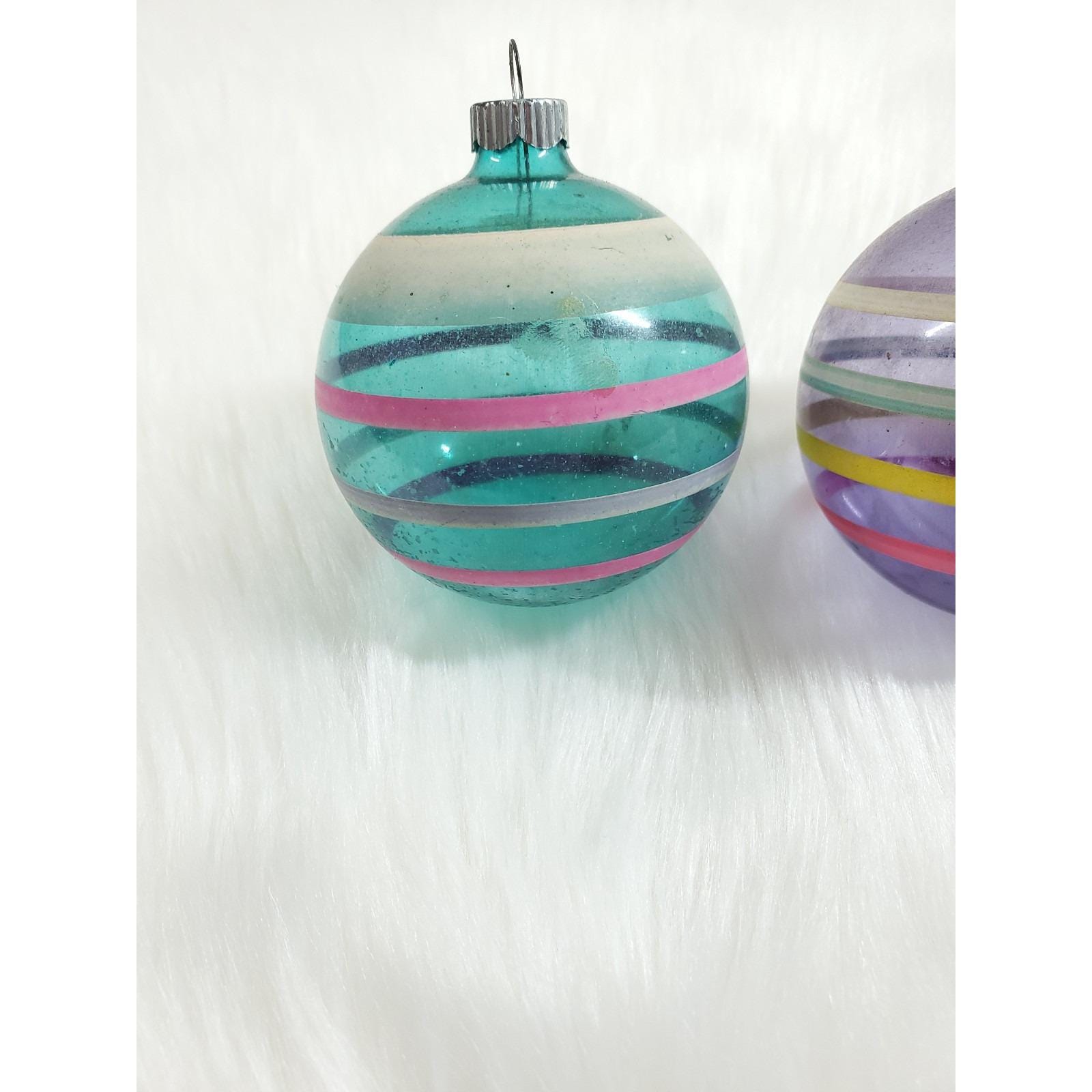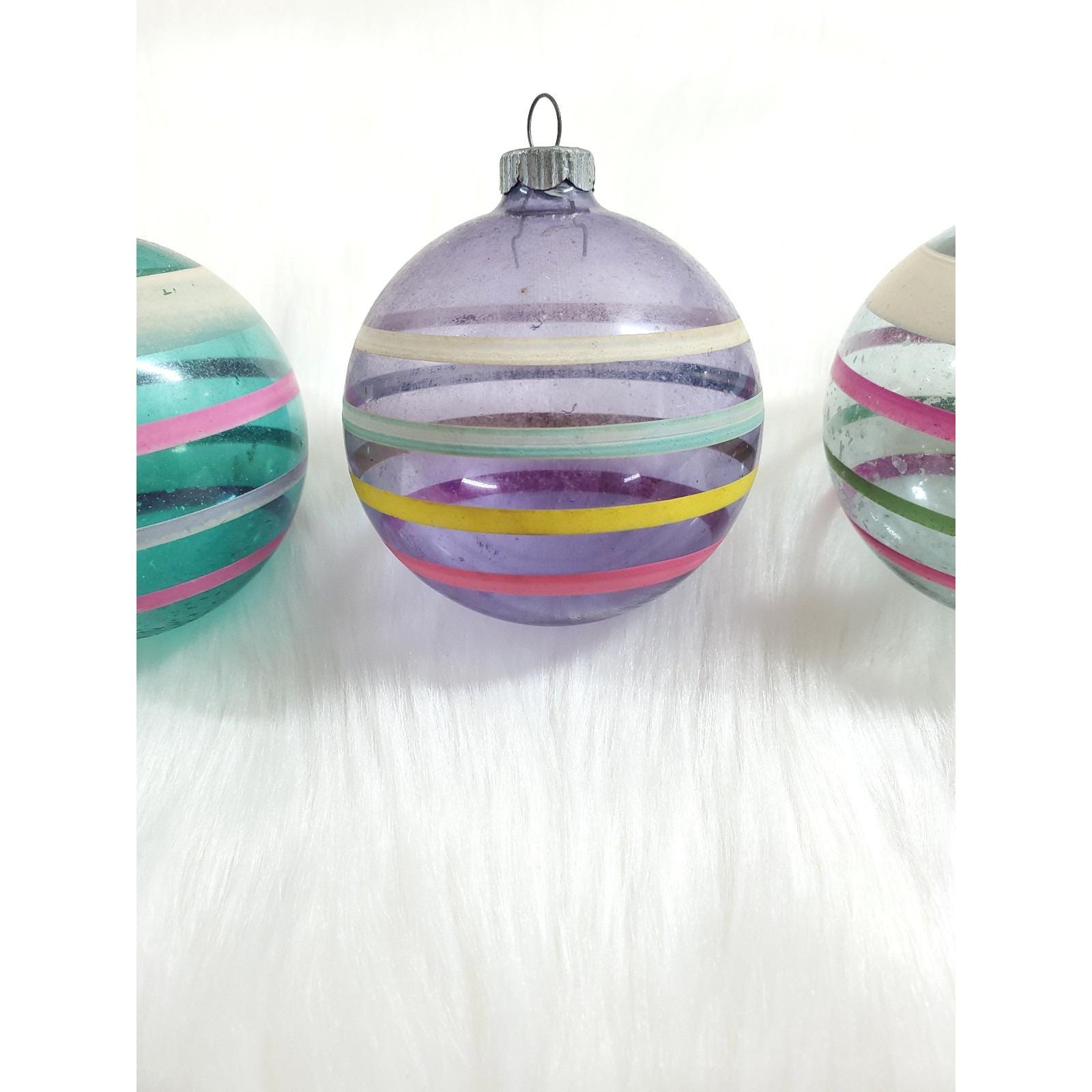 3 Vintage Shiny Brite WWII Unsilvered Stripe Glass Ball Christmas Ornaments