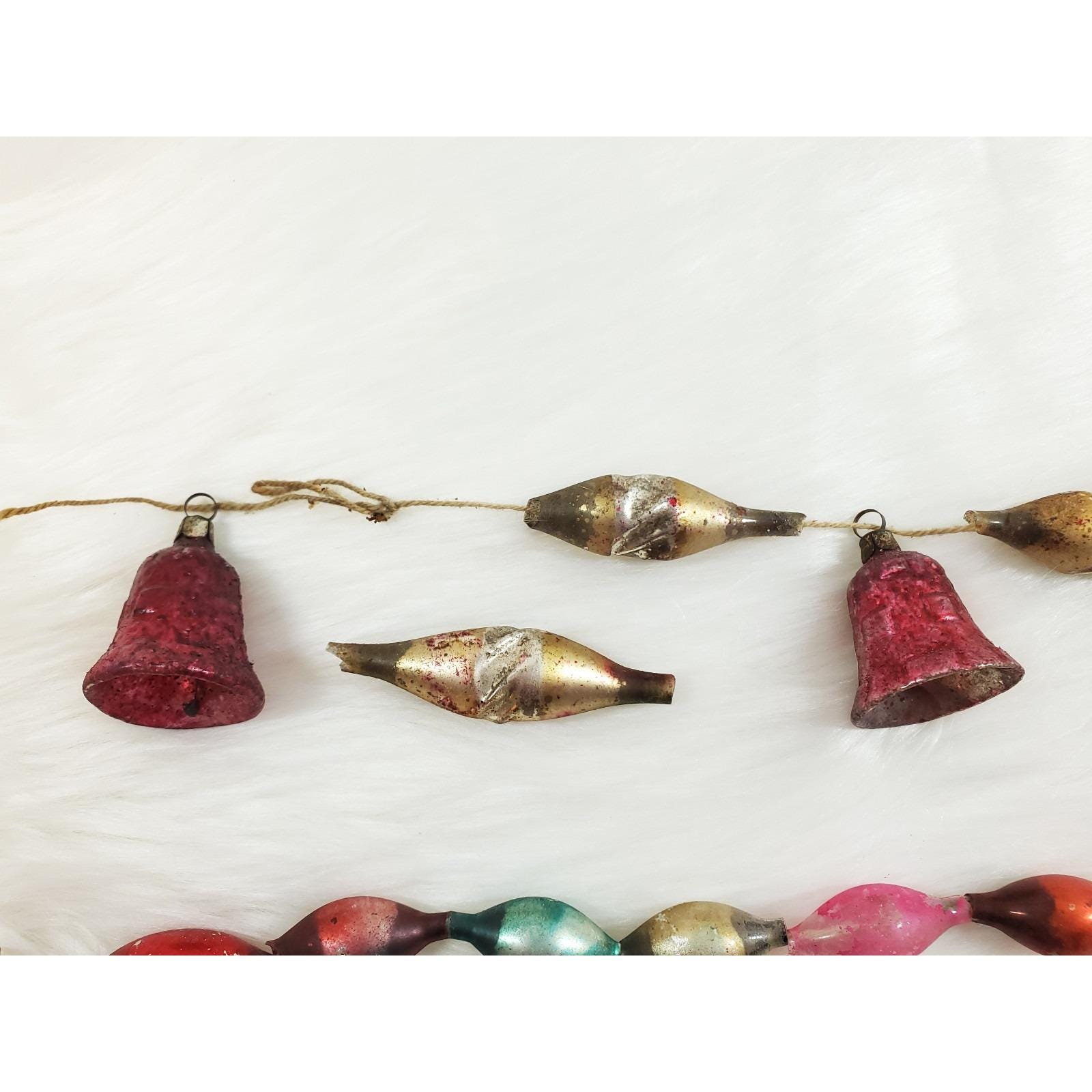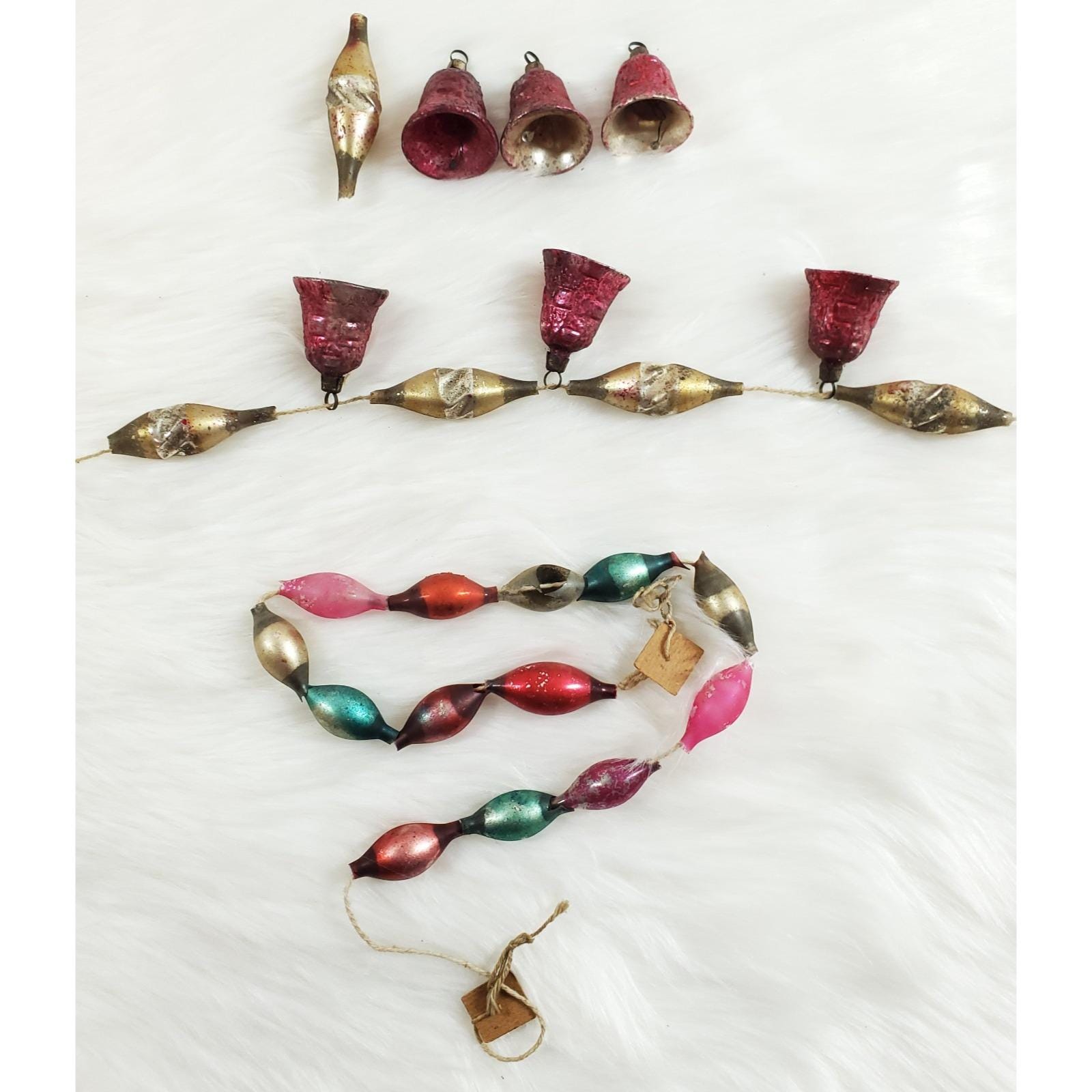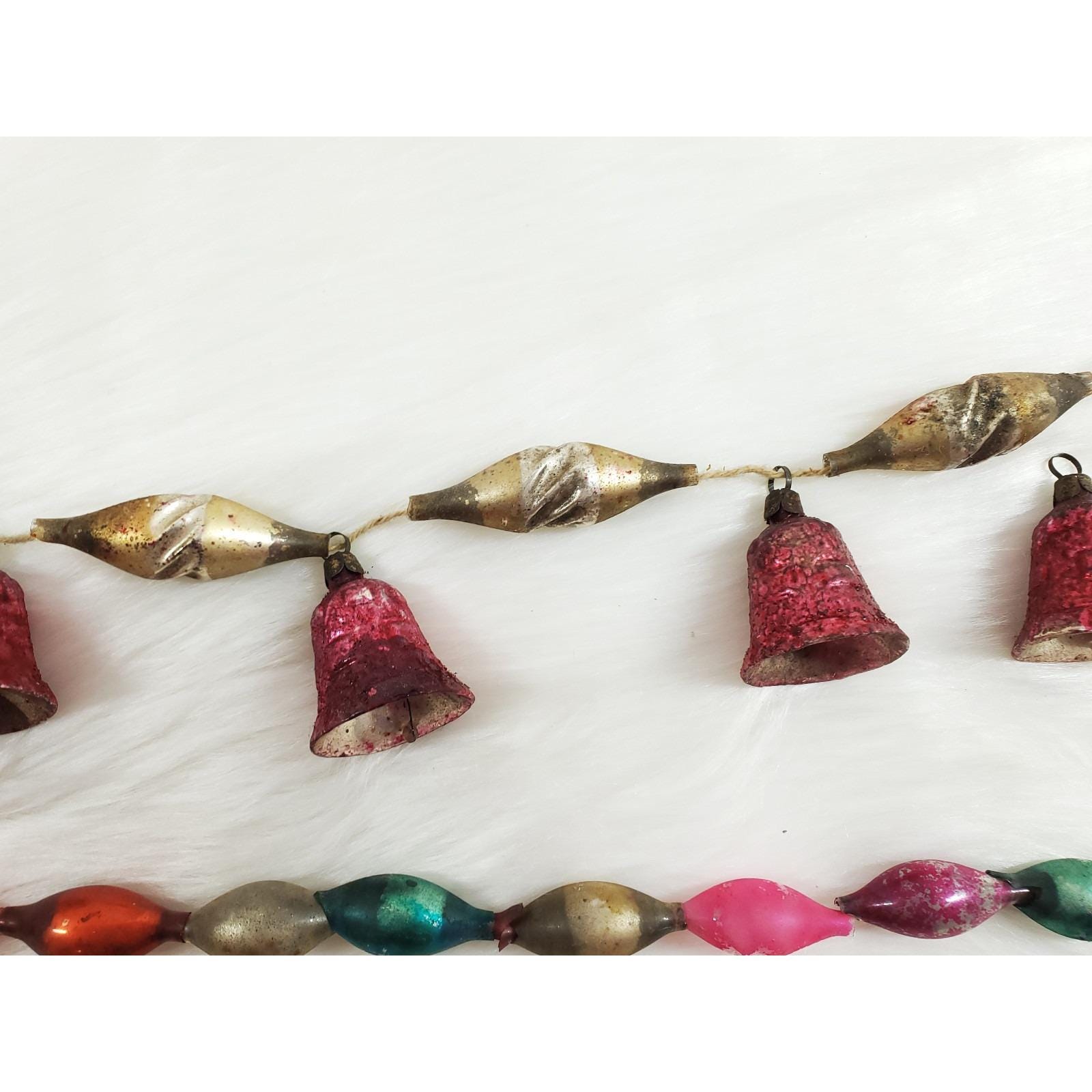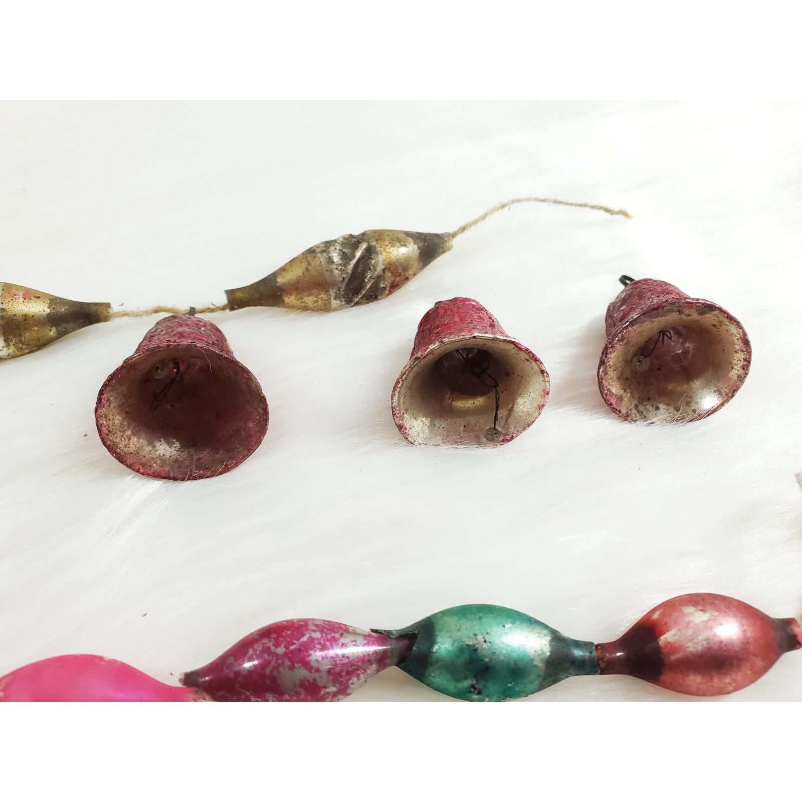 Overall good antique condition with a few cracked/missing beads as shown. The bell garland does need to be re-strung. Please see all photos close-up for exact details.