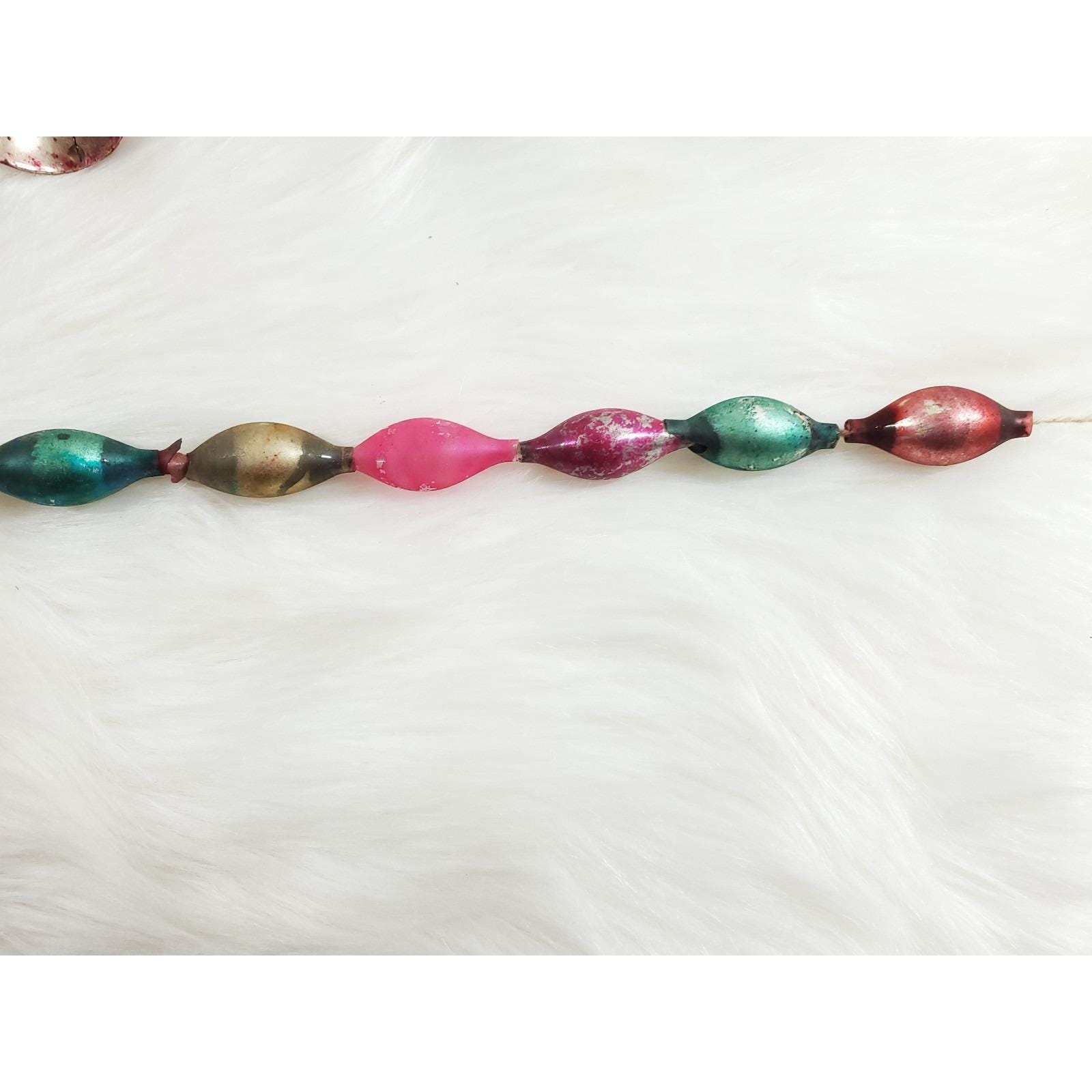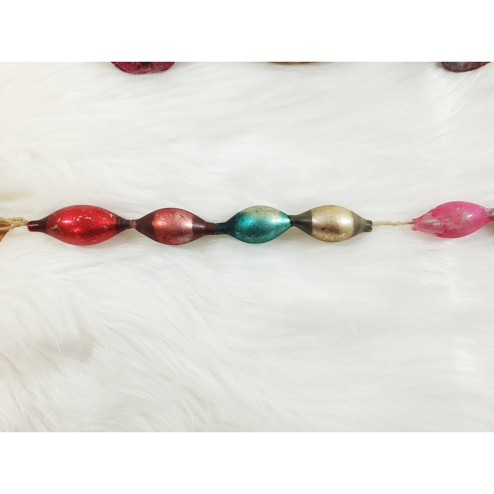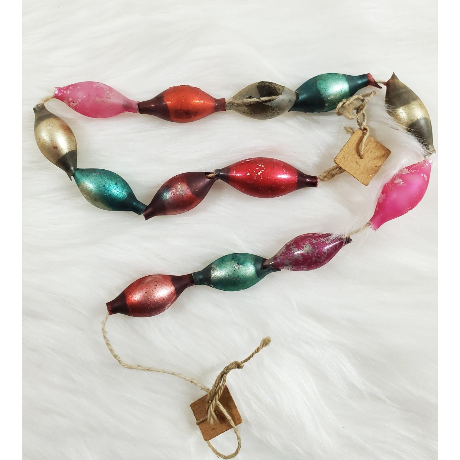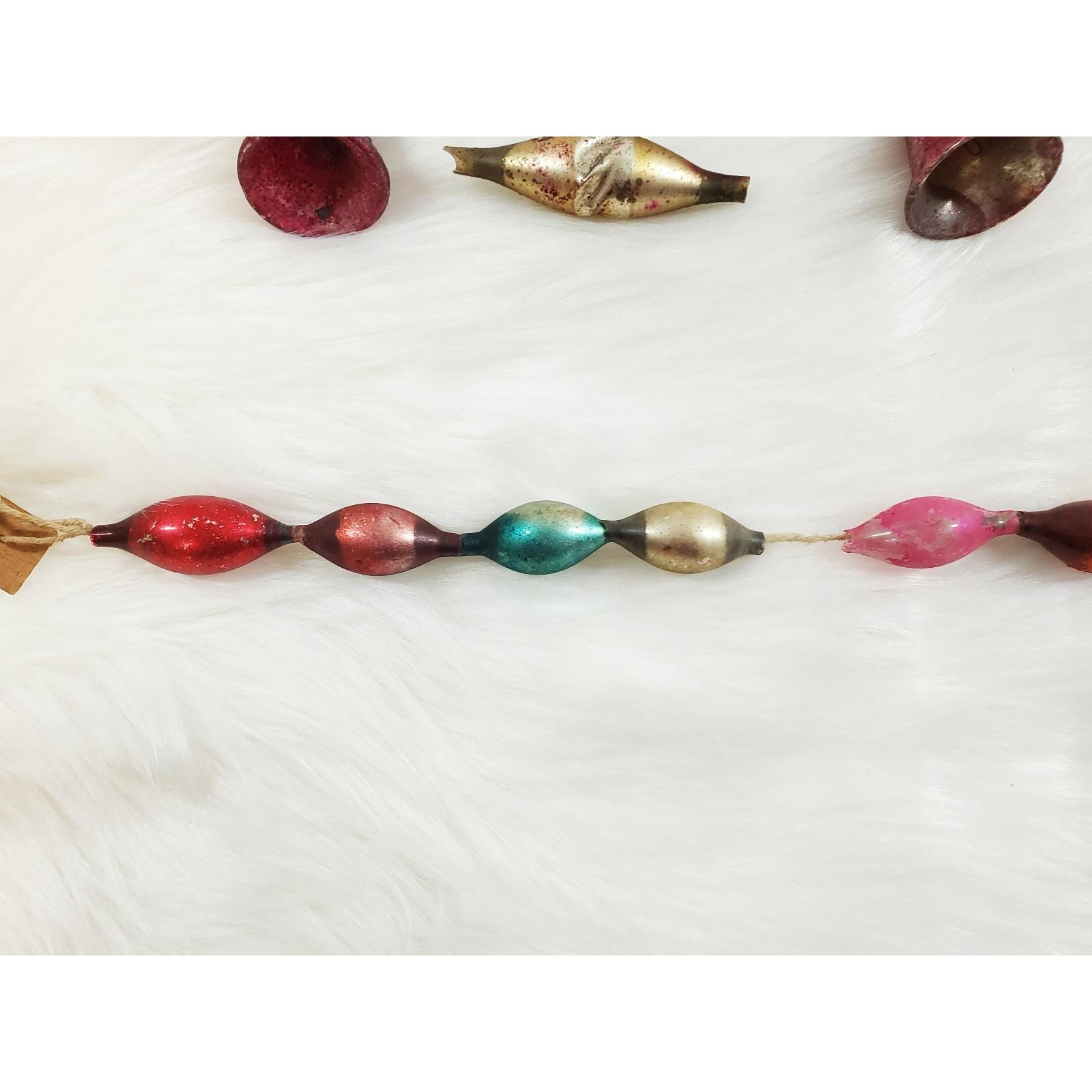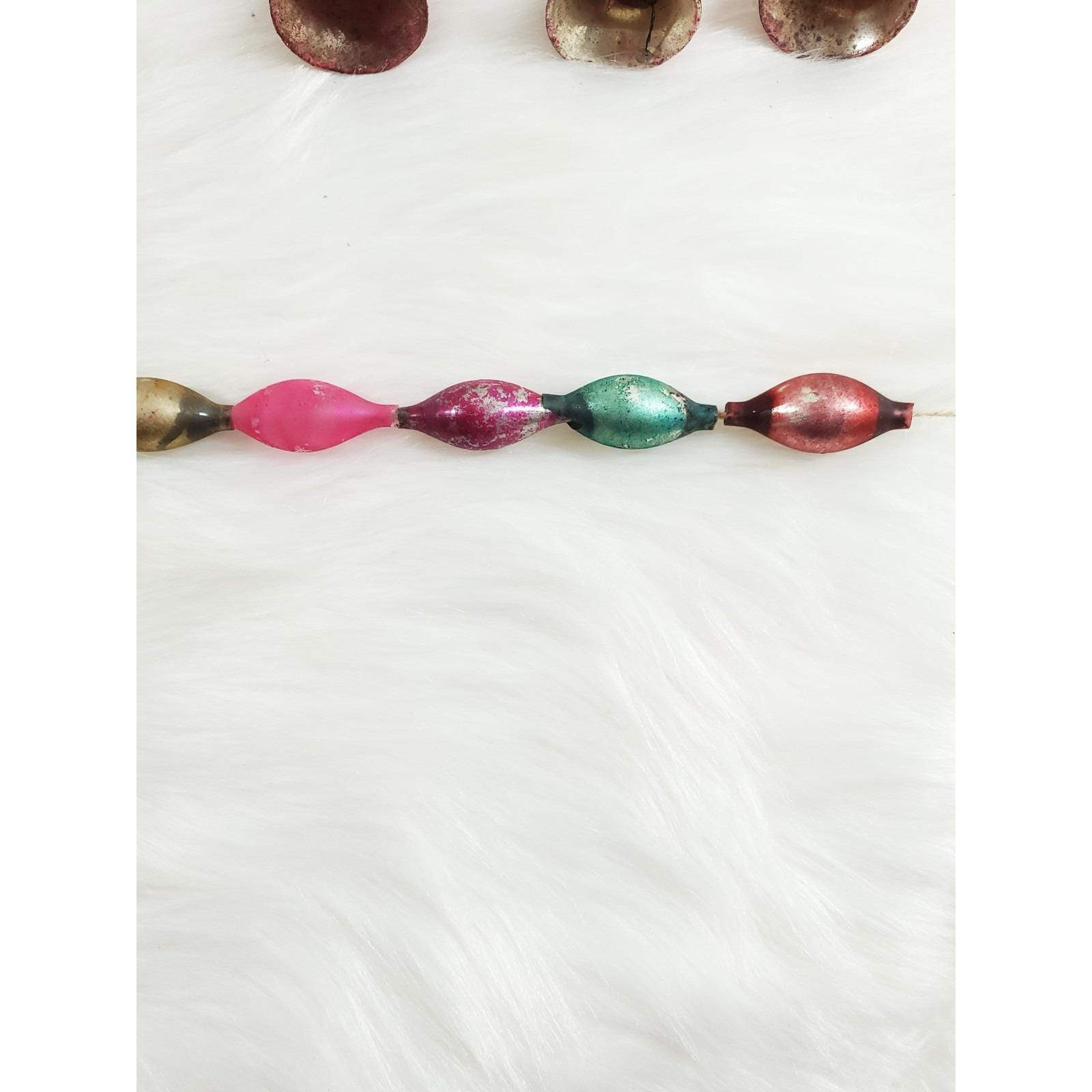 Antique Mercury Glass Bead Bell Feather Tree Christmas Garland 2 Strands