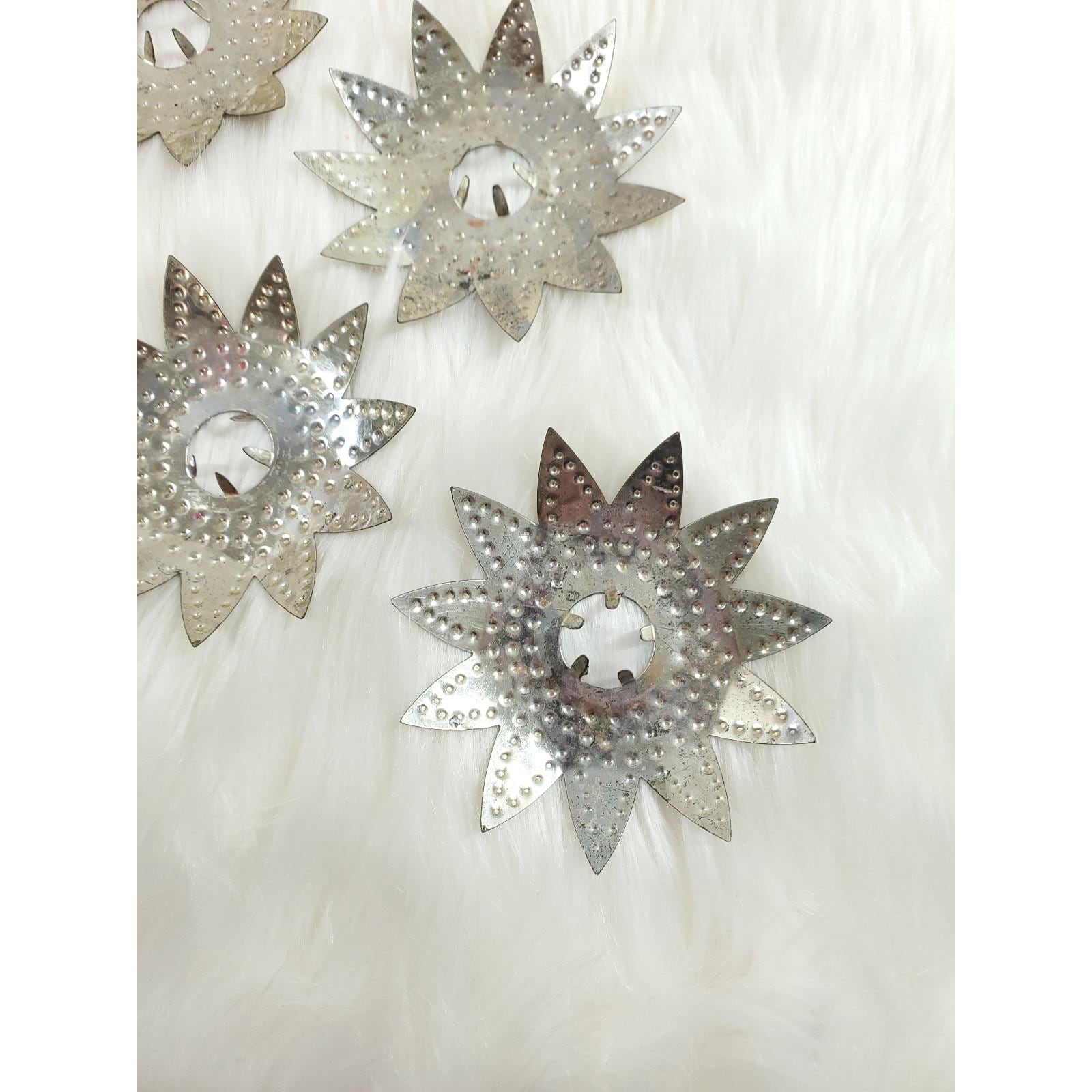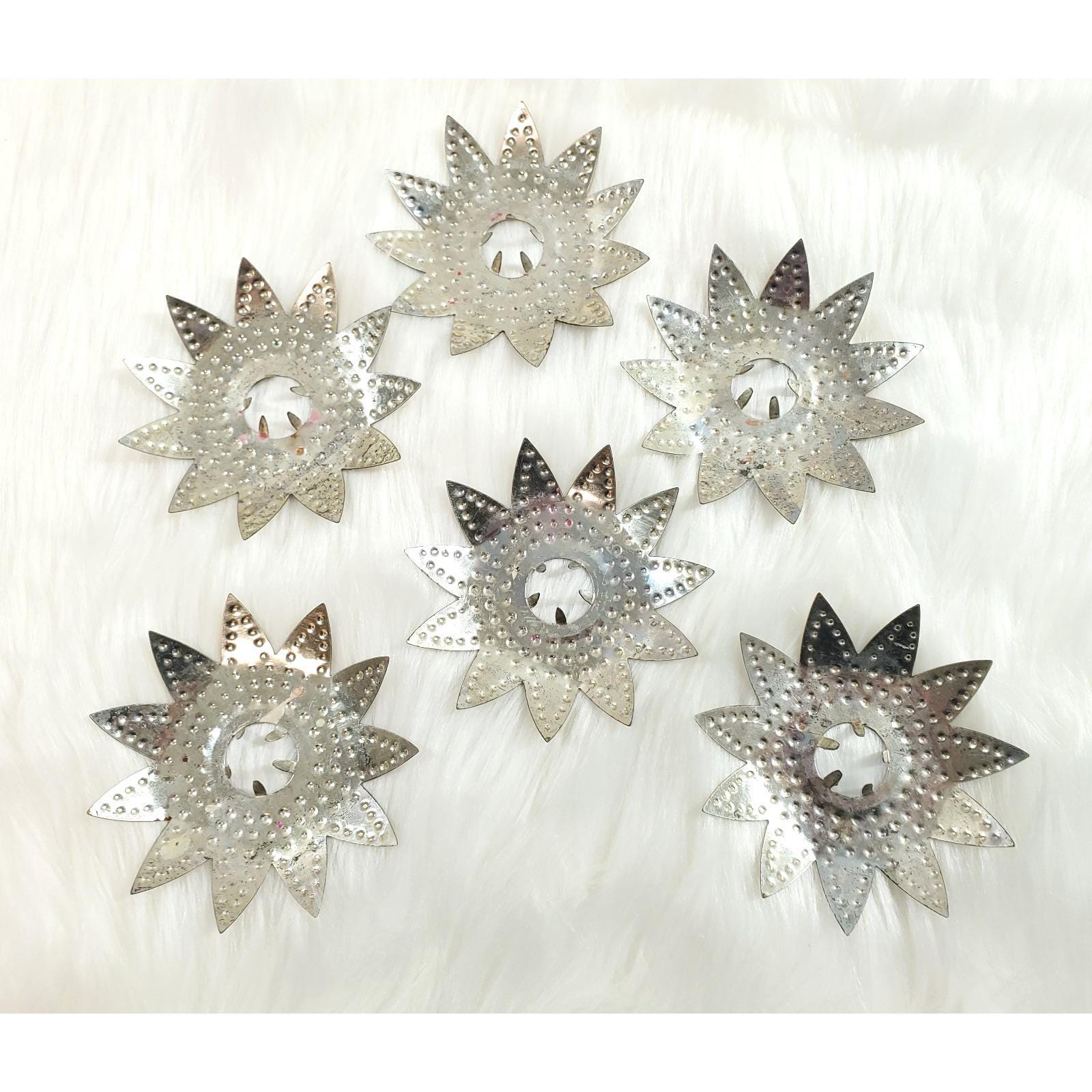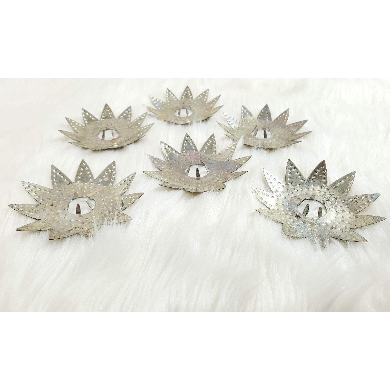 6 Vintage Diamond Ray Jeweled Heavy Punched Tin Christmas Tree Light Reflectors