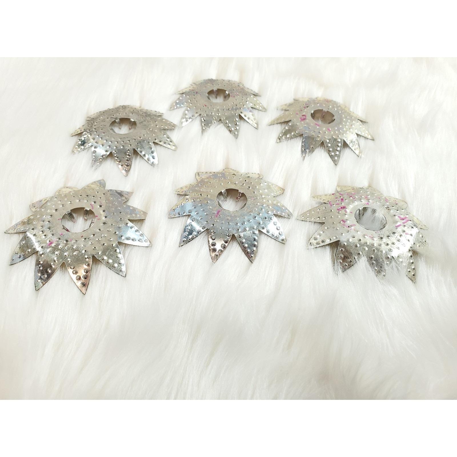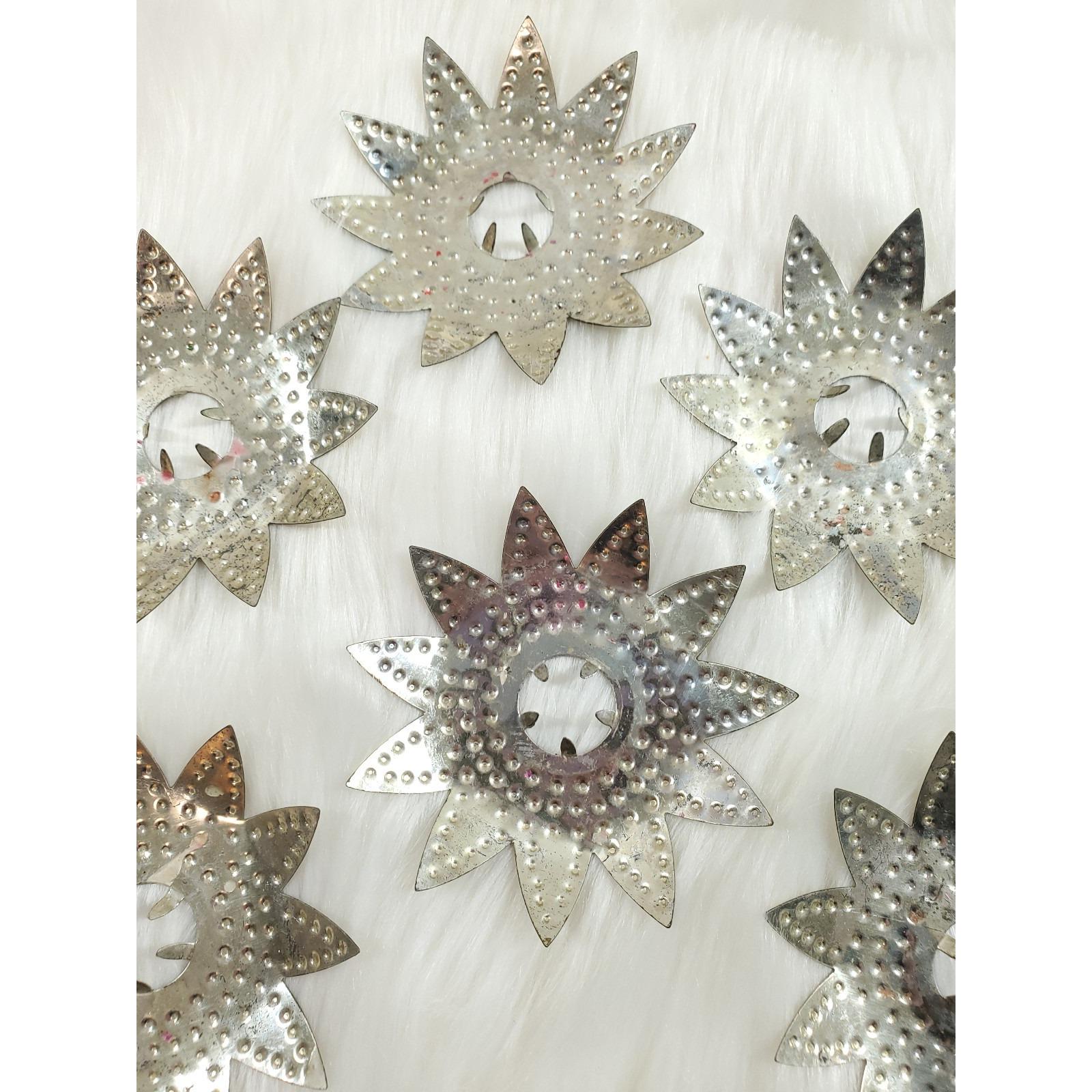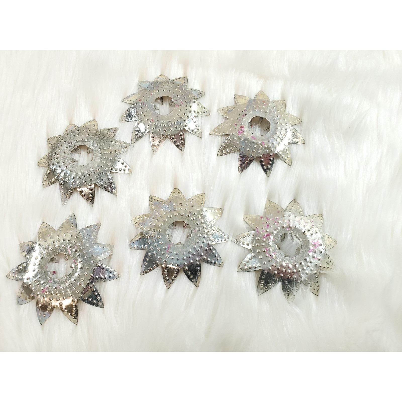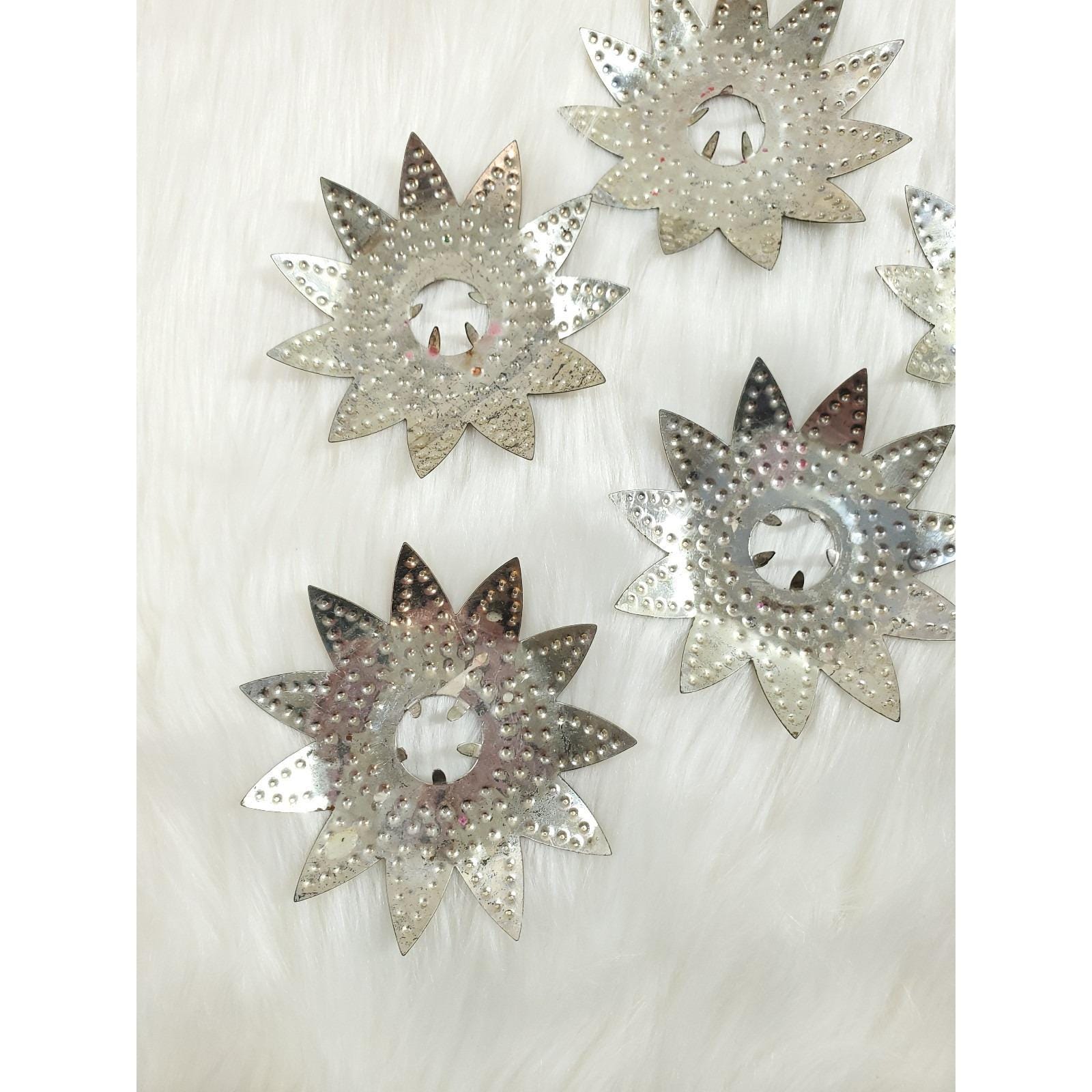 6 Vintage Diamond Ray Jeweled Heavy Punched Tin Christmas Tree Light Reflectors