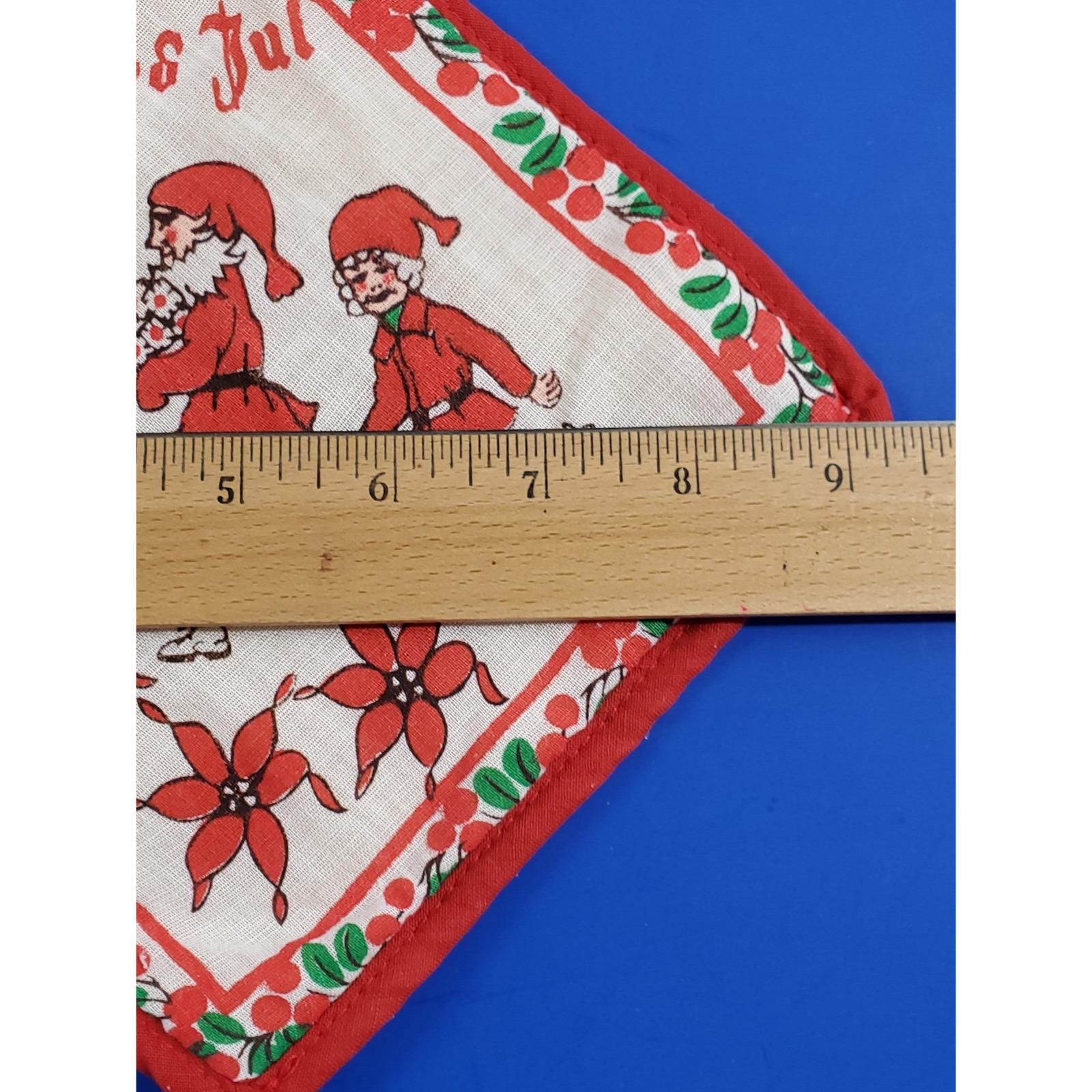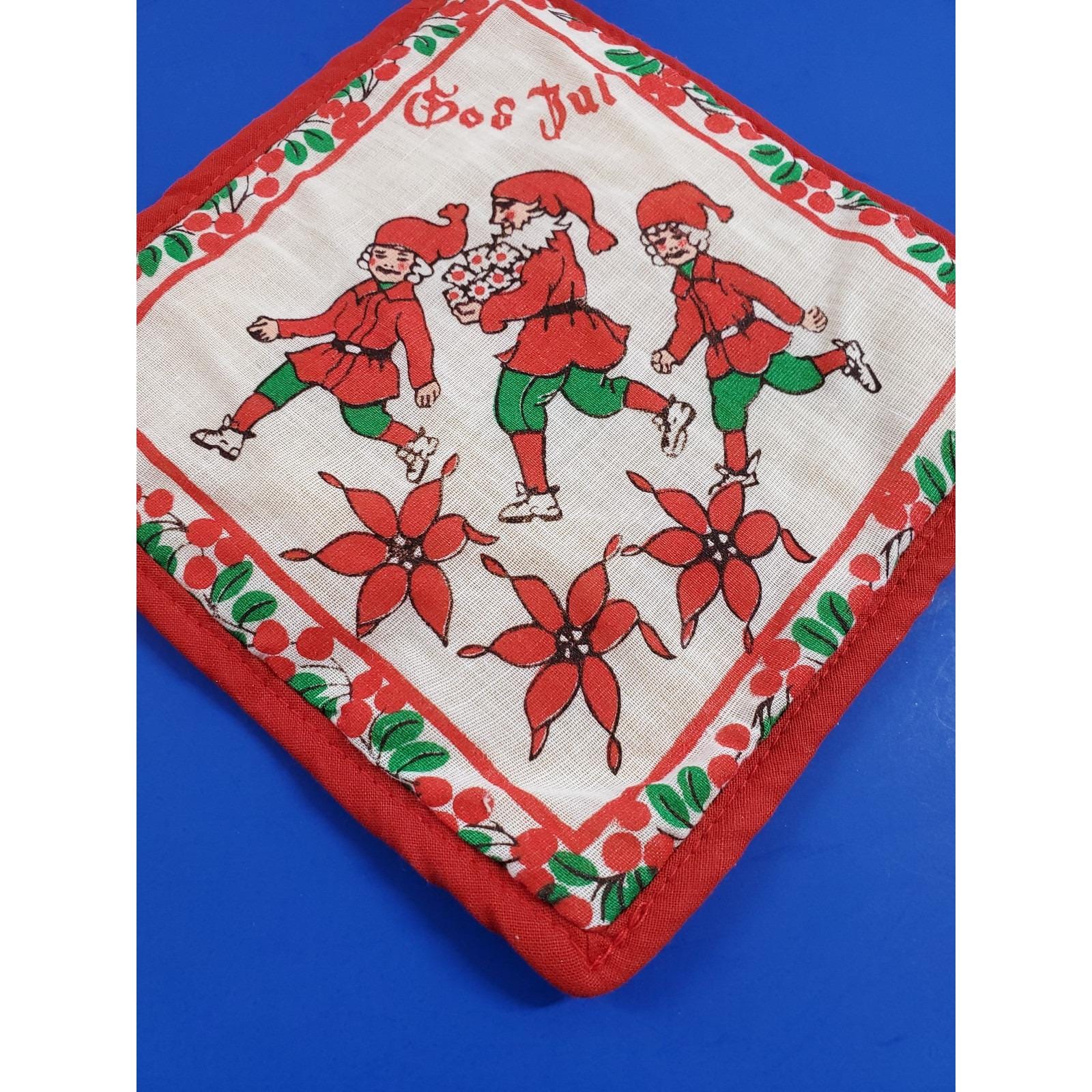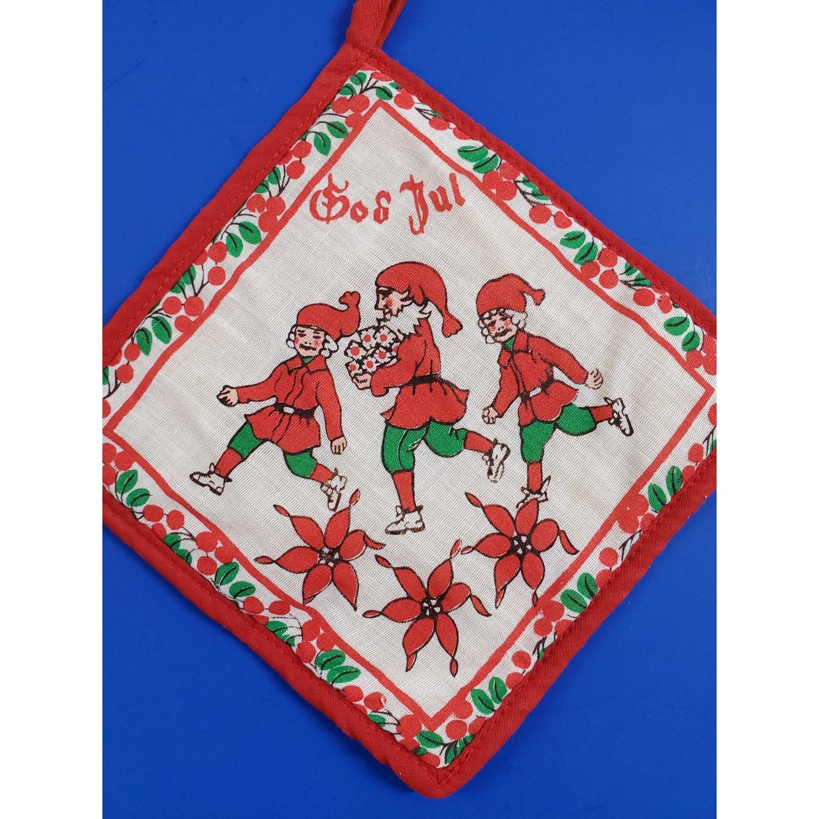 Vintage Swedish God Jul Santa Elves Christmas Kitchen Red Hot Plate Pot Holder