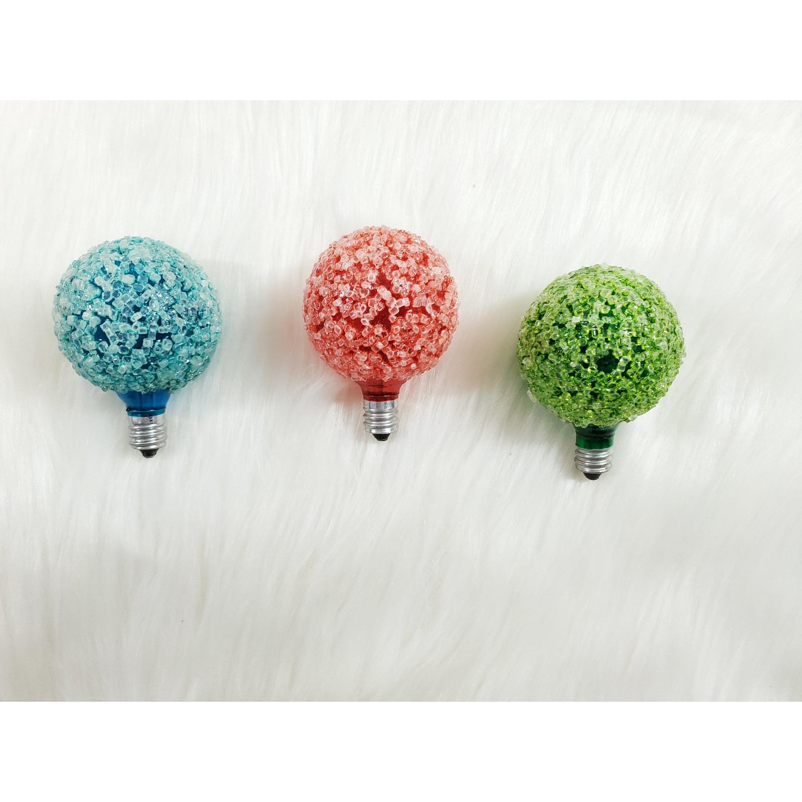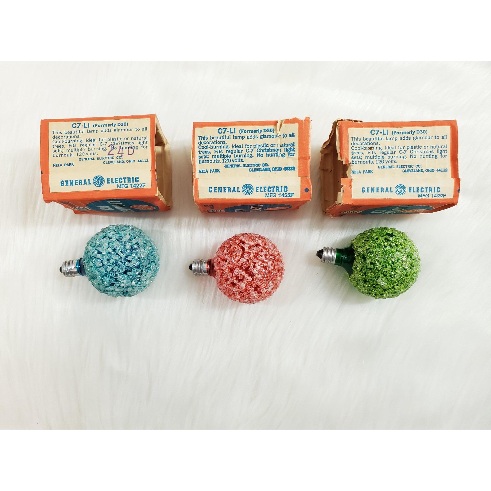 3 Vintage GE Lighted Ice Snowball Sugar Christmas D30 C7 Light Bulbs Tested w Box