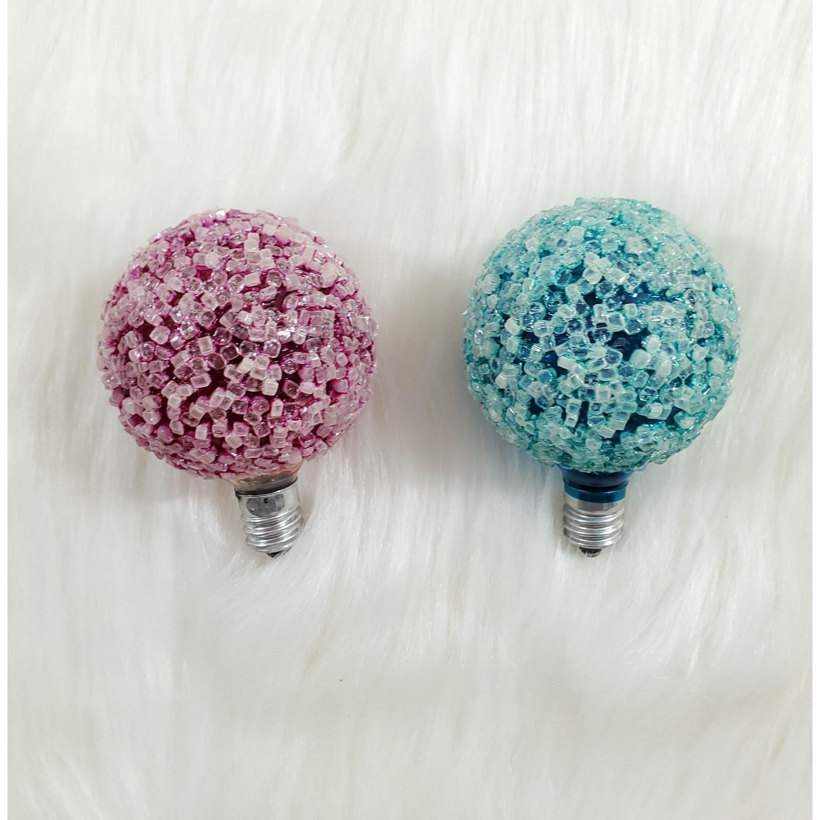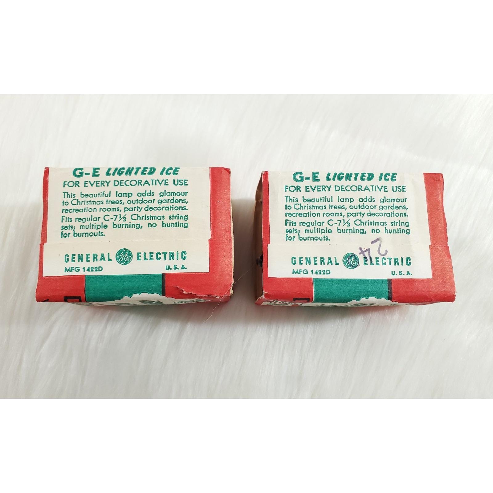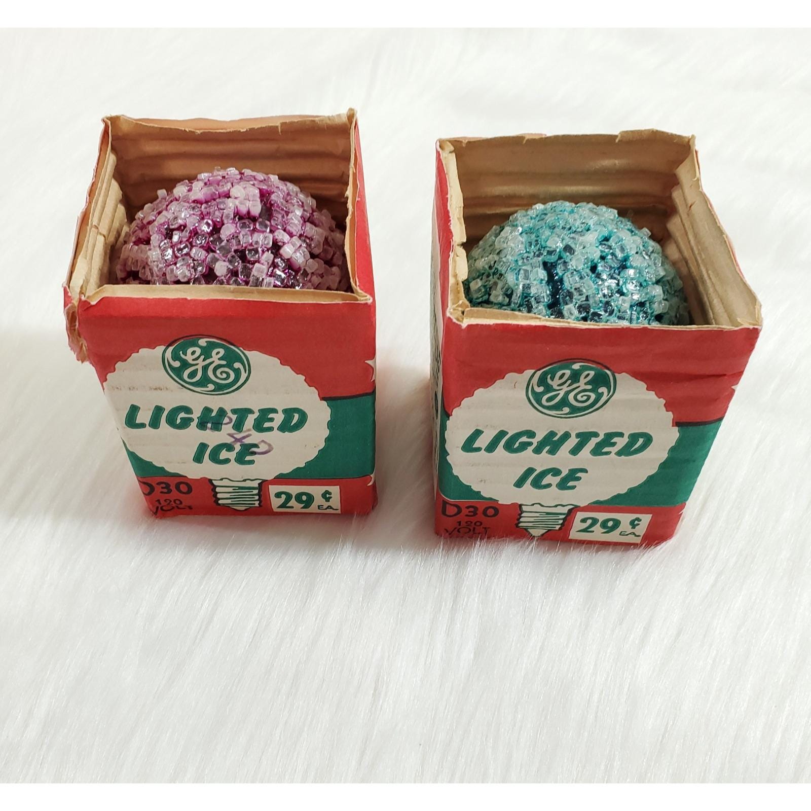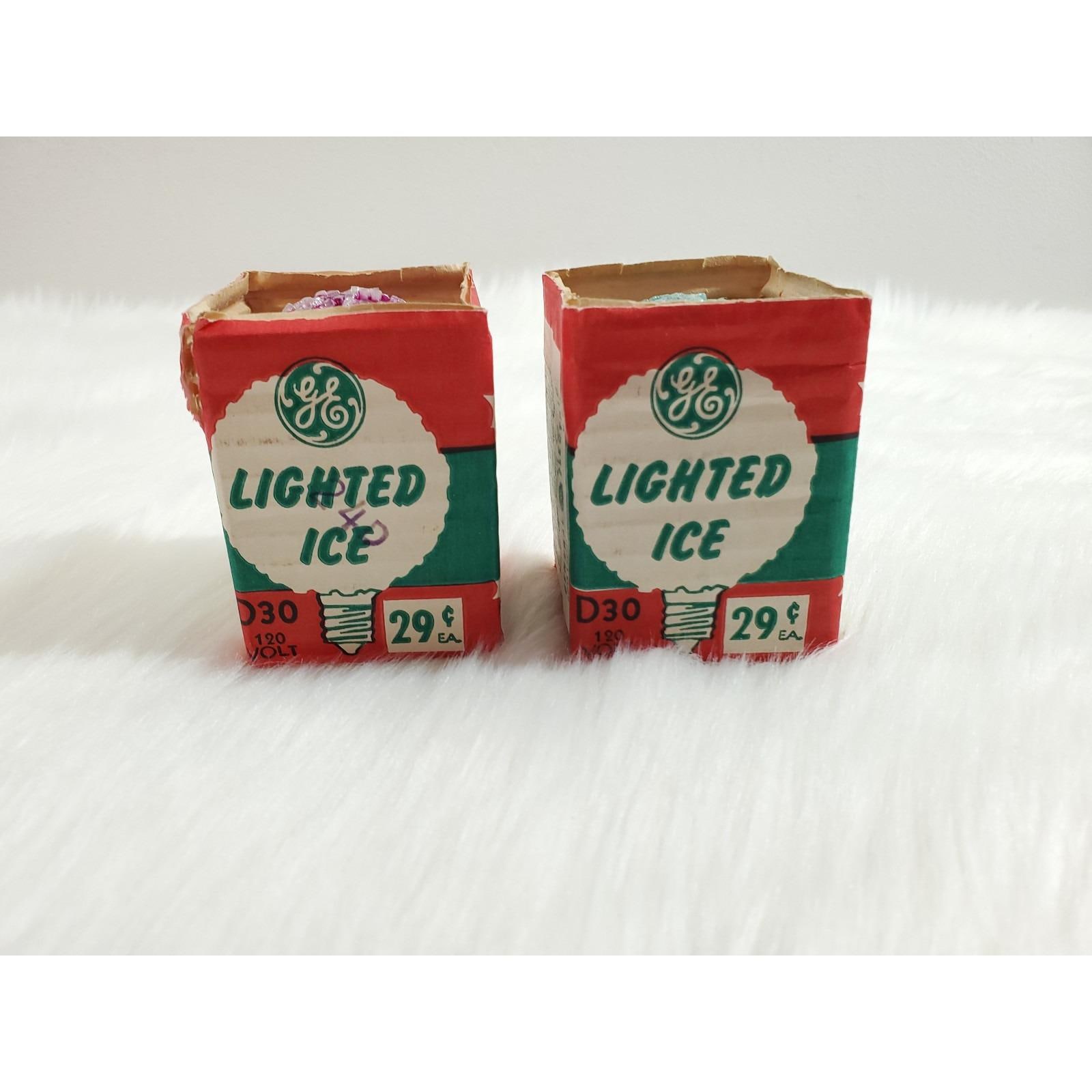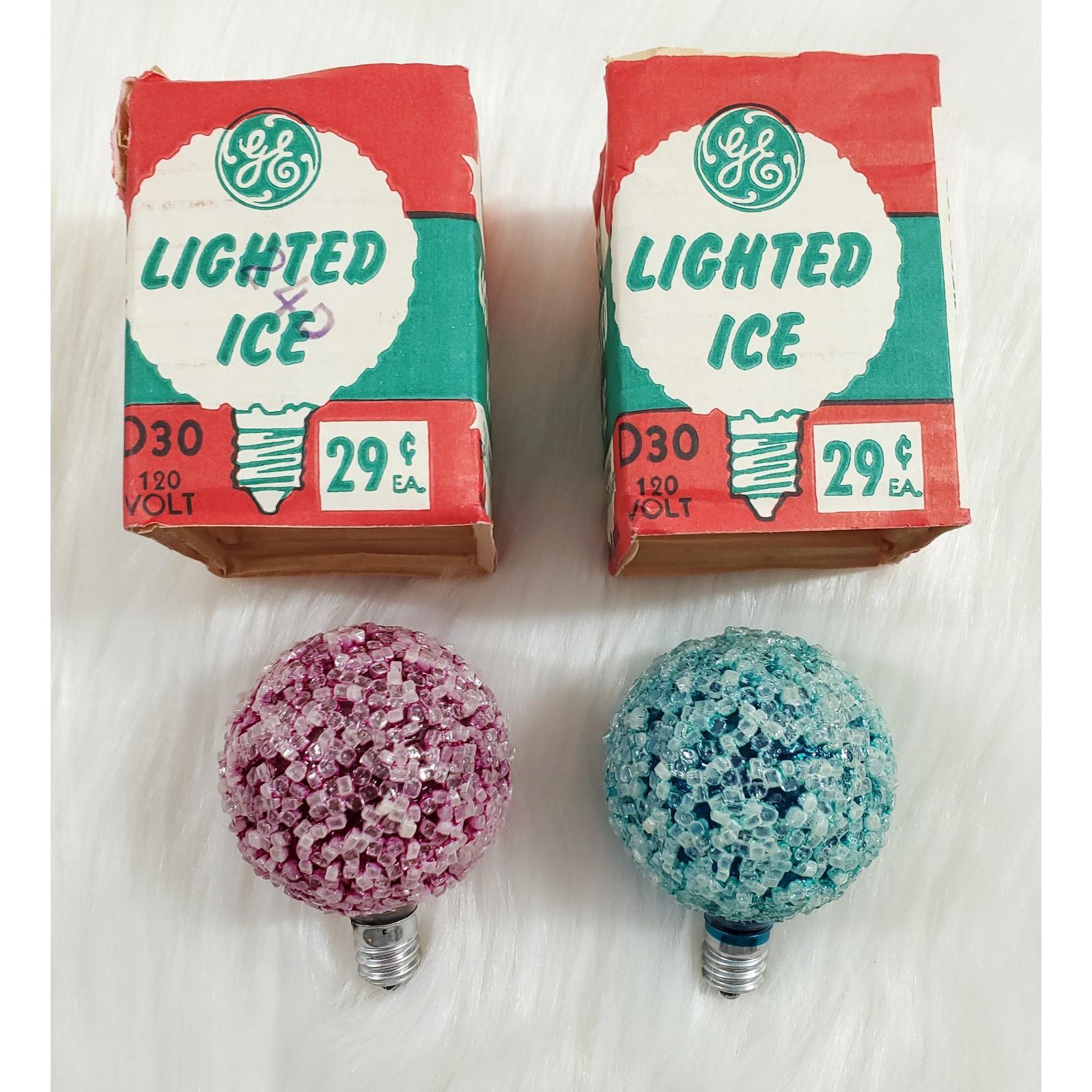 2 GE Lighted Ice Snowball Sugar Christmas D30 C7 Light Bulbs Tested Box Vintage