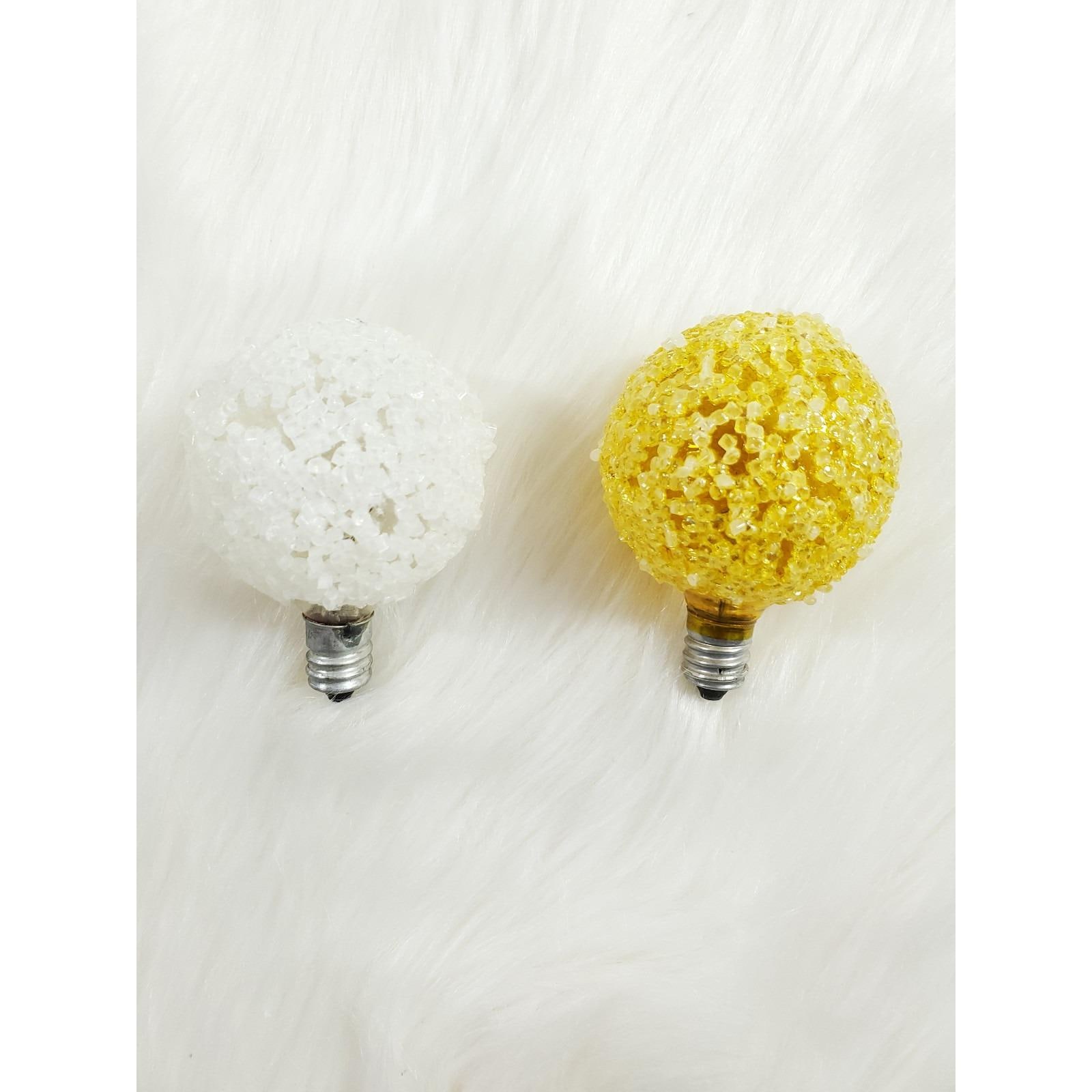 Includes yellow and white bulb in original cardboard board box sleeve packaging.