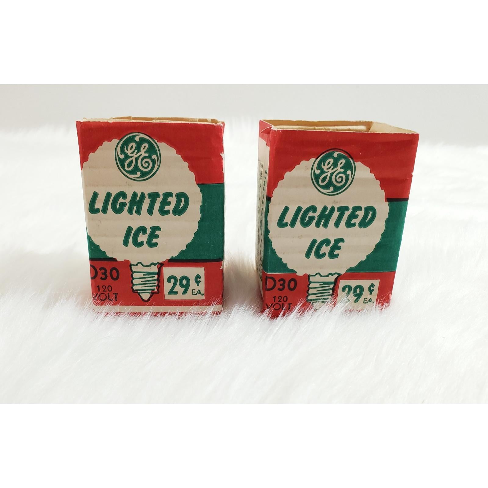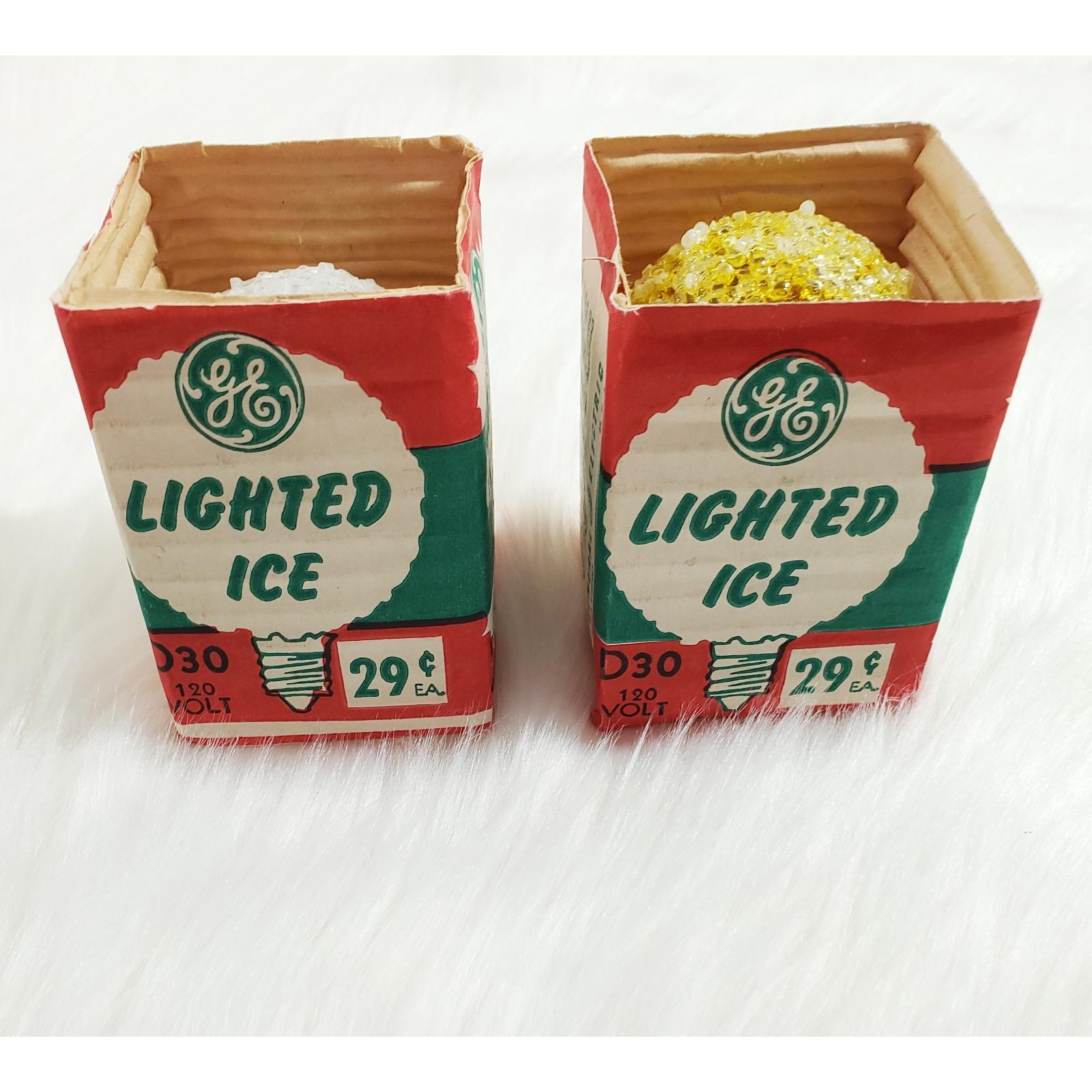 Vintage 2 GE Lighted Ice Snowball Sugar Christmas D30 C7 Light Bulbs Tested Box
